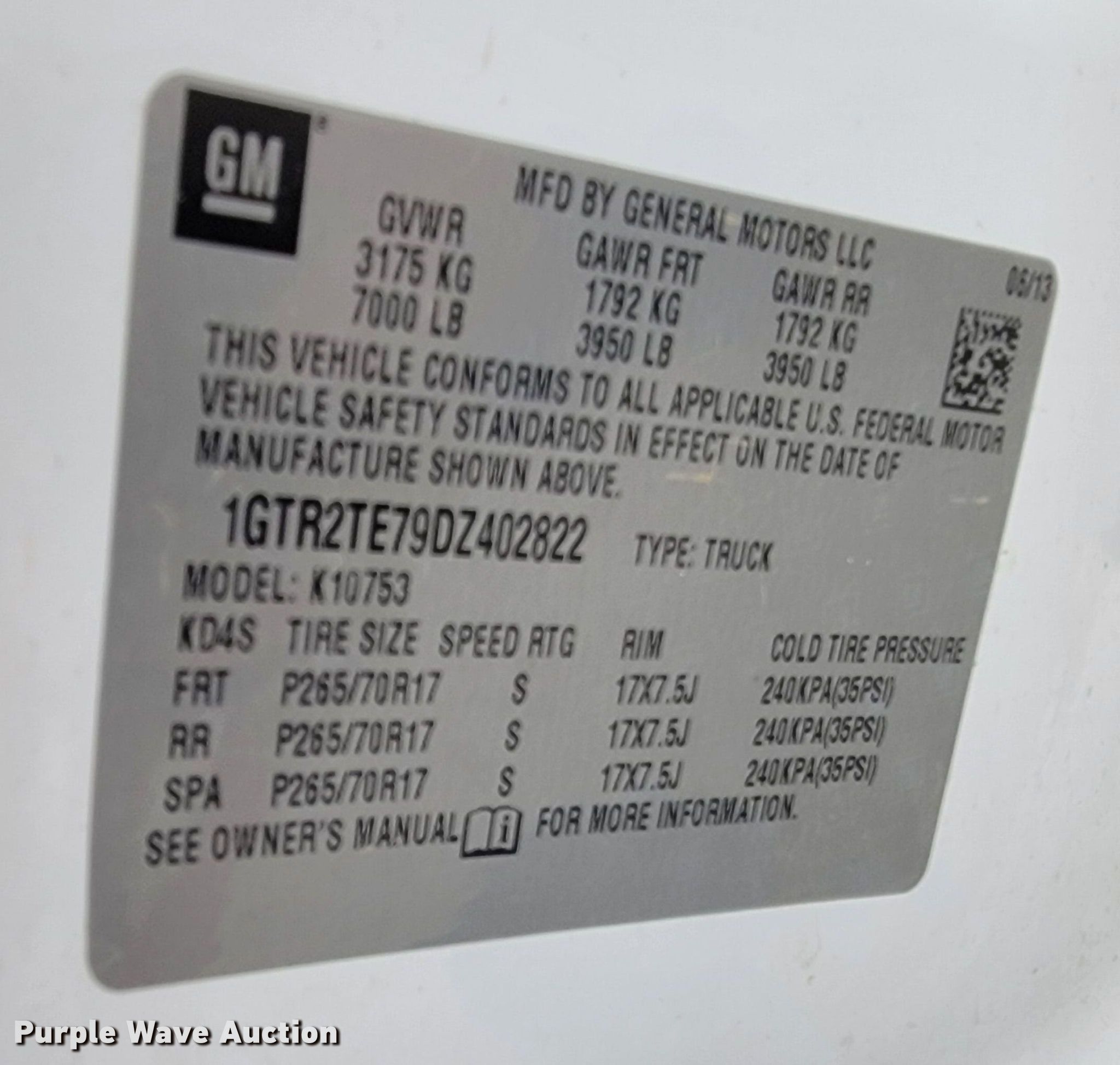 - VIN: 1GTR2TE79DZ402822