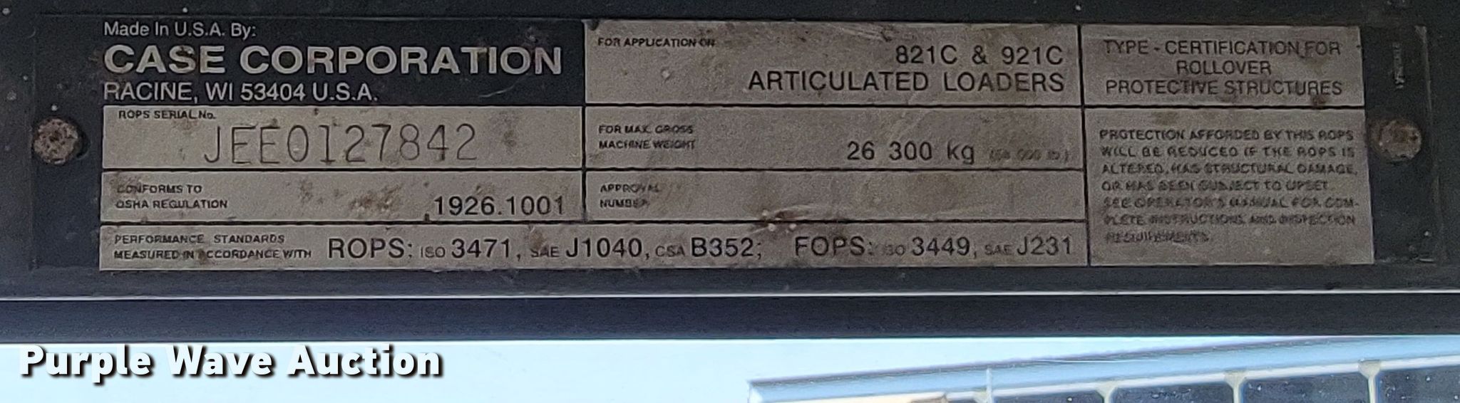 Purple Wave is selling a used Wheel Loader in Iowa. This item is a 2000 Case 821C wheel loader with the following: Hours: 9,489 on meter, Serial: JEE0122623