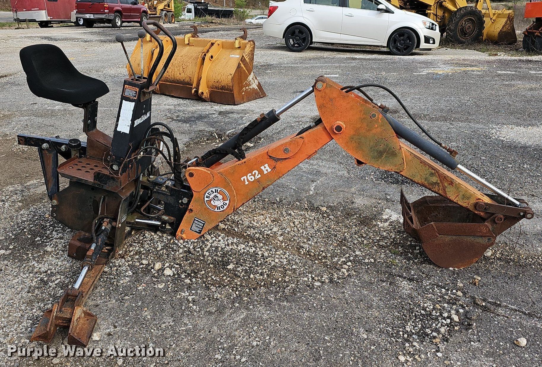 Purple Wave is selling a used Backhoe Attach. in Missouri. This item is a Bush Hog 762H backhoe bucket with the following: Serial: 12-00323