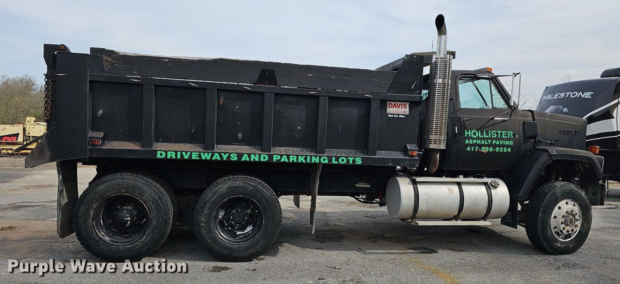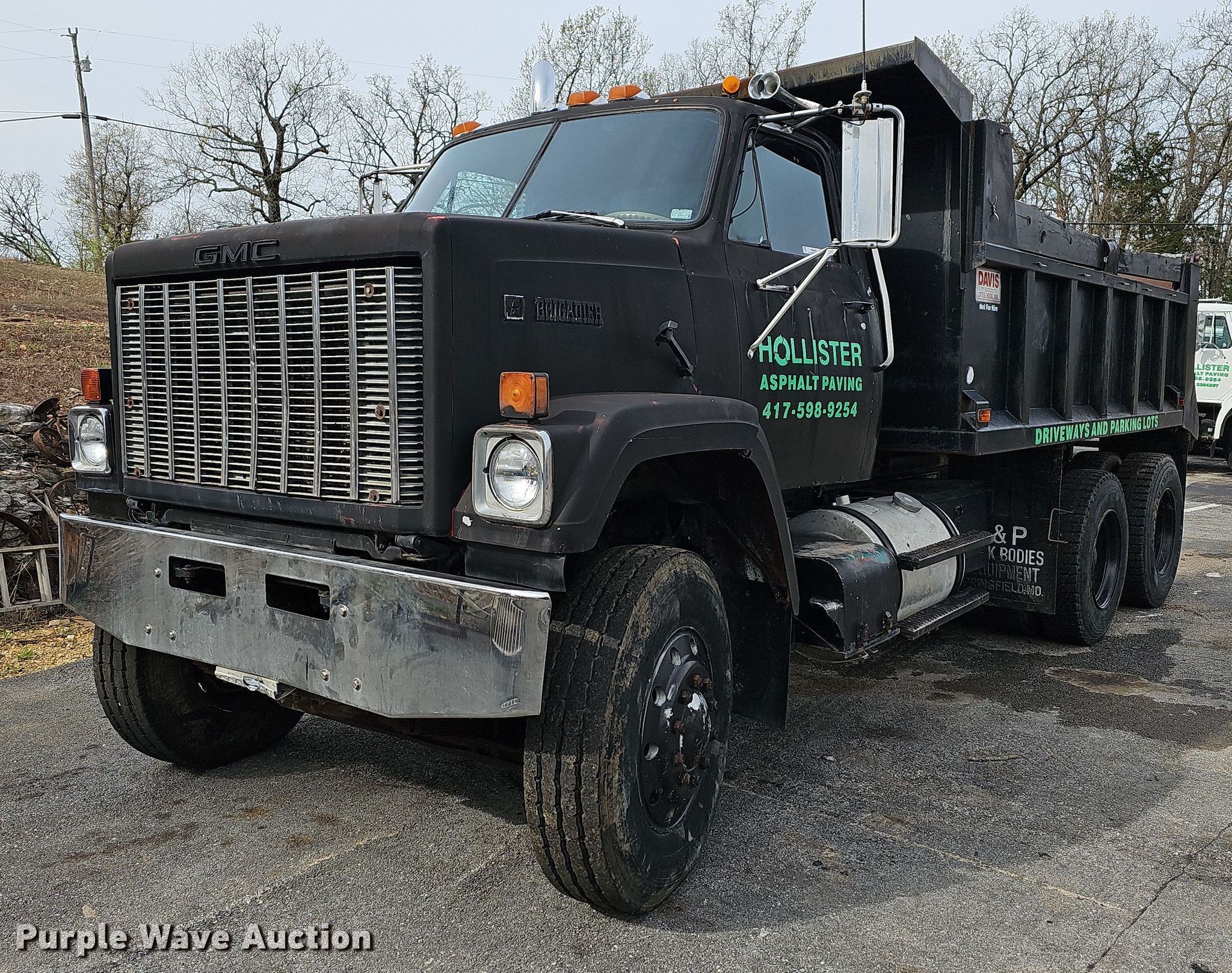 1981 GMC Brigadier dump truck. Miles: 858,281 on odometer, VIN: 1GDS9C4J1BV592335. Engine Detroit Diesel 6V-92, Displacement: 9.0L, Cylinders: 6, Fuel type: Diesel. Transmission Manual, Speed: 7. Chassis Axles: Tandem, Suspension: Spring over walking beam, Brakes: Air. Interior Heat. Features Dump bed Davis, 14' L x 96" W, Side height: 36", Side board height: 9", Bed type: Steel, Ram: Single , End gate: Air operated. Tires Size: 11R22.5. Missouri title. Title distribution may be delayed up to 30 days from verification of funds. Hollister Asphalt Paving. 165 Freeman Lane. Hollister, MO 65672