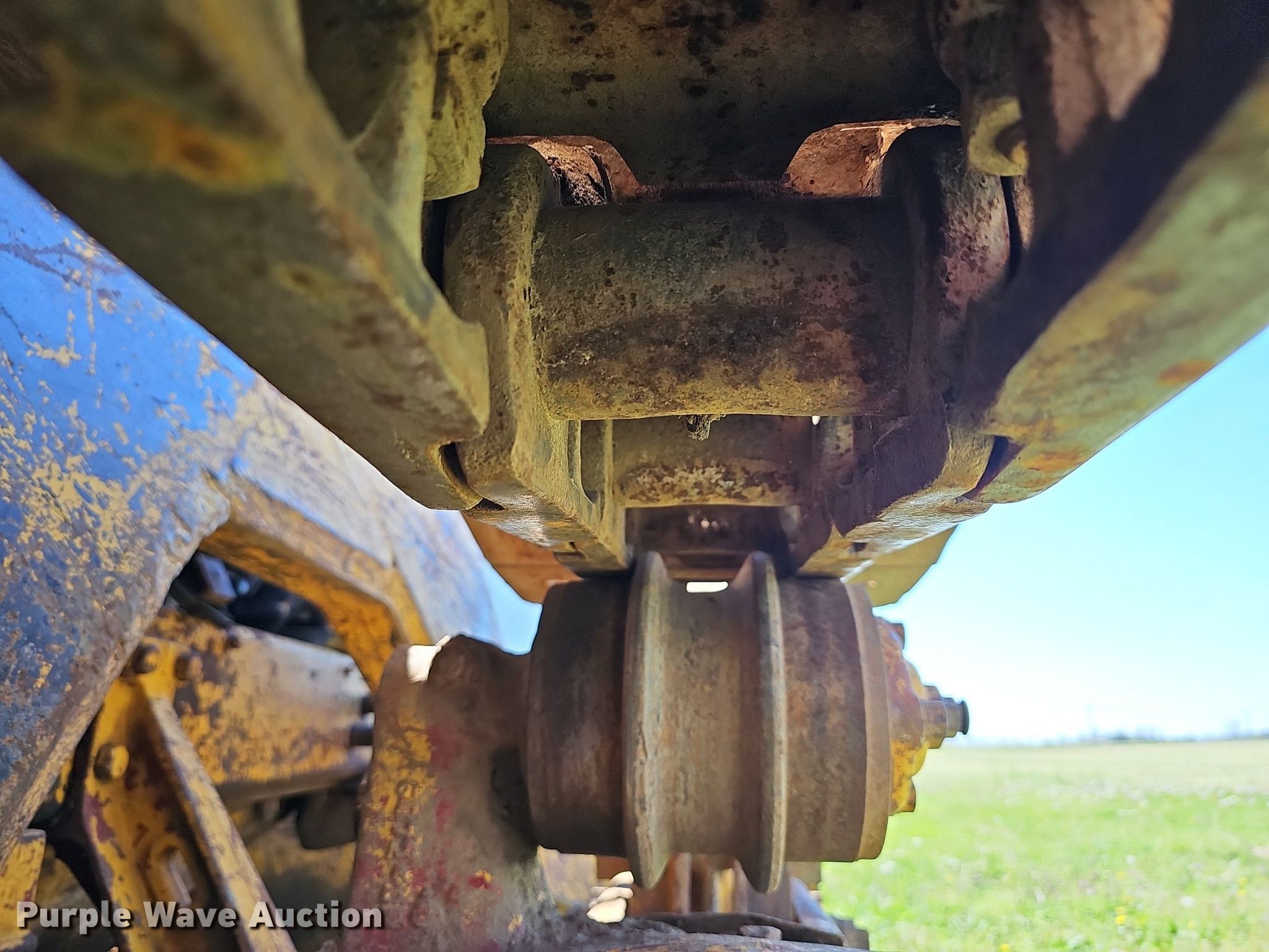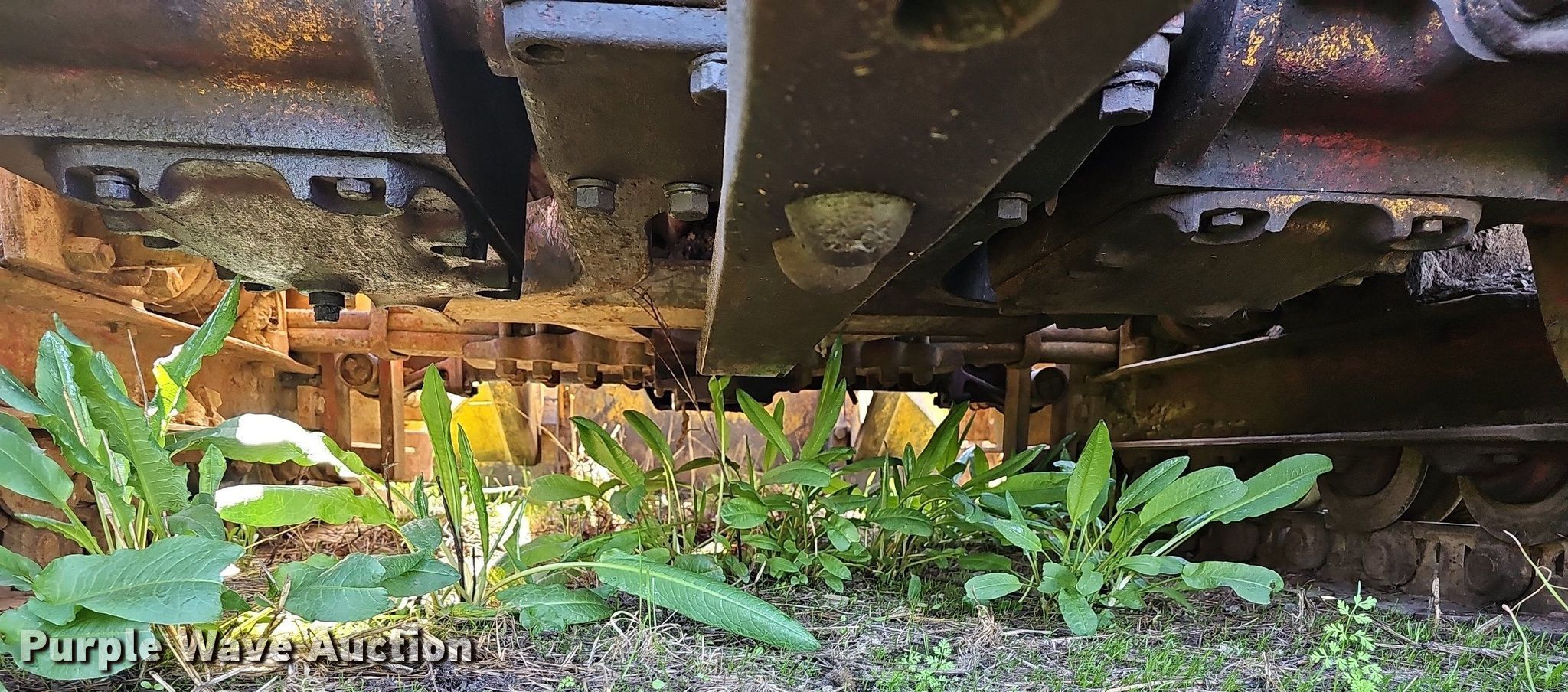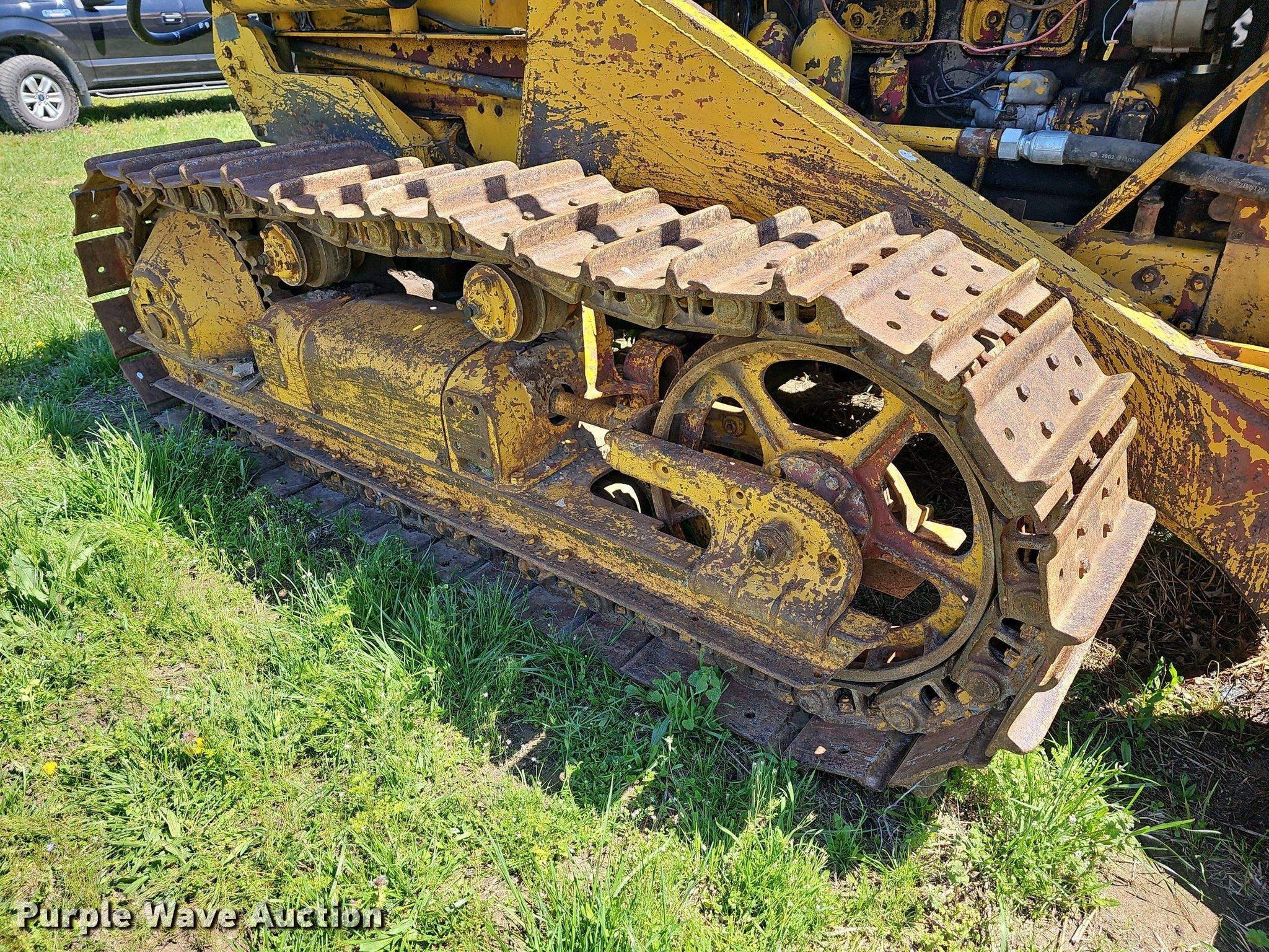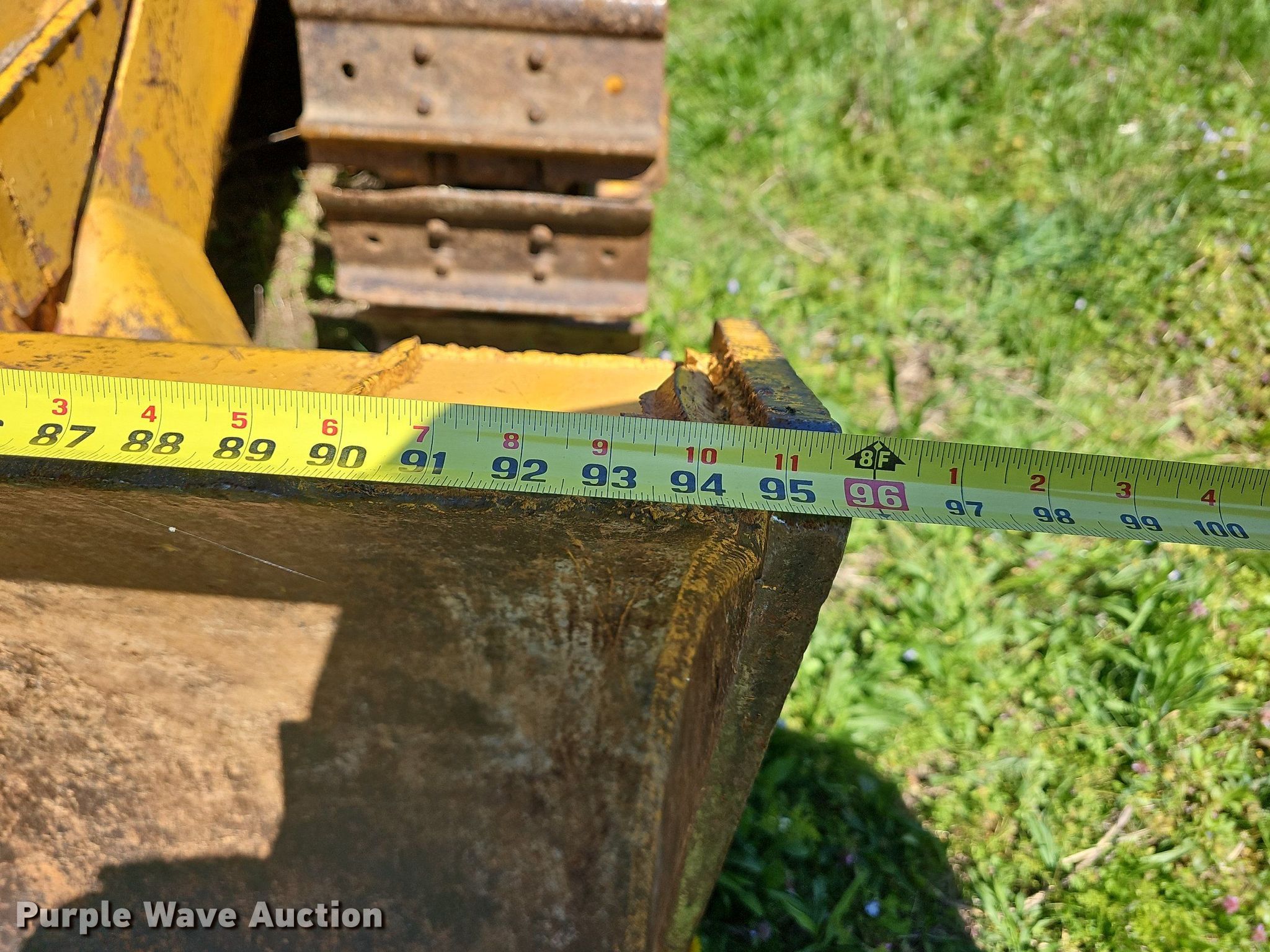 International Harvester TD14 dozer. Serial: TDF26032T7CM. Engine Cylinders: 4, Fuel type: Diesel. Transmission Direct-drive. Operators station Canopy. Features Dozer blade Type: Straight, Single-tilt, Width: 96" W. Tracks Width: 16", Bottom rollers: 4. Notes Unknown operating condition. Mareth Dairy. 7125 Farm Road 2057. Purdy, MO 65734
