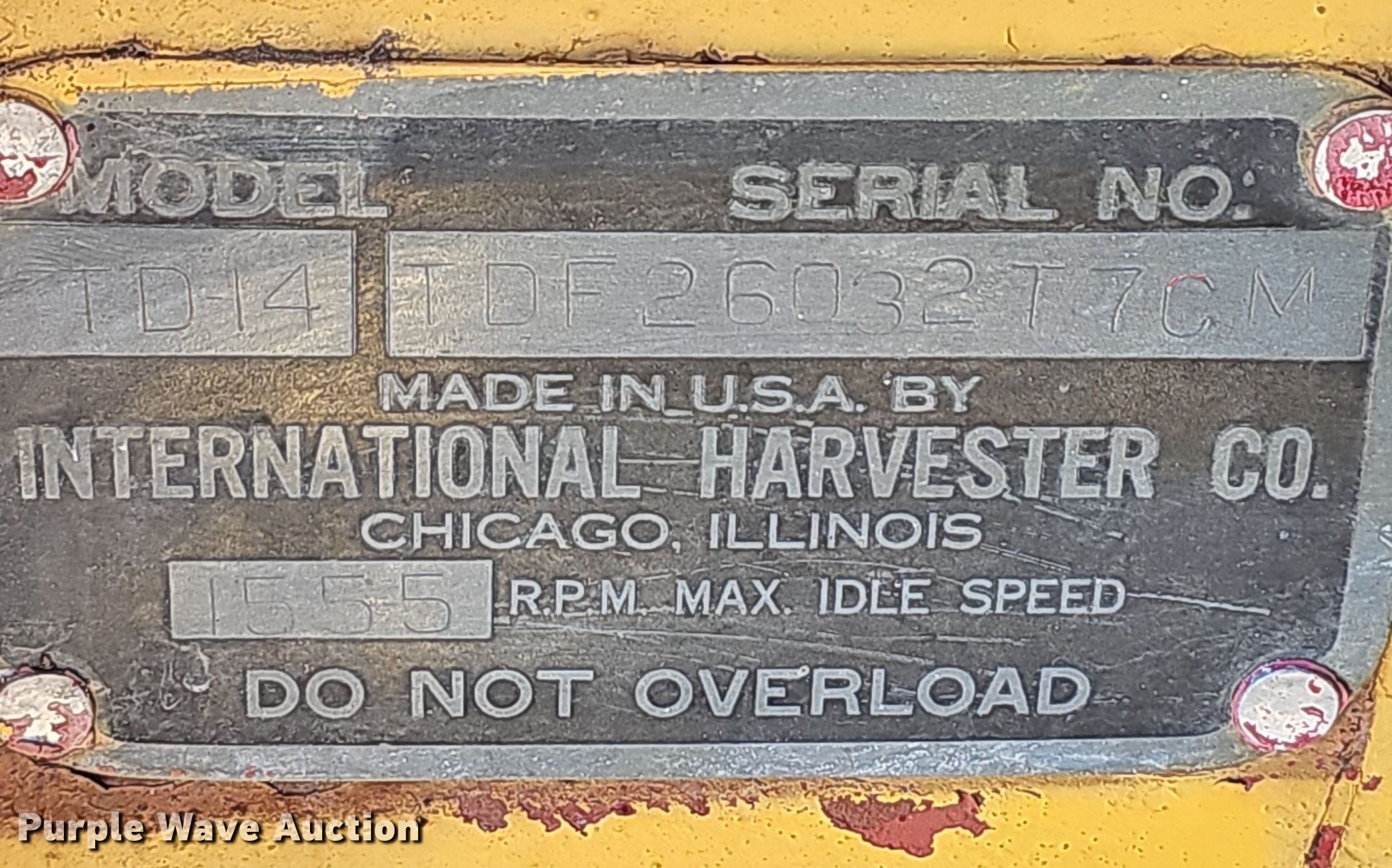 Purple Wave is selling a used Crawler Dozer in Missouri. This item is a International Harvester TD14 dozer with the following: Serial: TDF26032T7CM