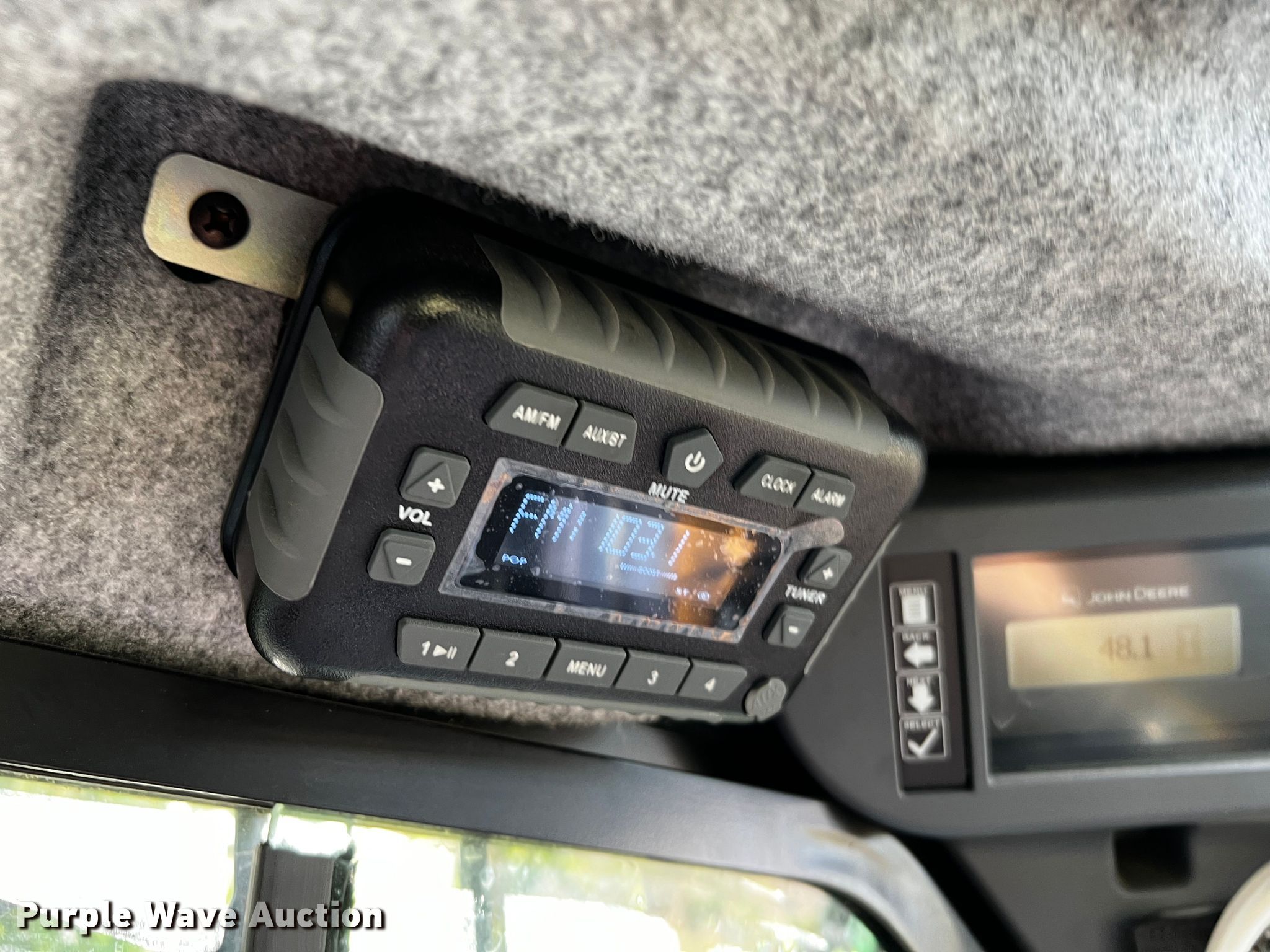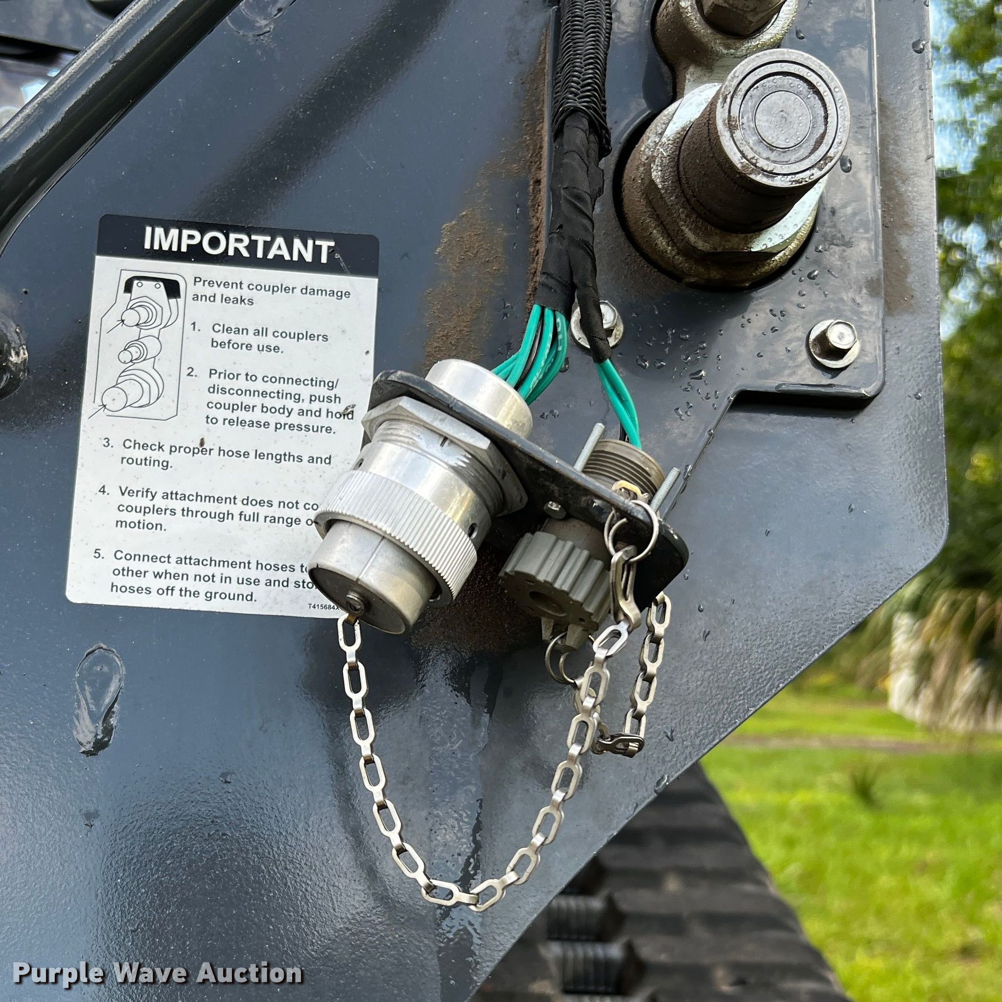 2022 John Deere 325G tracked skid steer loader. Hours: 48 on meter, Serial: 1T0325GMCNJ418610. Engine Cylinders: 4, Fuel type: Diesel. Transmission Hydrostatic, Two speed travel. Operators station Enclosed cab, AC, Heat, Bucket control: Hand, Pattern changer. Features Auxiliary hydraulics, Auxiliary electrical outlet, Quick coupler: Hydraulic, Counter weights, Bucket John Deere C78, Capacity: 0.71 cu.yd., Width: 78", Low profile, Cutting edge: Bolt-on. Tracks Width: 16". Kubota Tractor Corp. 25974 Okeechobee Road. Fort Pierce, FL 34945