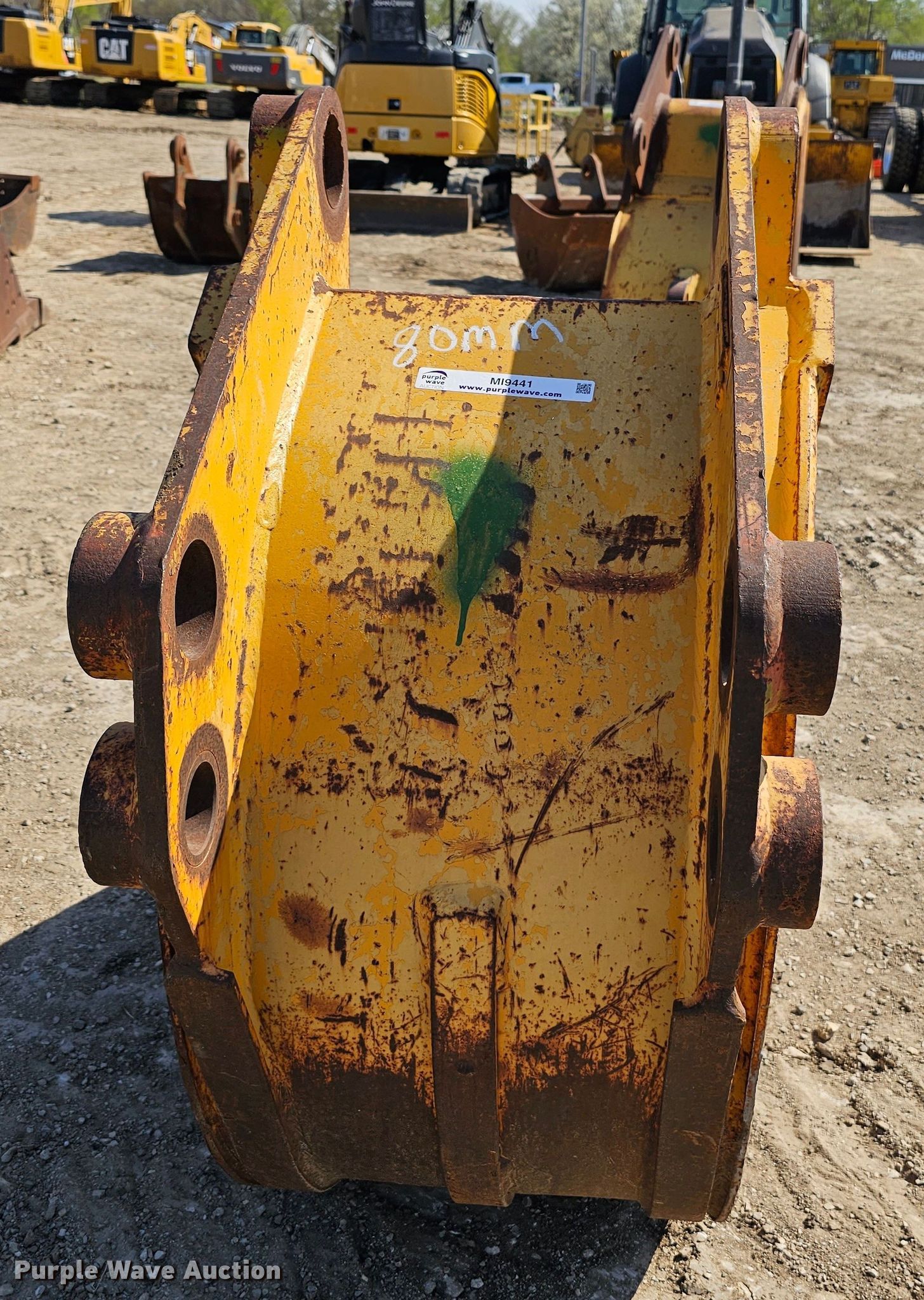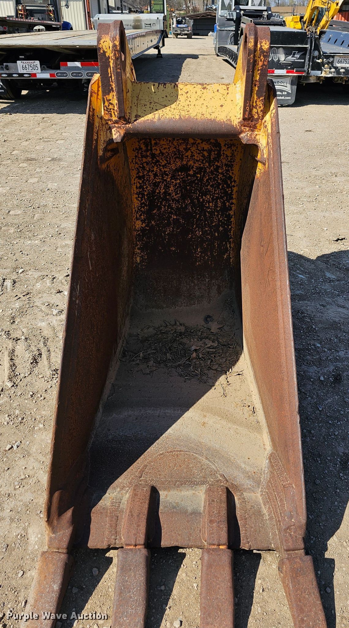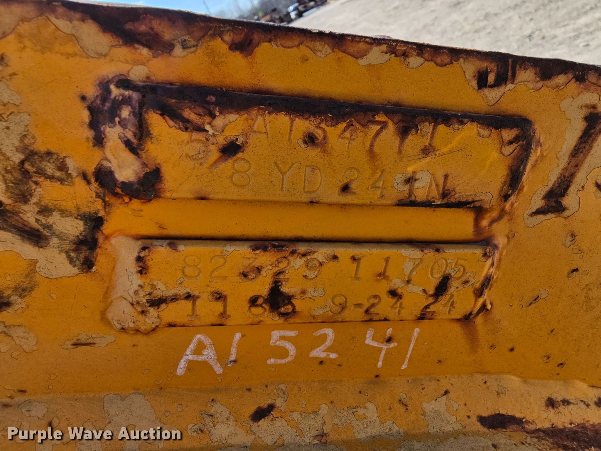 Purple Wave is selling a used Excavator Attach. in Kansas. This item is a 24" W excavator bucket with the following: Serial: AT54771, Capacity: 8 cu.yd., Teeth: 4, Pin spacing: 14 1/4", Pin diameter: 80mm, Center spacing: 21"