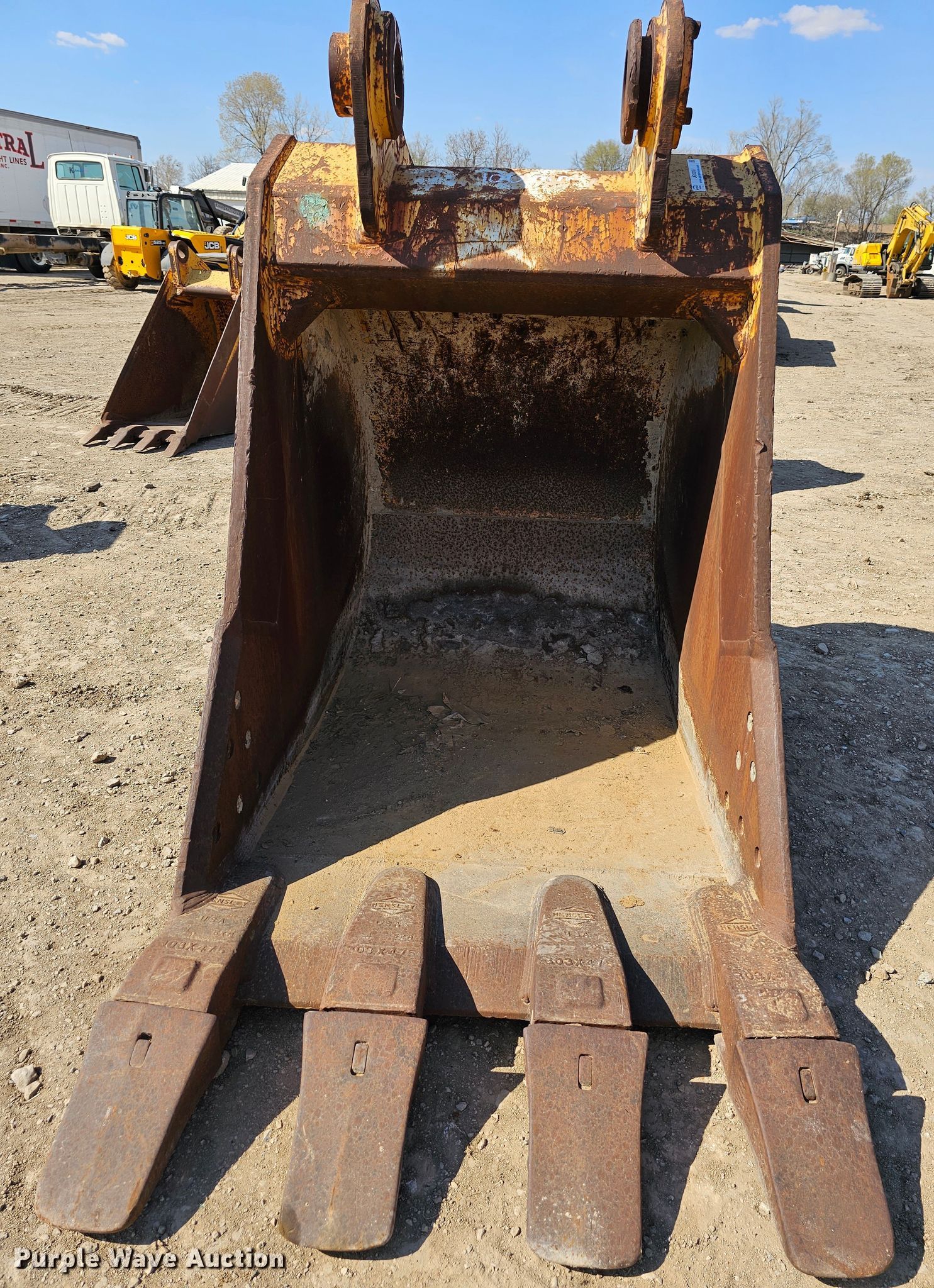 Purple Wave is selling a used Excavator Attach. in Kansas. This item is a John Deere 44" W excavator bucket with the following: Teeth: 4, Capacity: 1.85 cu.yd., Pin spacing: 16 3/4", Center spacing: 23", Pin diameter: 100mm