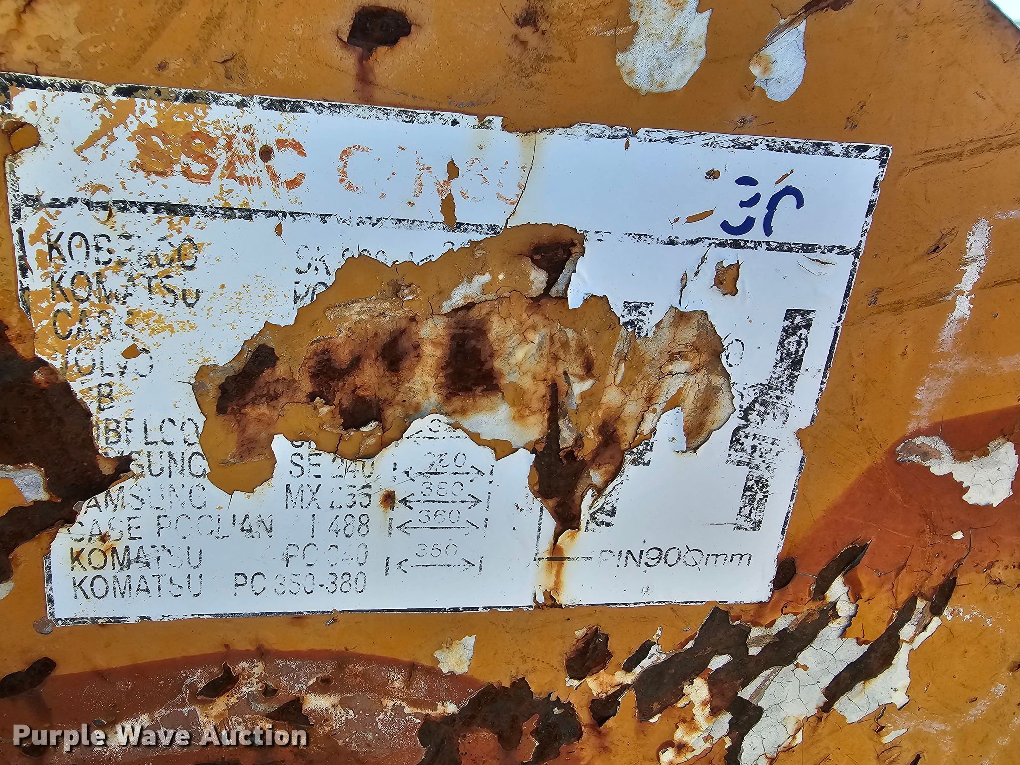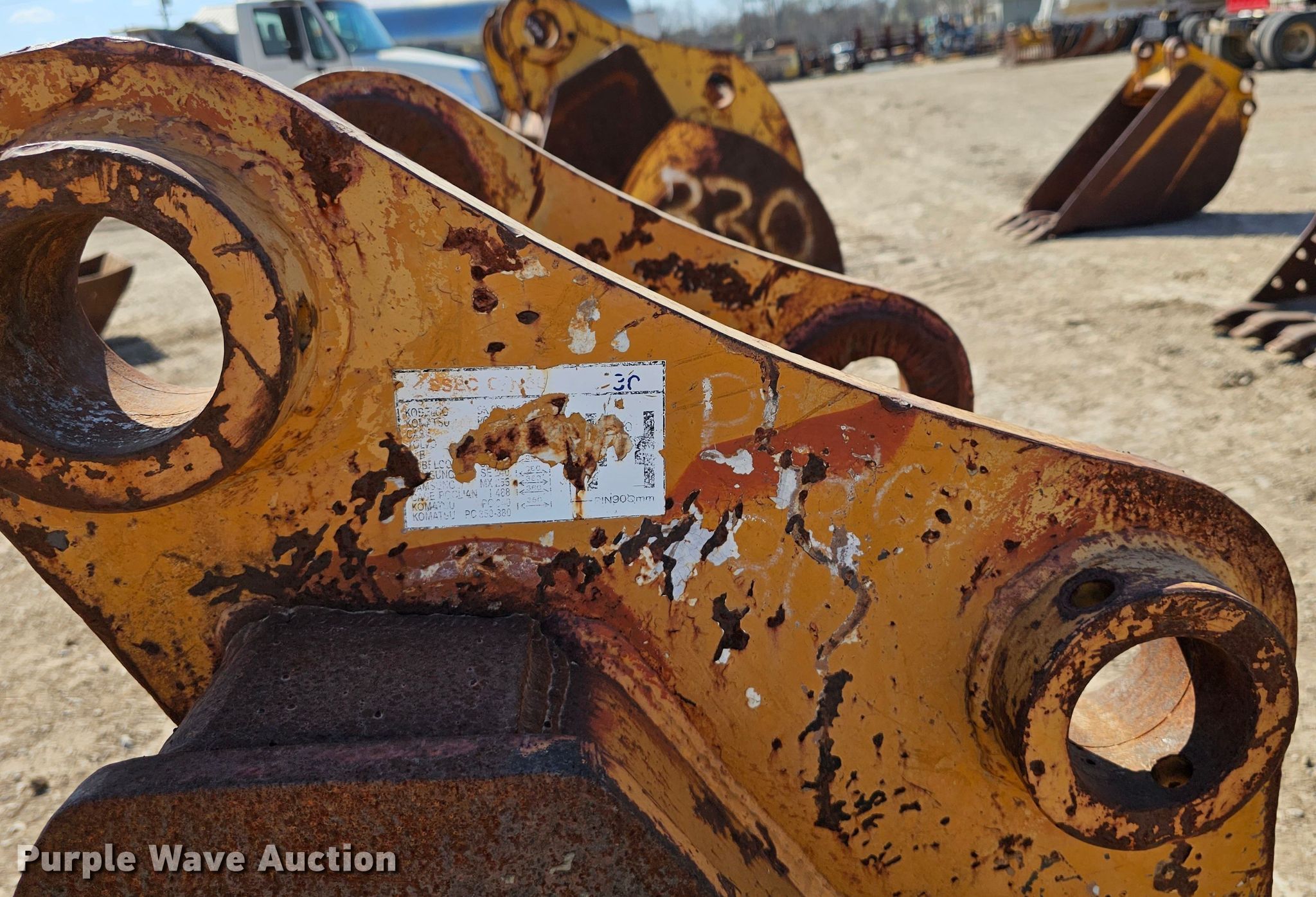 Purple Wave is selling a used Excavator Attach. in Kansas. This item is a 32" W excavator bucket with the following: Teeth: 4, Pin spacing: 16 1/8", Pin diameter: 90mm, Center spacing: 19 1/8"
