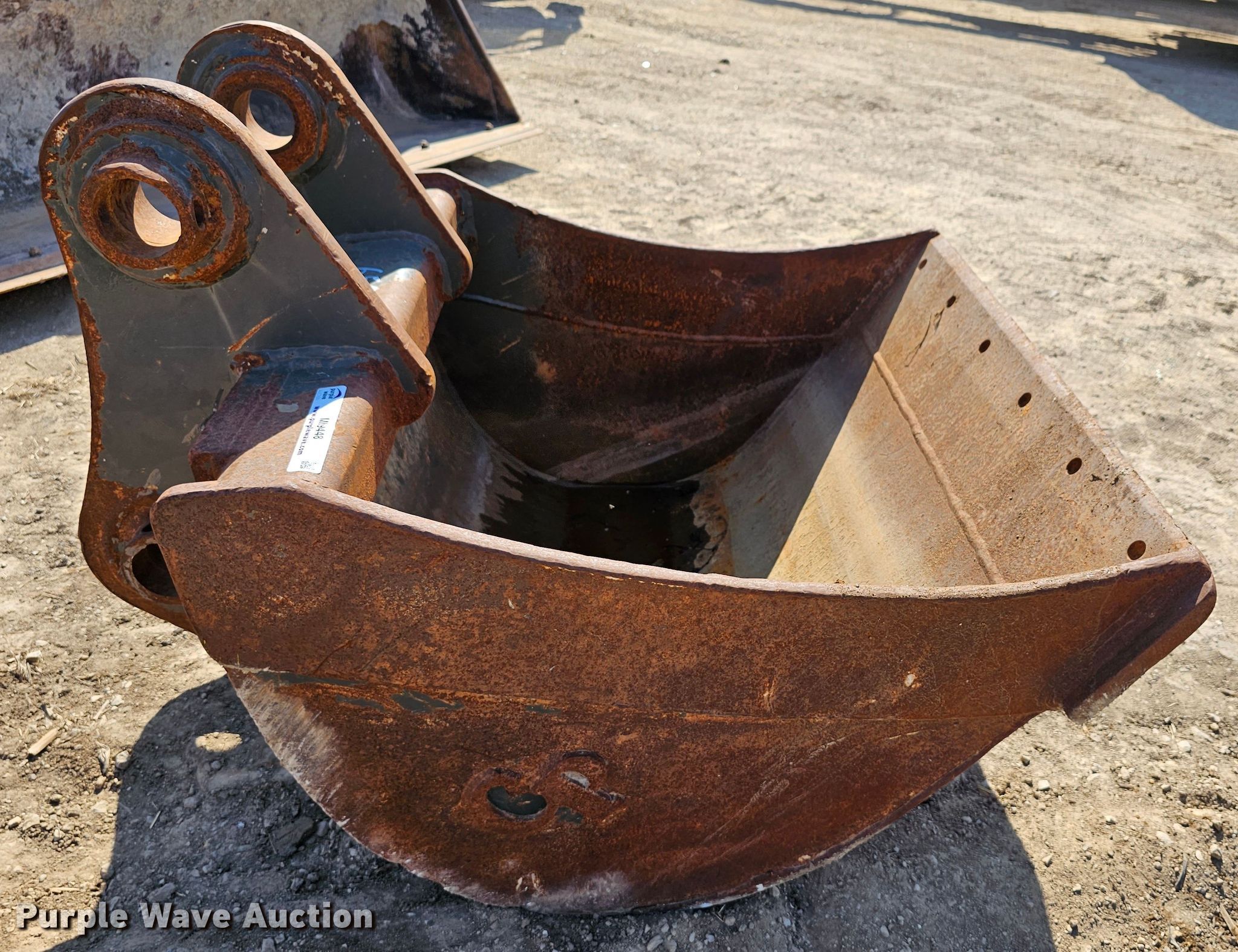Purple Wave is selling a used Excavator Attach. in Kansas. This item is a 38" W excavator bucket with the following: Cutting edge: Weld-on, Pin spacing: 10 7/8", Pin diameter: 65mm, Center spacing: 15"
