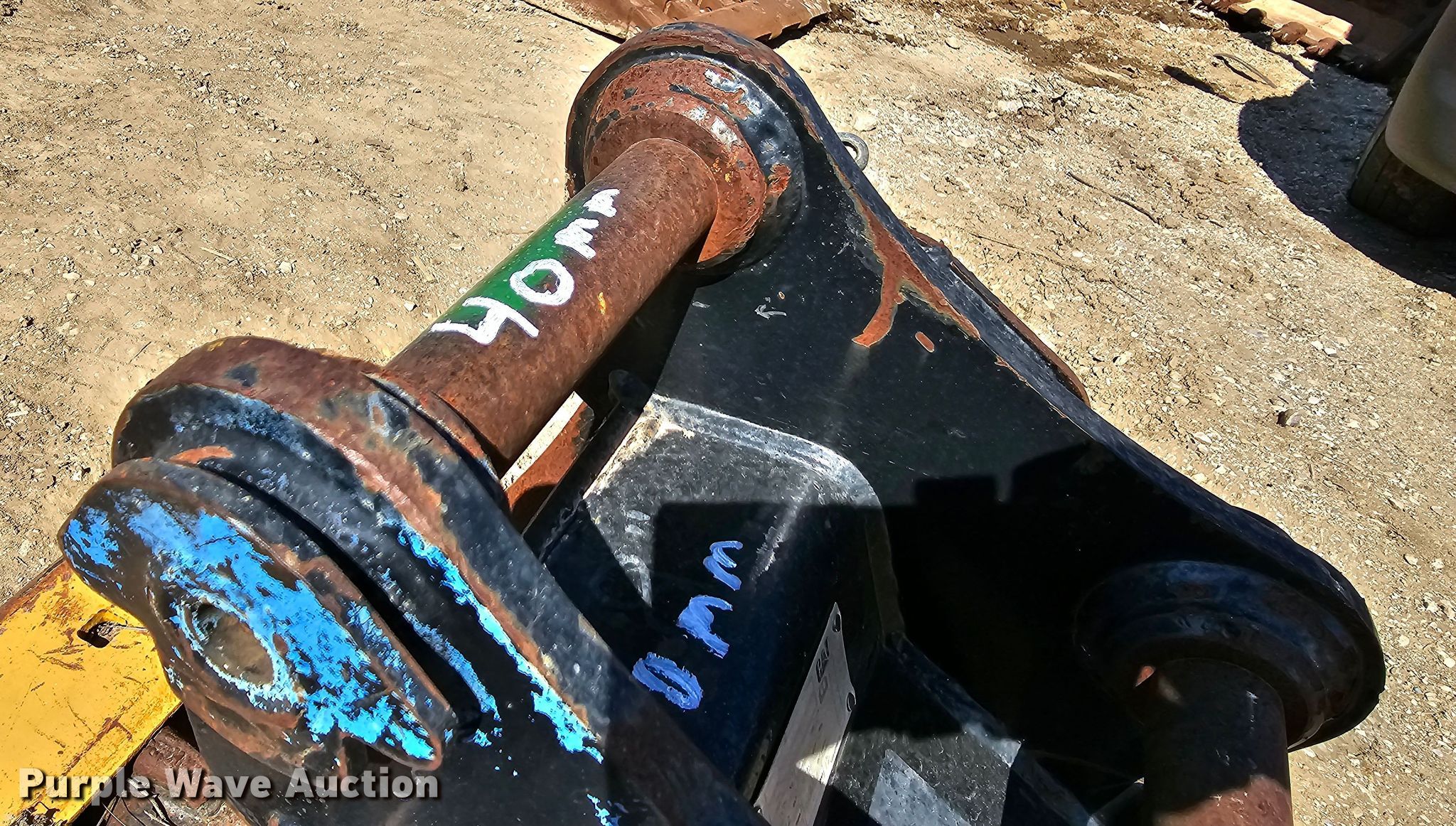 Purple Wave is selling a used Backhoe Attach. in Kansas. This item is a 18" W backhoe bucket with the following: Capacity: 0.18 cu.yd., Cutting Edge: Weld-on, Pin spacing: 6 3/16", Pin diameter: 40mm, Center spacing: 10 1/4"