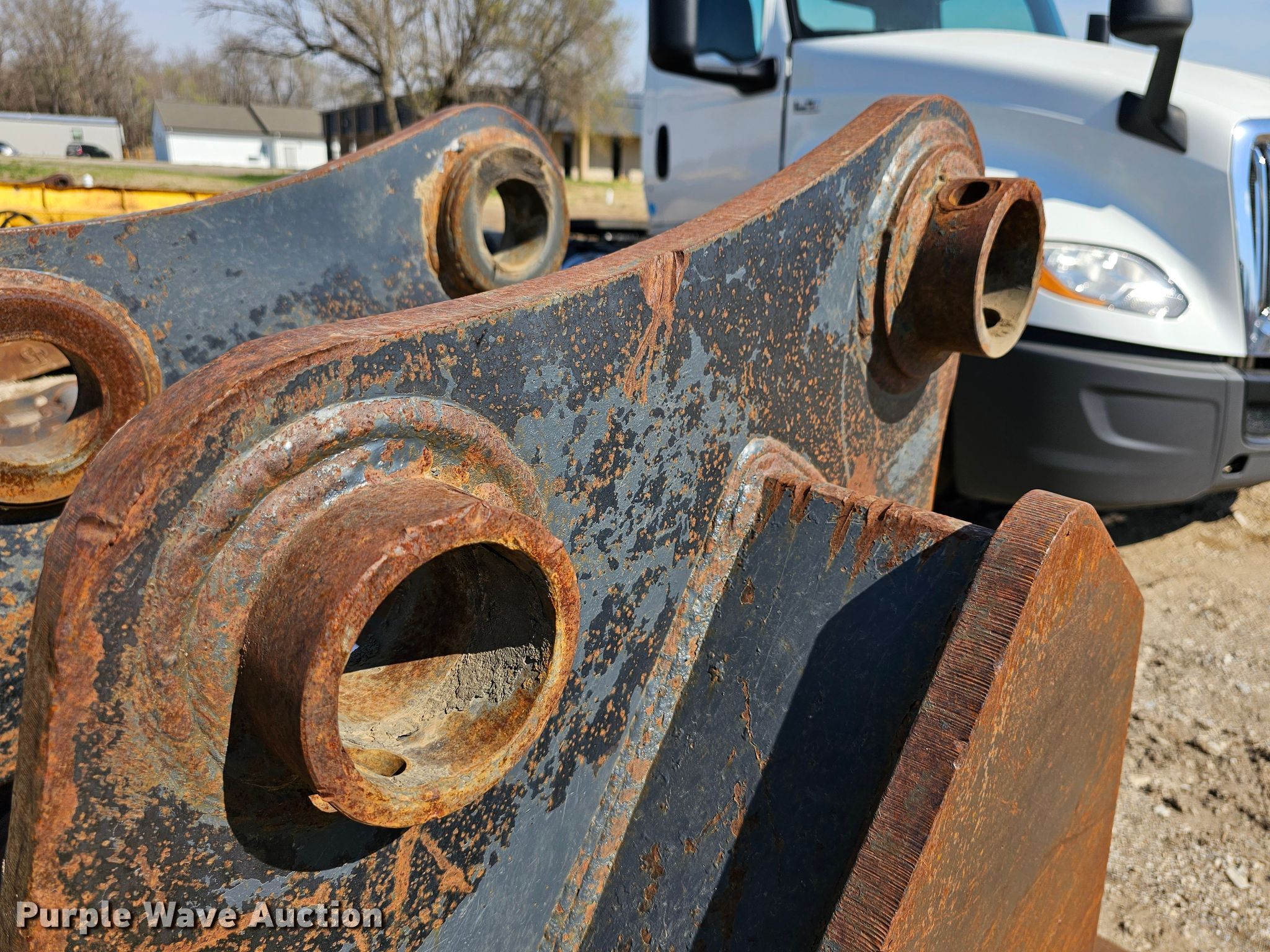 Purple Wave is selling a used Excavator Attach. in Kansas. This item is a John Deere 40" W excavator bucket with the following: Teeth: 5, Pin spacing: 16 1/8", Pin diameter: 90mm, Center spacing: 18 3/4"