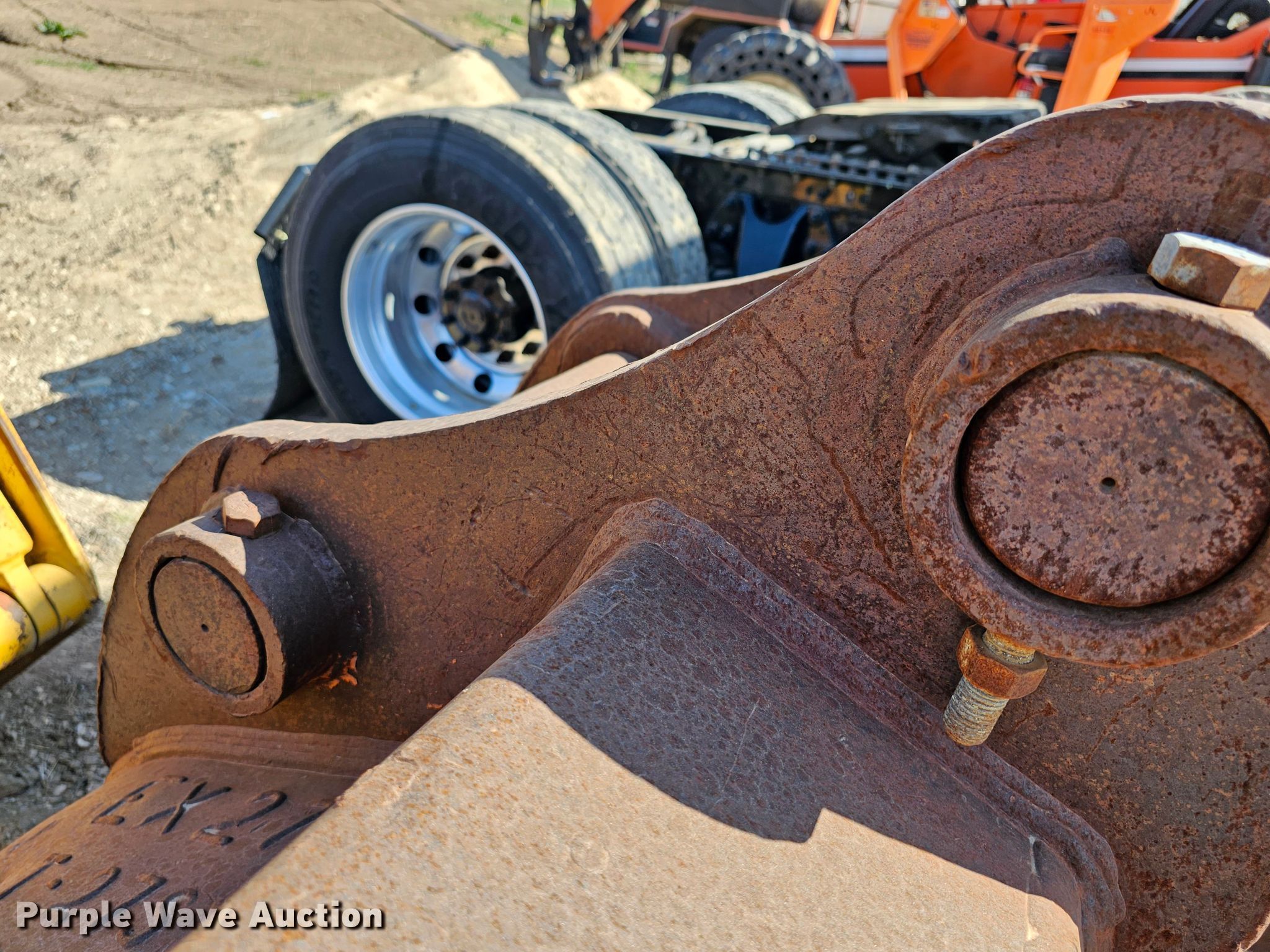 Purple Wave is selling a used Excavator Attach. in Kansas. This item is a 49.5" W excavator bucket with the following: Teeth: 6, Pin spacing: 16 1/4", Pin diameter: 90mm, Center spacing: 18 3/4", Two teeth missing