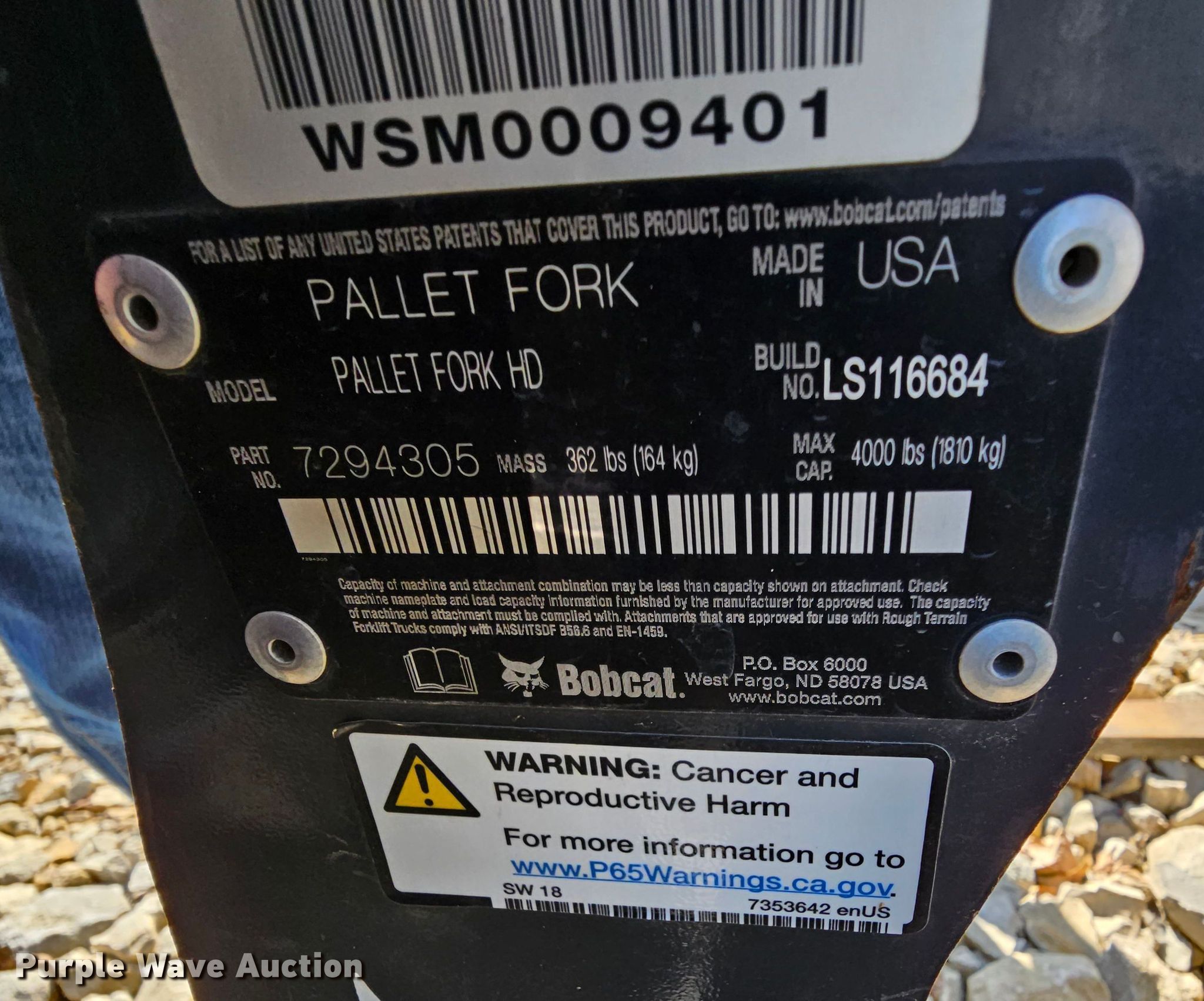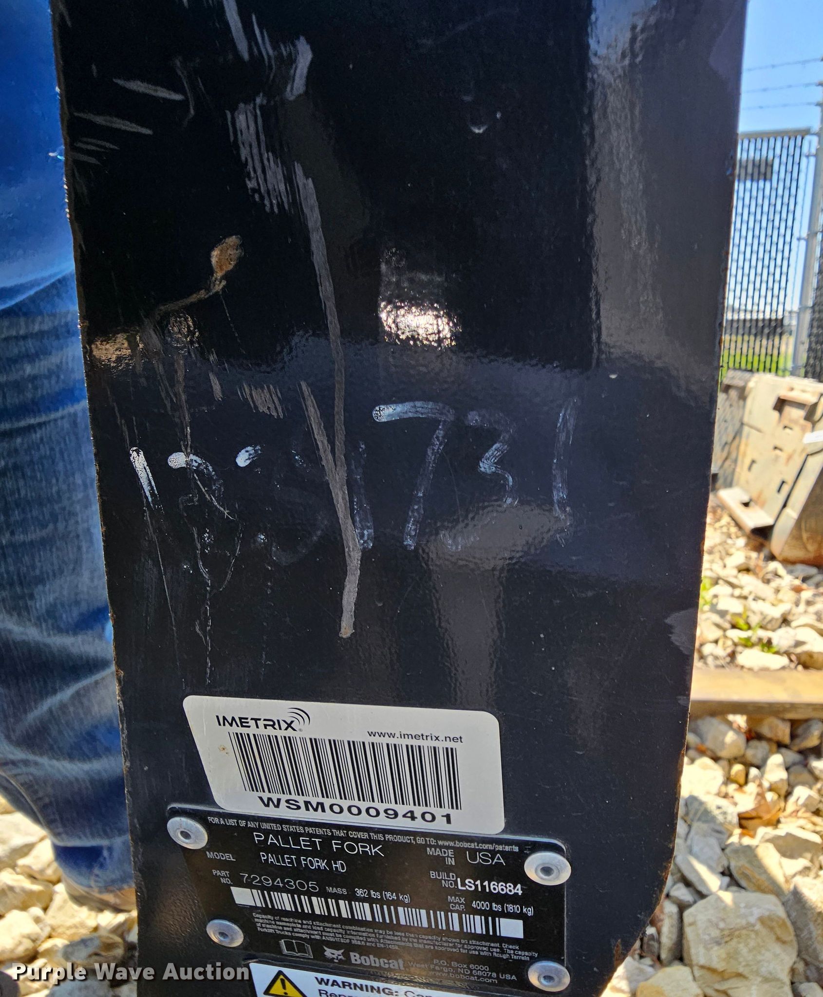 Purple Wave is selling a used Skid Steer Attach. in Kansas. This item is a Bobcat 7294305 skid steer forks with the following: Length: 48", Unit #: 1259782