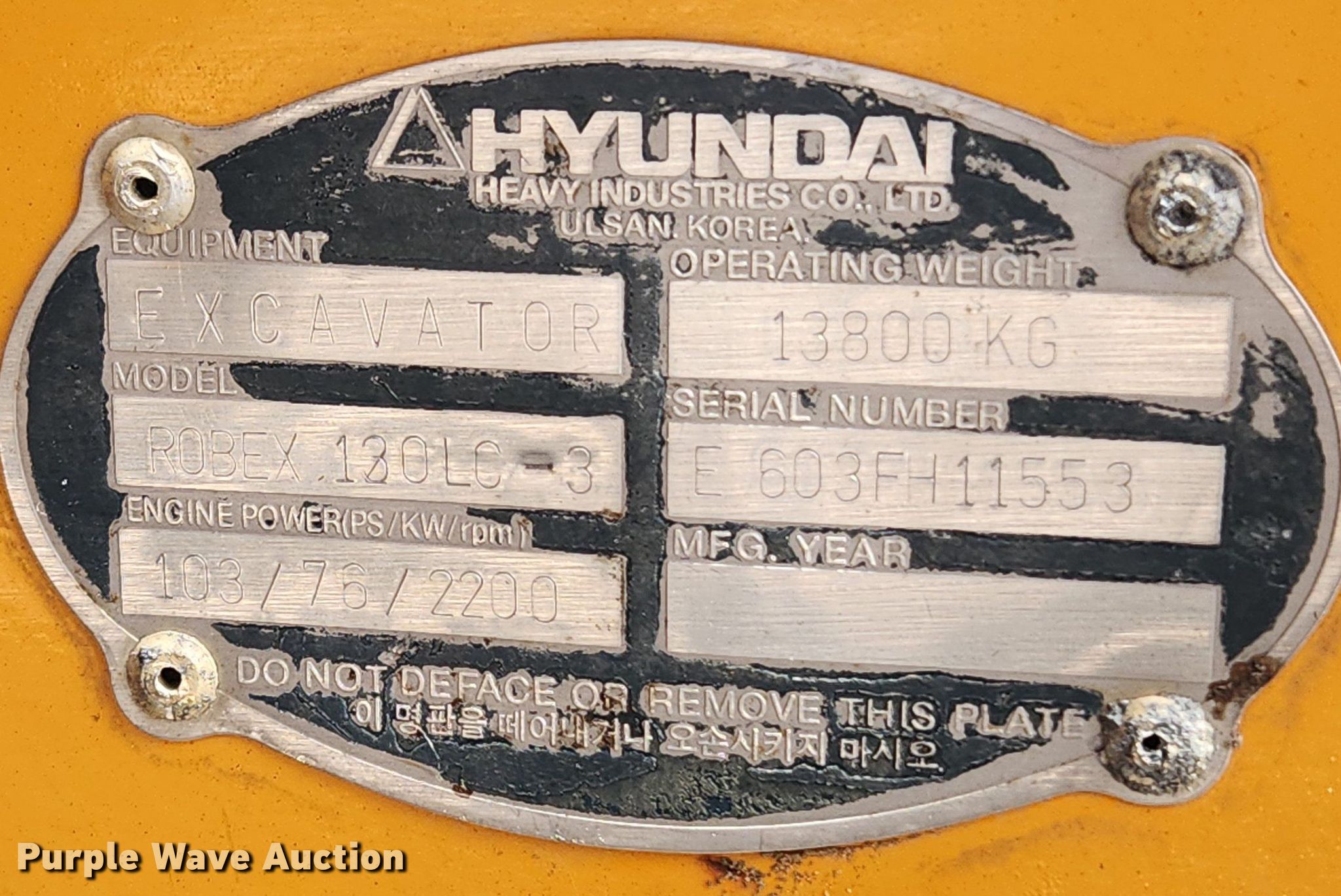 Purple Wave is selling a used Hydraulic Excavator in Missouri. This item is a 2000 Hyundai Robex 130LC-3 excavator with the following: Hours: 4,139 on meter, Serial: E603FH11553