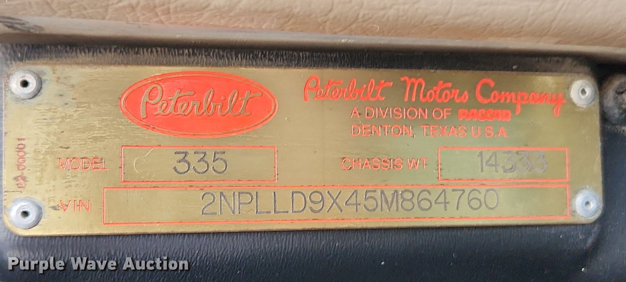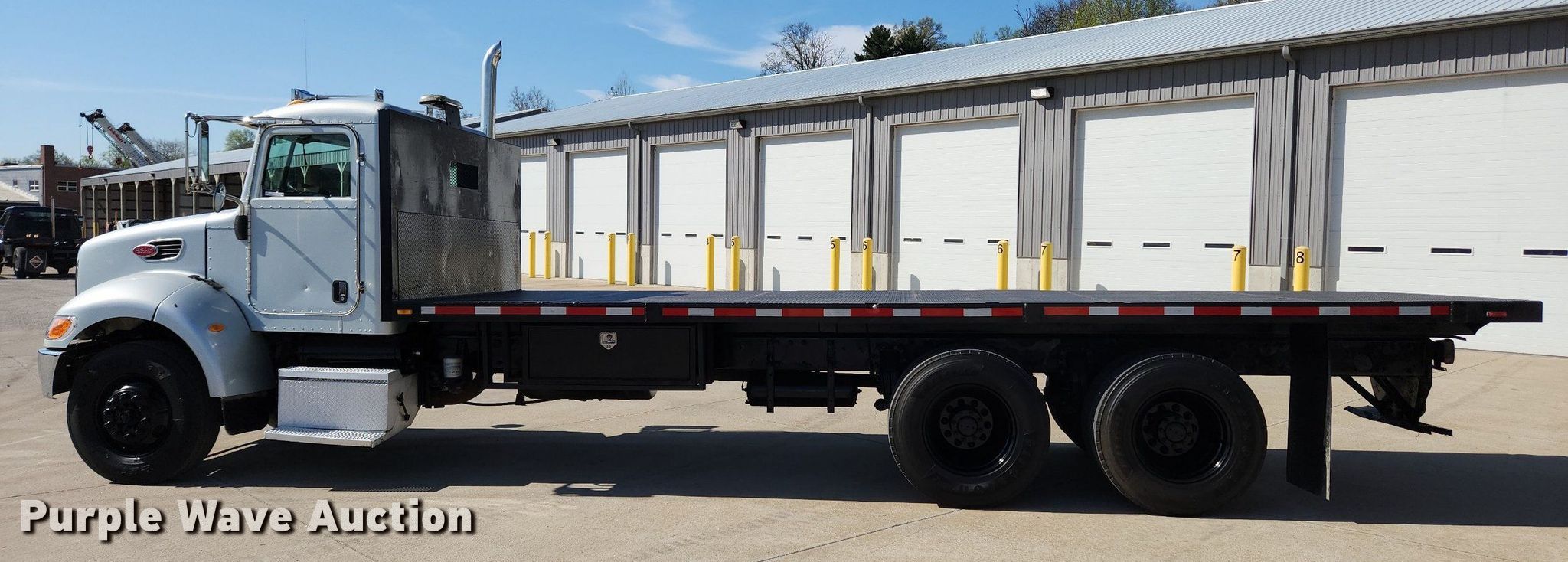 Purple Wave is selling a used Flat Bed Truck in Missouri. This item is a 2005 Peterbilt 335 flatbed truck with the following: Miles: 181,074 on odometer, VIN: 2NPLLD9X45M864760