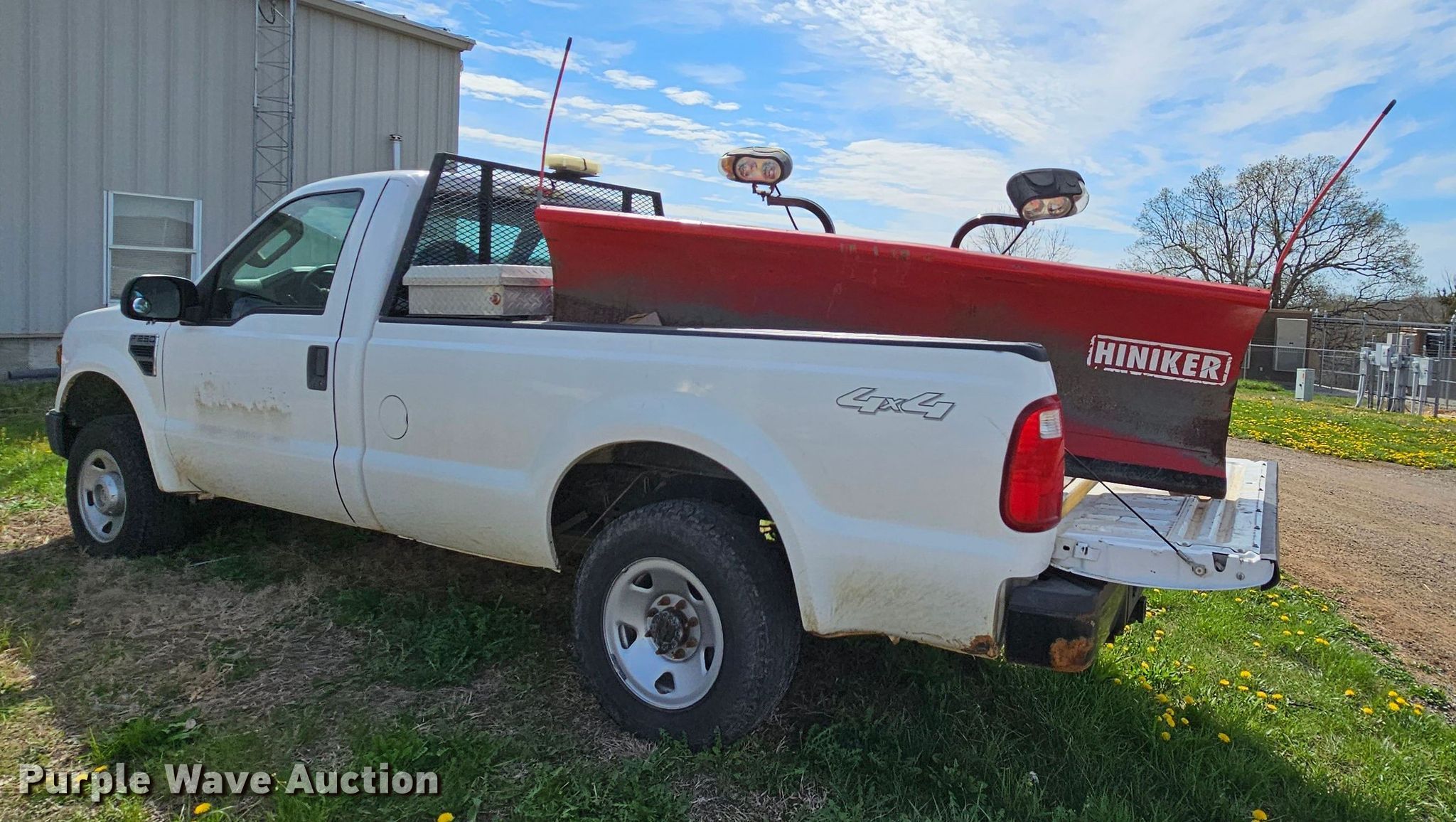 2008 Ford F250 Super Duty pickup truck. Miles: 131,294 on odometer, VIN: 1FTNF21558EC99588, Unit #: 28. Engine Displacement: 5.4L V8 SOHC, Cylinders: 8, Fuel type: Gas. Transmission Automatic, Four wheel drive. Interior AC, Heat. Features Hiniker 8' snow plow Remote. Tires Size: 245/75R17. Notes Dash warning indicator: TPMS, Brake, Battery missing, Snow plow unattached but included, Non-operational brakes Line rusted, Calipers may need replaced, Non-operational unit. Kansas title. Title distribution may be delayed up to 14 days from verification of funds. Louisburg, KS 66053
