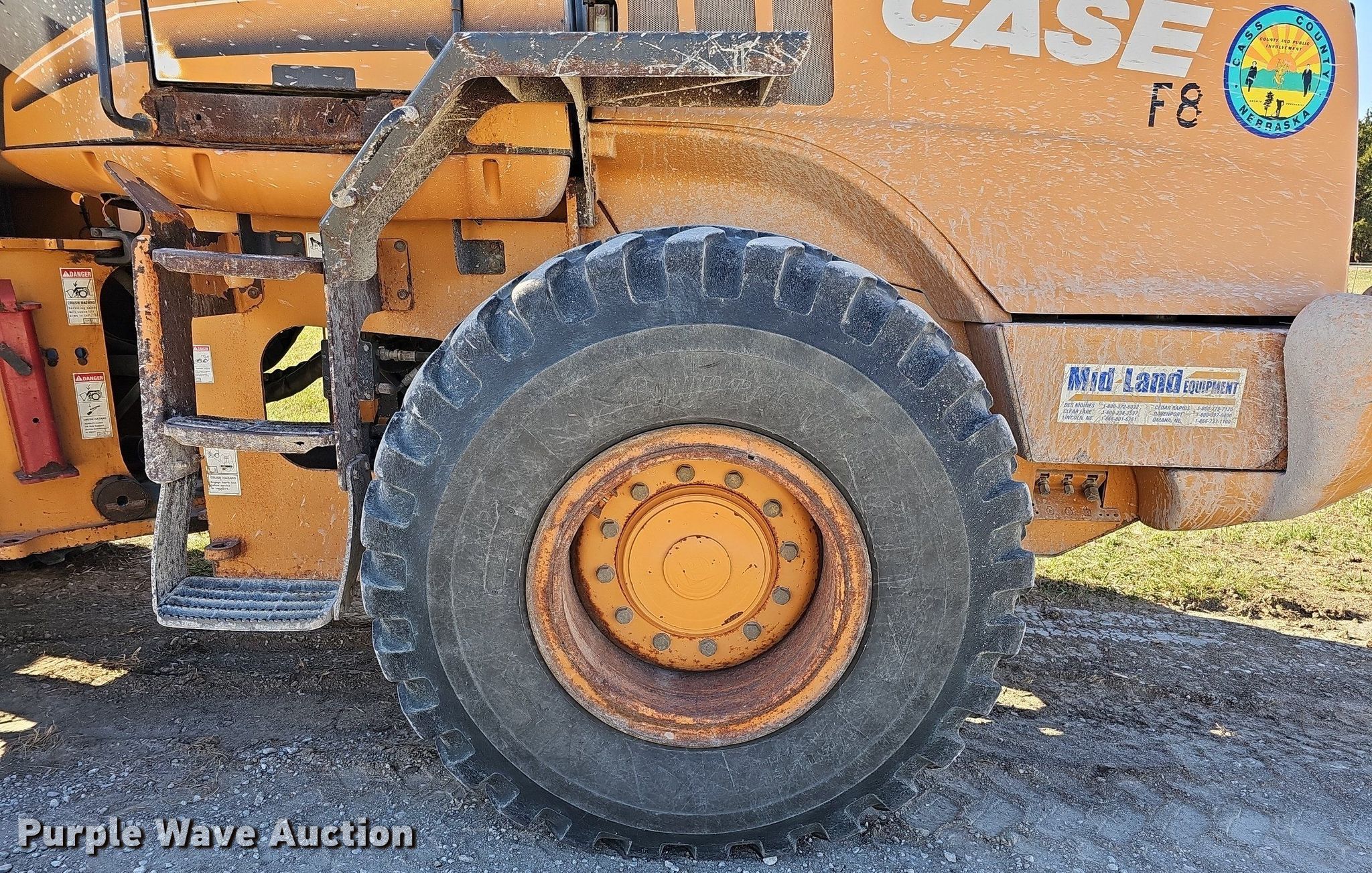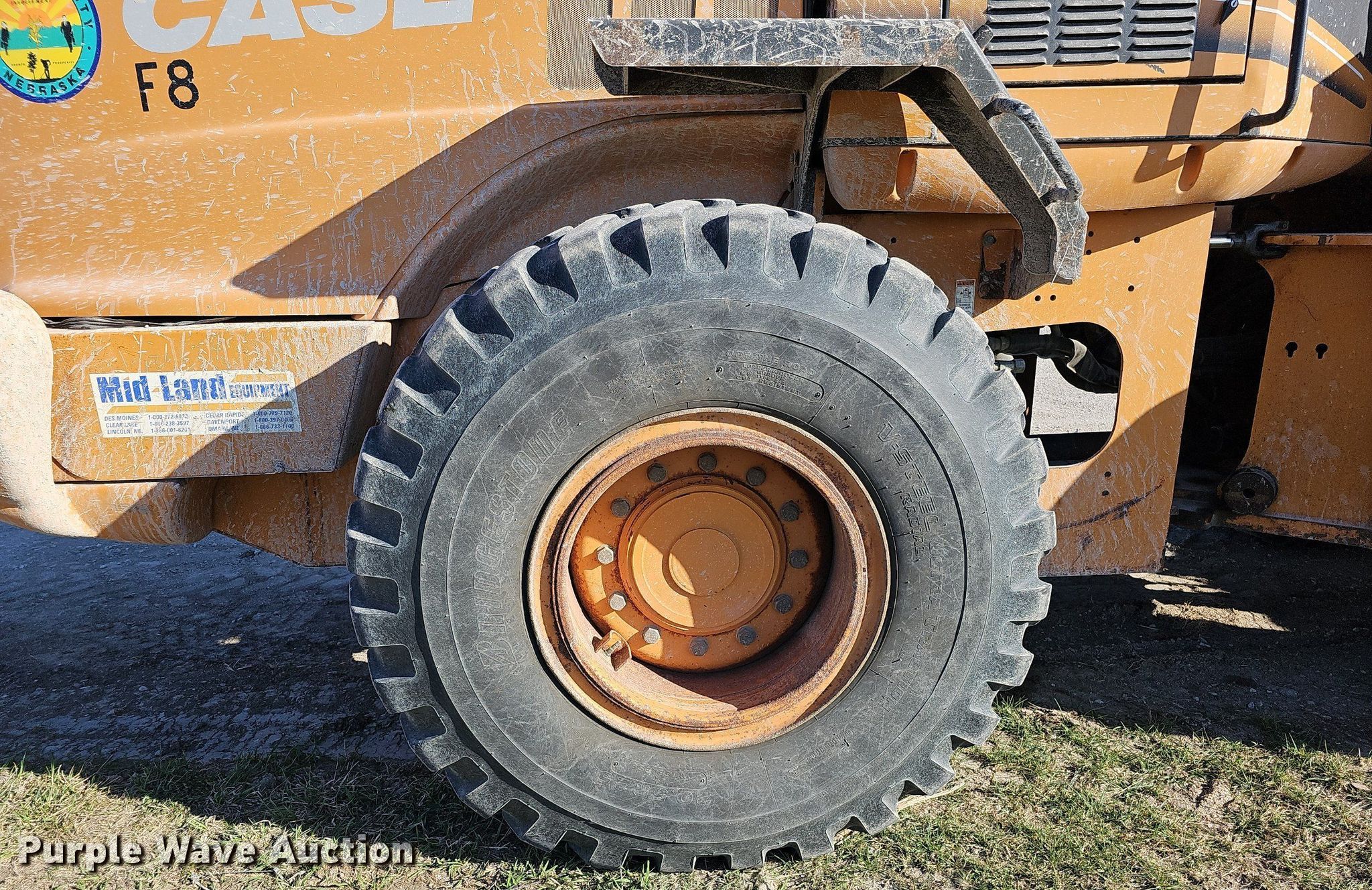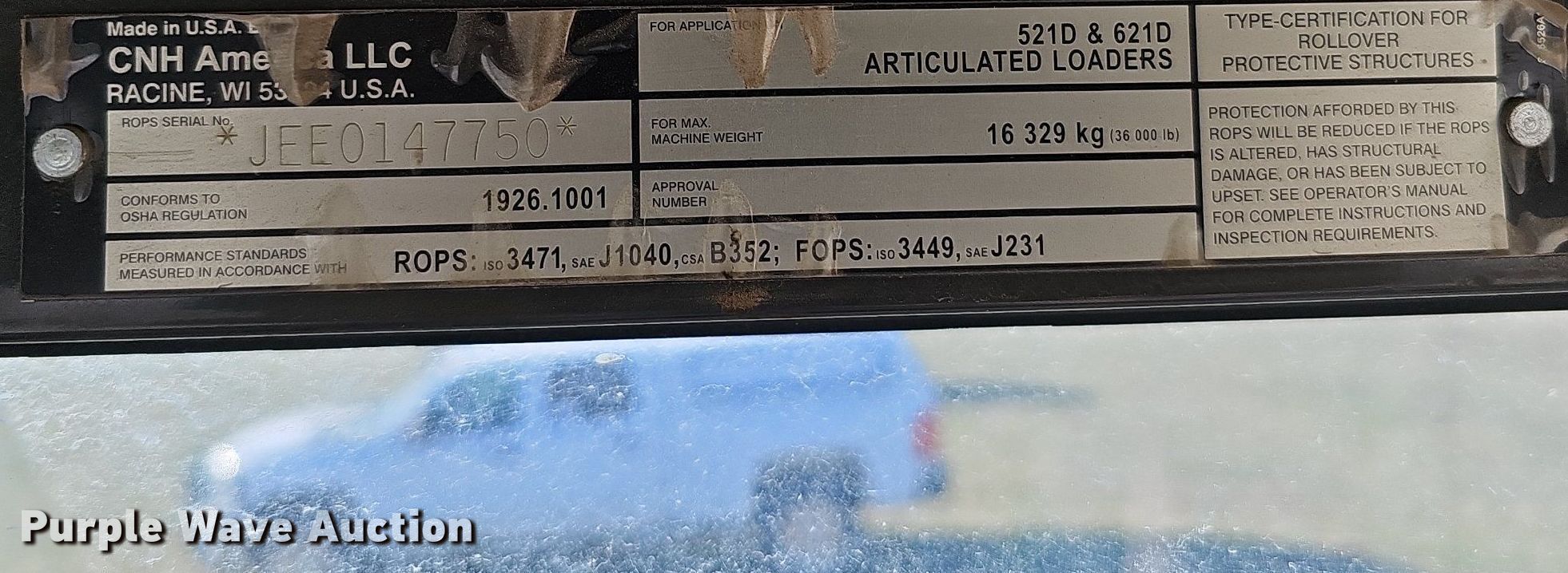 2006 Case 621D wheel loader. Hours: 7,119 on meter, Serial: JEE0140525. Engine Cylinders: 6, Fuel type: Diesel. Transmission Powershift, 4F - 3R. Operators station EROPS, AC, Heat, Bucket controls: Joystick, Ride control. Features Quick coupler: Hydraulic, Bucket Width: 102", Cutting edge: Bolt-on, Balderson coupler. Tires Front: 20.5R25, Rear: Same. Notes Rust damage. Cass County, NE. 7600 Nebraska 50. Weeping Water, NE 68463