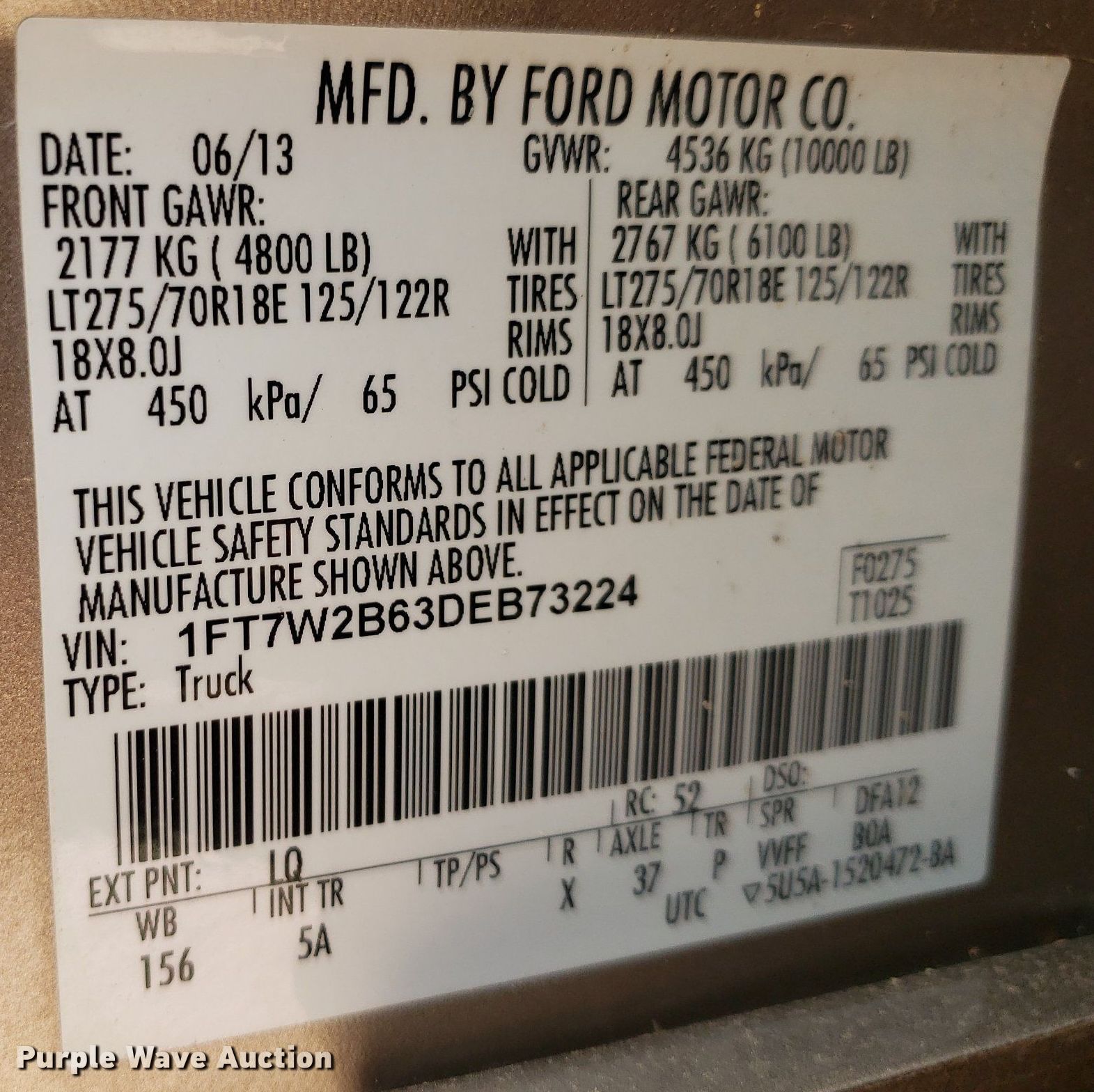 - VIN: 1FT7W2B63DEB73224