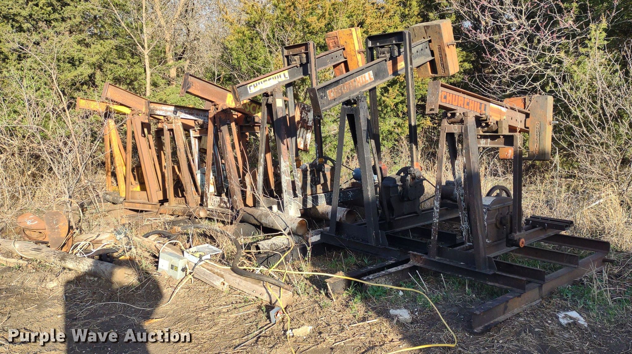 Purple Wave is selling a used Other Industrial or Business in Kansas. This item is a (7) pump jacks with the following: Control #: 023FP3-01 Booze, (5) Churchill, (2) Rausch, (3) electric motors