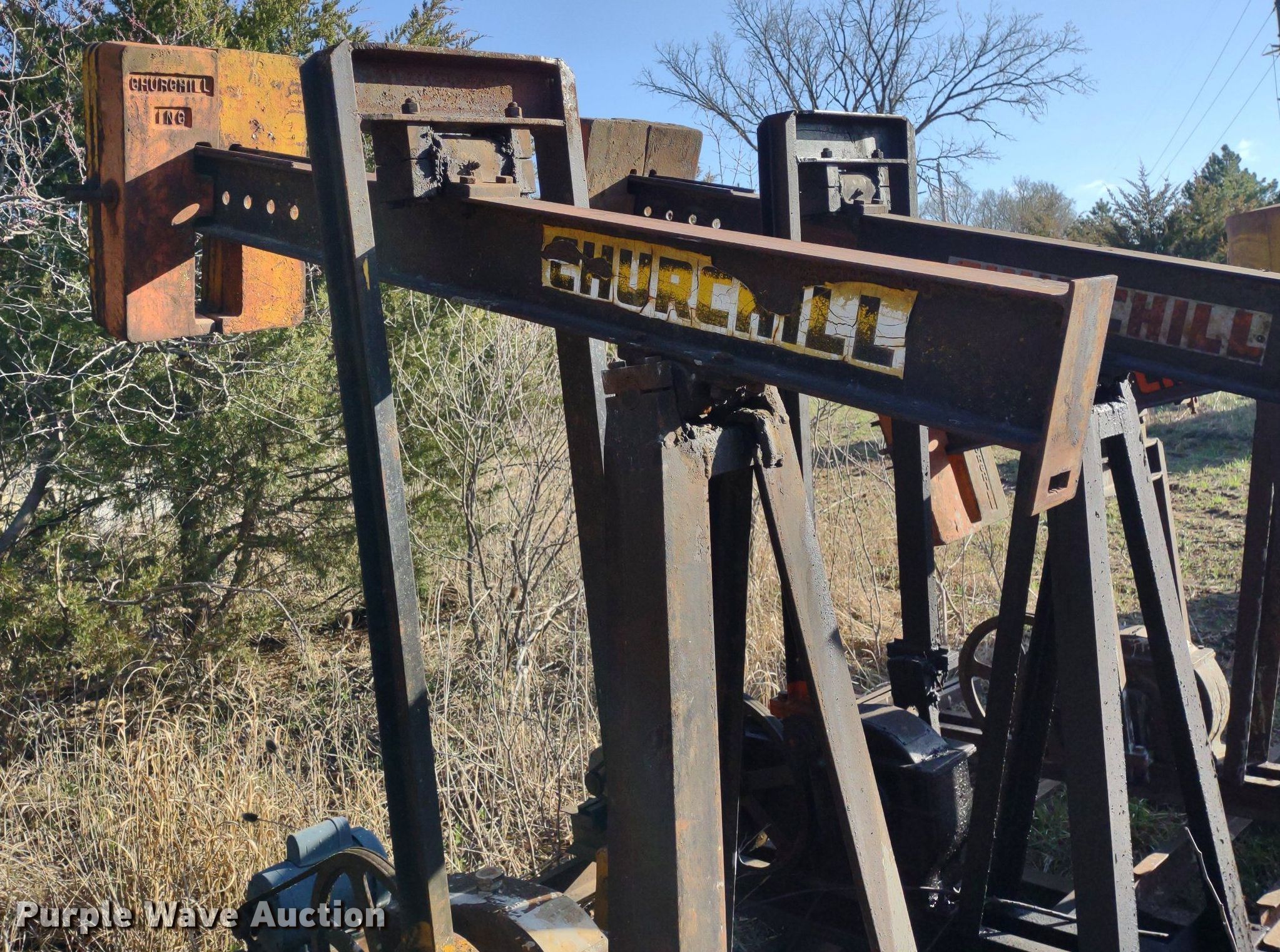 (7) pump jacks. Control #: 023FP3-01 Booze, (5) Churchill , (2) Rausch, (3) electric motors. KCC Conservation Division Oilfield Salvage Disposal. Chanute, KS 66720