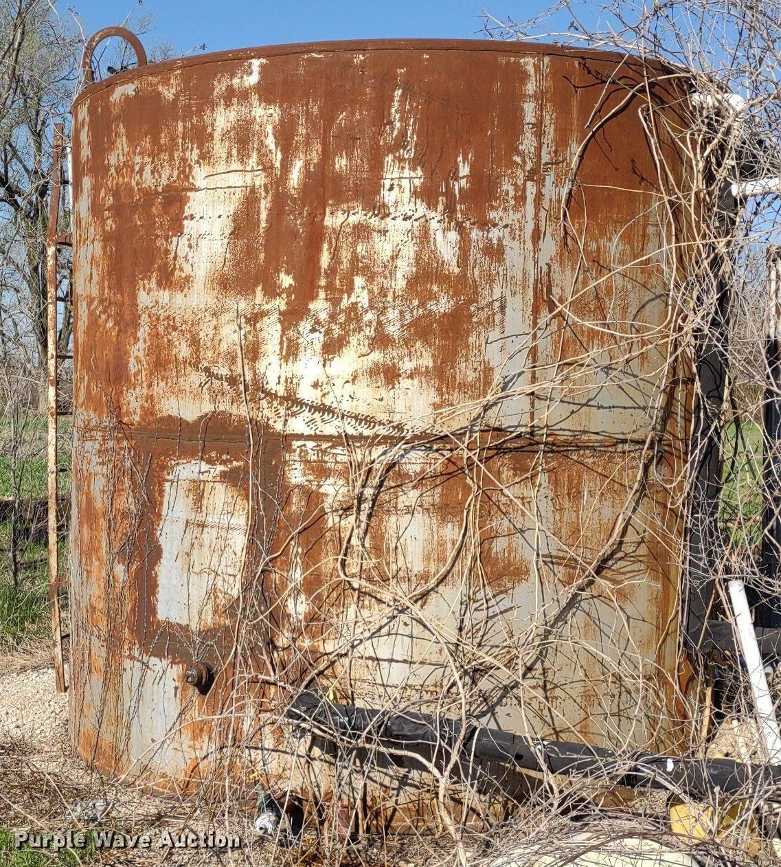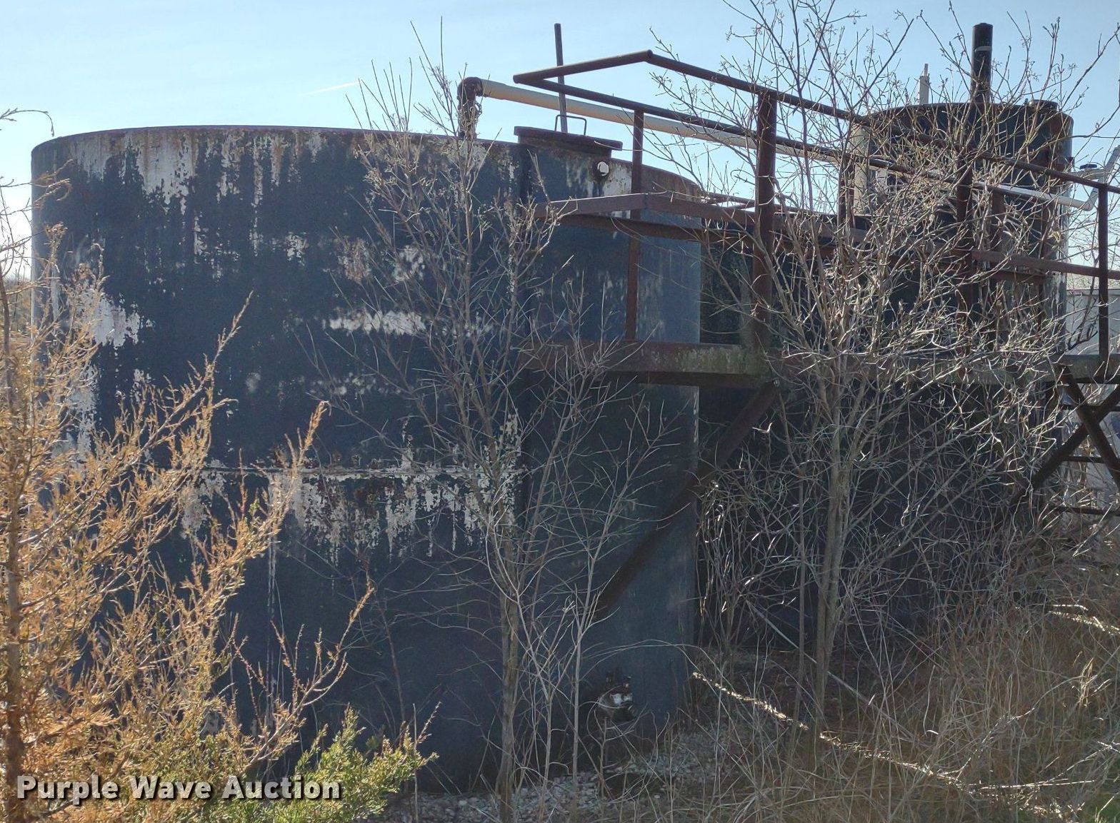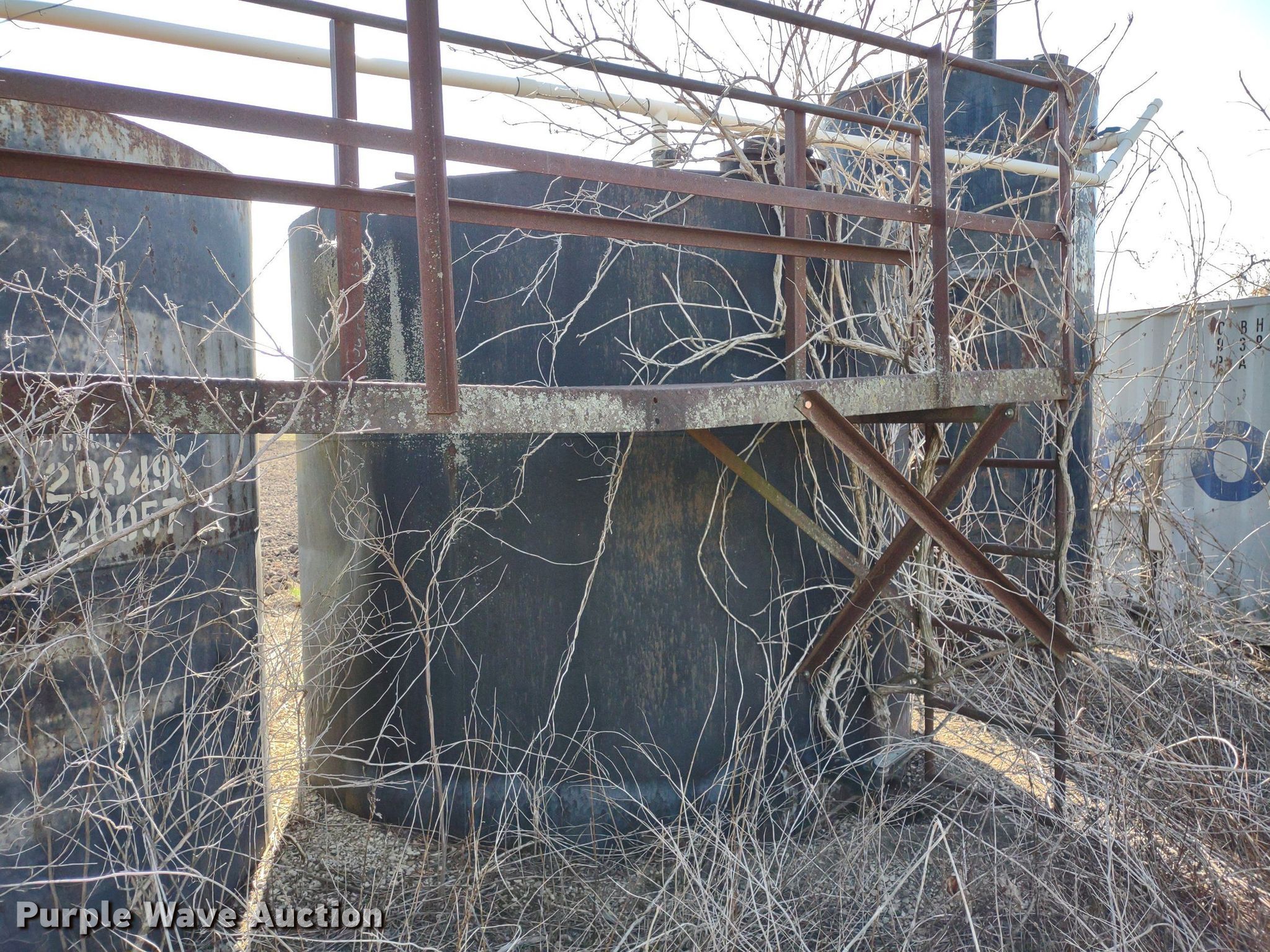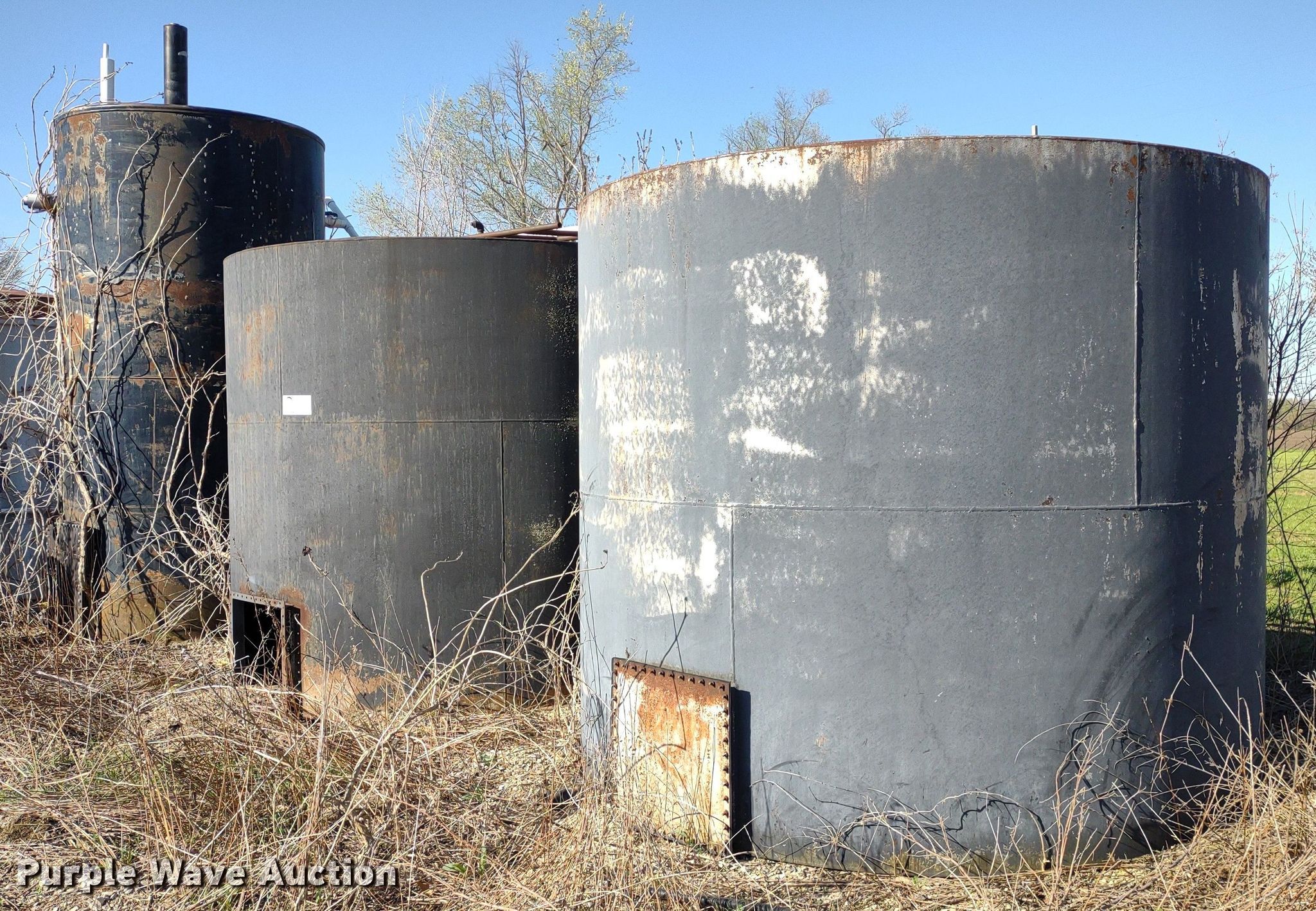 Purple Wave is selling a used Tanks in Kansas. This item is a (4) tanks with the following: (3) steel storage tanks, Capacity: 200 barrels, (2) Capacity: 100 barrels, Steel gun barrel, Capacity: 80 barrels, Catwalk, Ladders, Control #: 2023FP3-01 - Querry