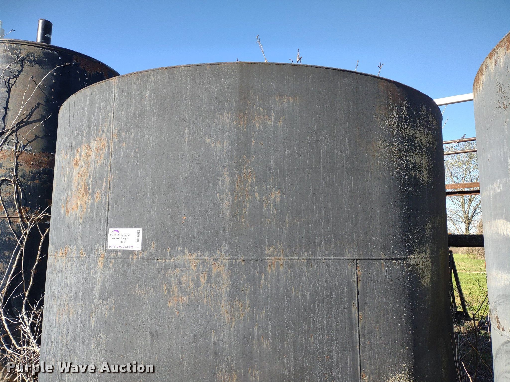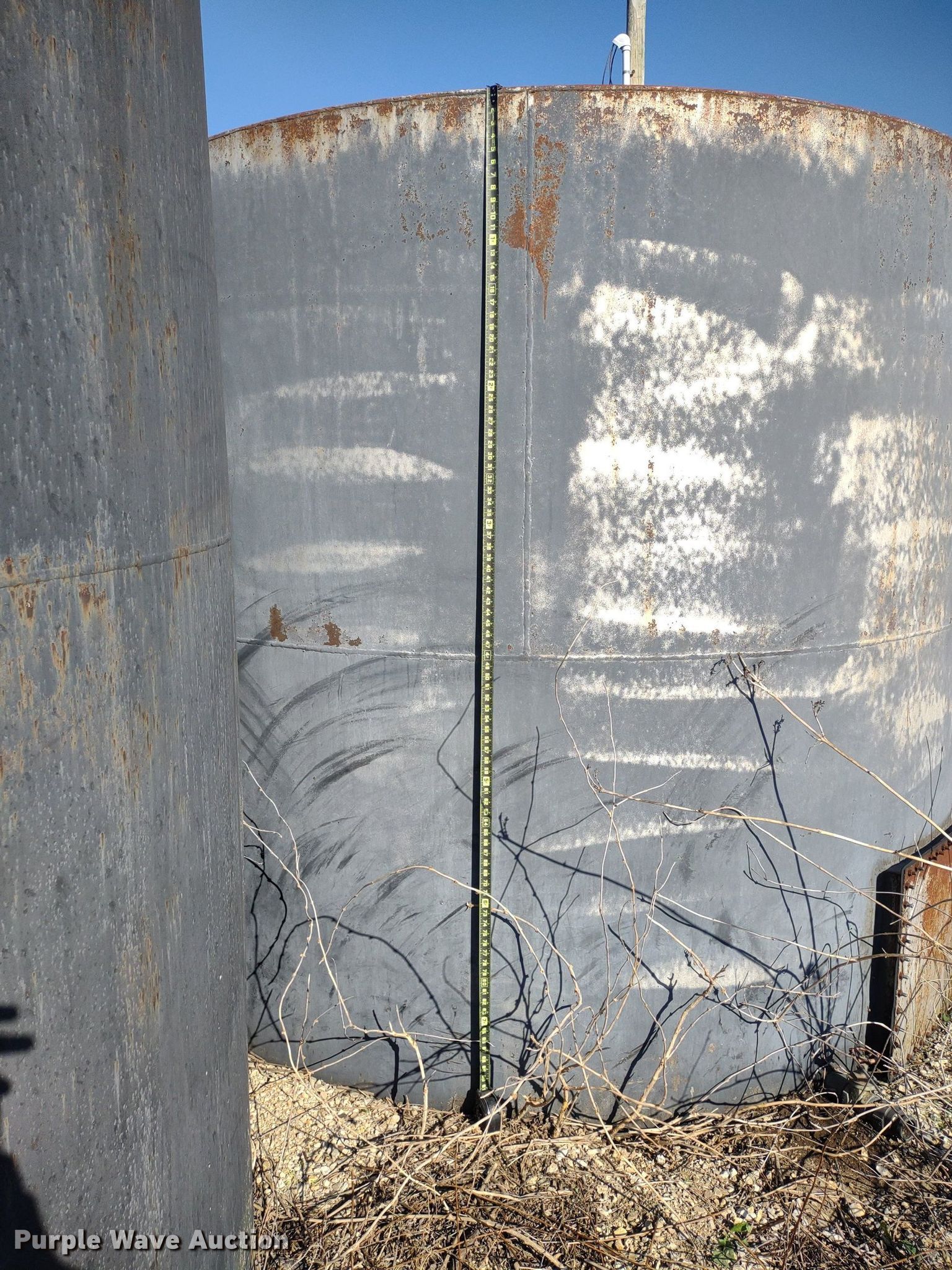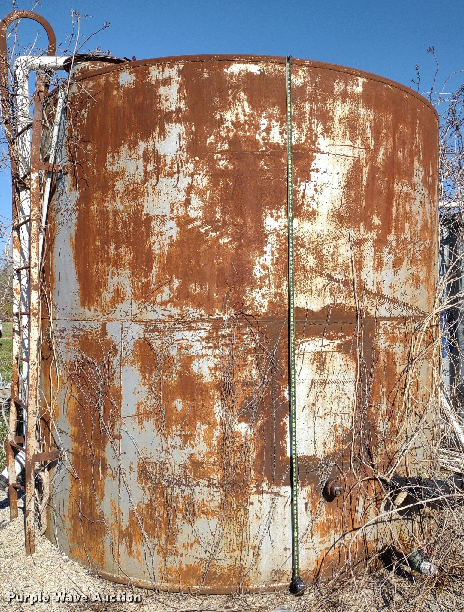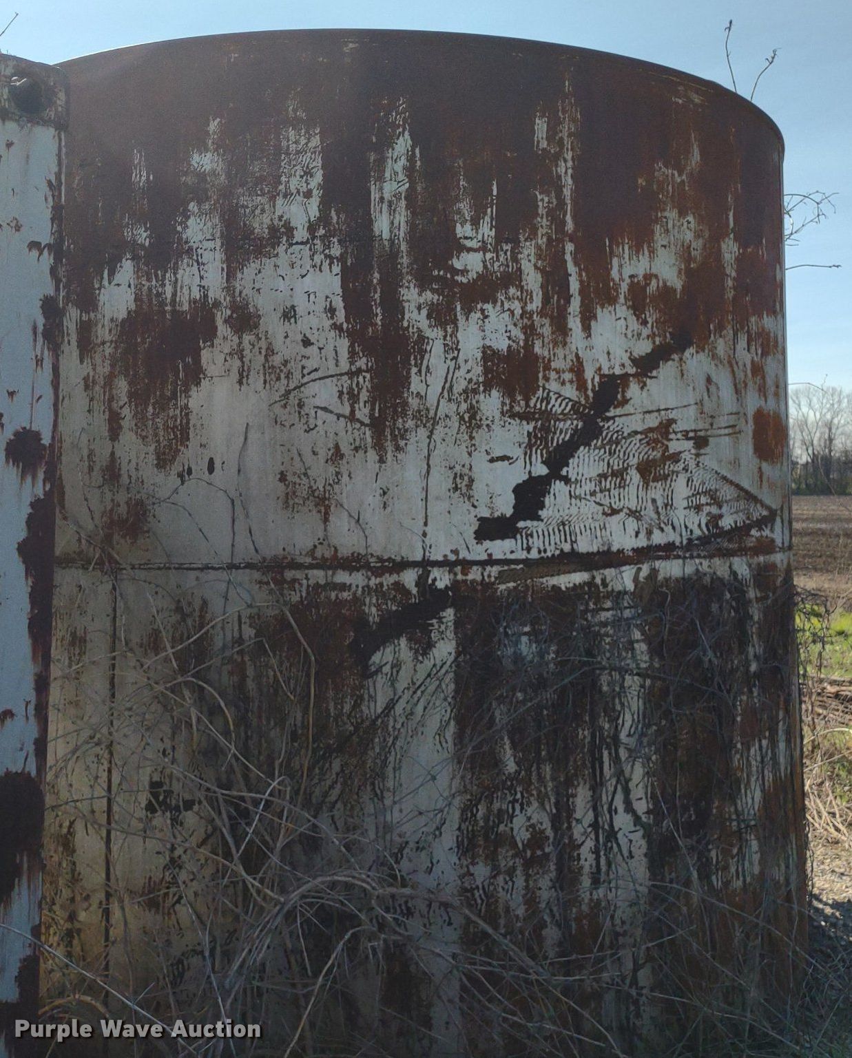 Purple Wave is selling a used Tanks in Kansas. This item is a (4) tanks with the following: (3) steel storage tanks, Capacity: 200 barrels, (2) Capacity: 100 barrels, Steel gun barrel, Capacity: 80 barrels, Catwalk, Ladders, Control #: 2023FP3-01 - Querry
