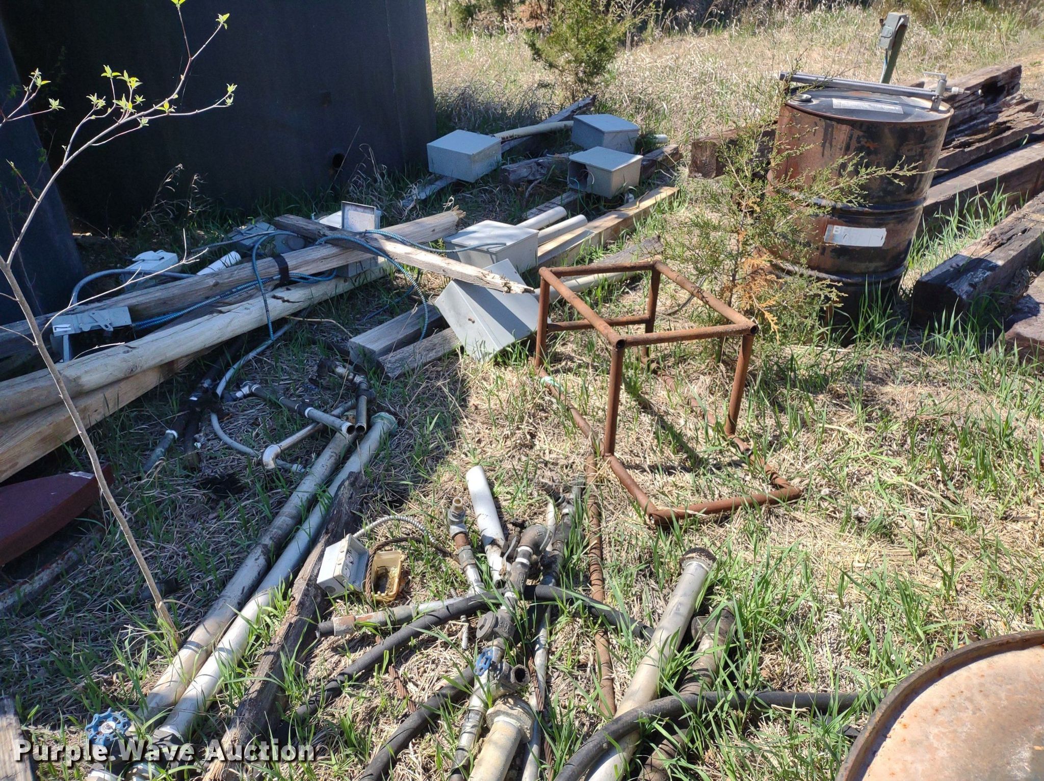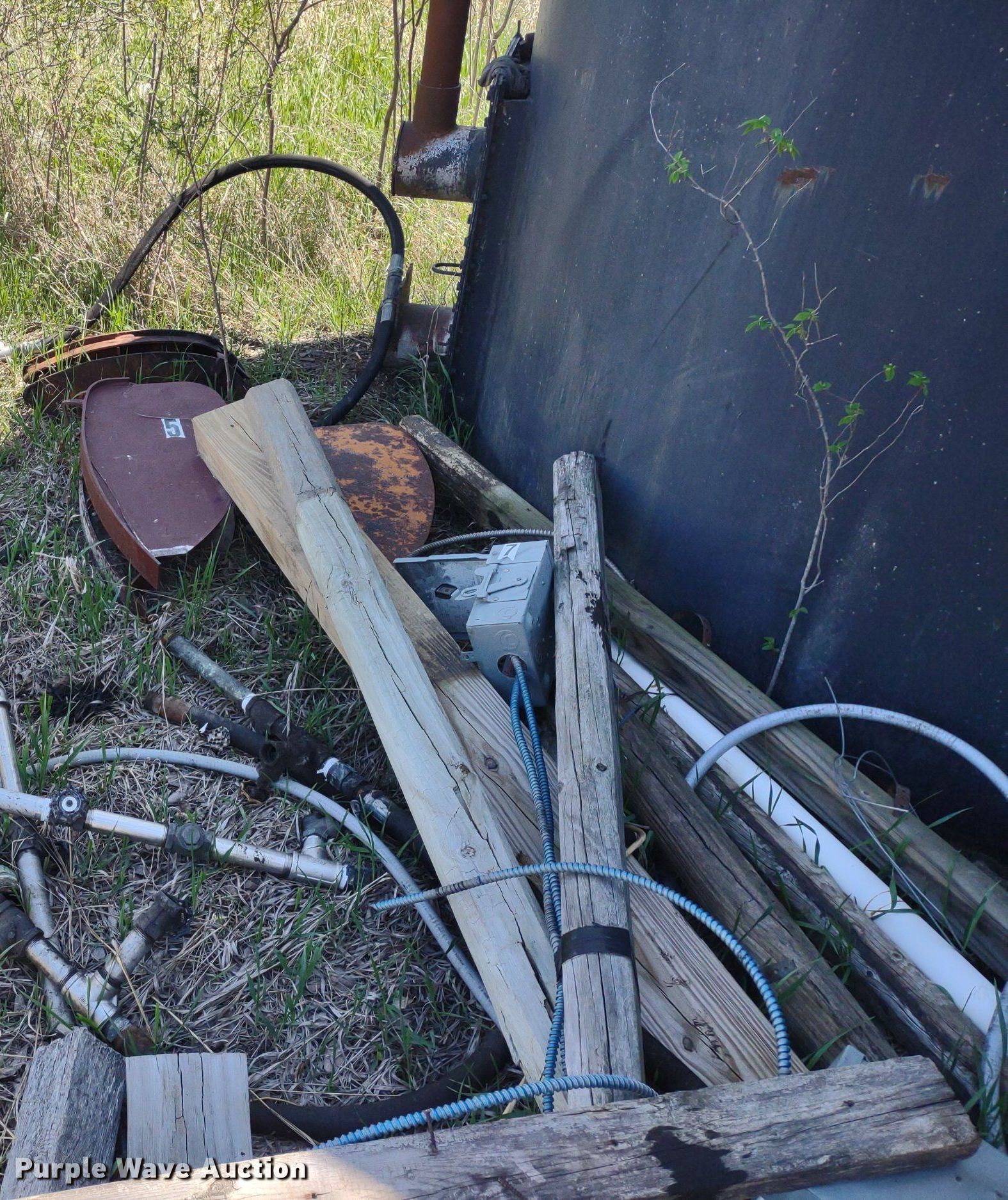 Oilfield equipment. Control#: 2023FP3-03 - Thohoff, (2) Fiberglass tanks, Fiberglass gun barrel, Pump house (3) pump hoses, Pipe fitting, (2) electrical boxes, Fiberglass tank , (17) pieces of pipe 1" diameter, 2" diameter, (12) electric boxes, (19) railroad ties, Ladders , Catwalk. KCC Conservation Division Oilfield Salvage Disposal. Iola , KS 66749