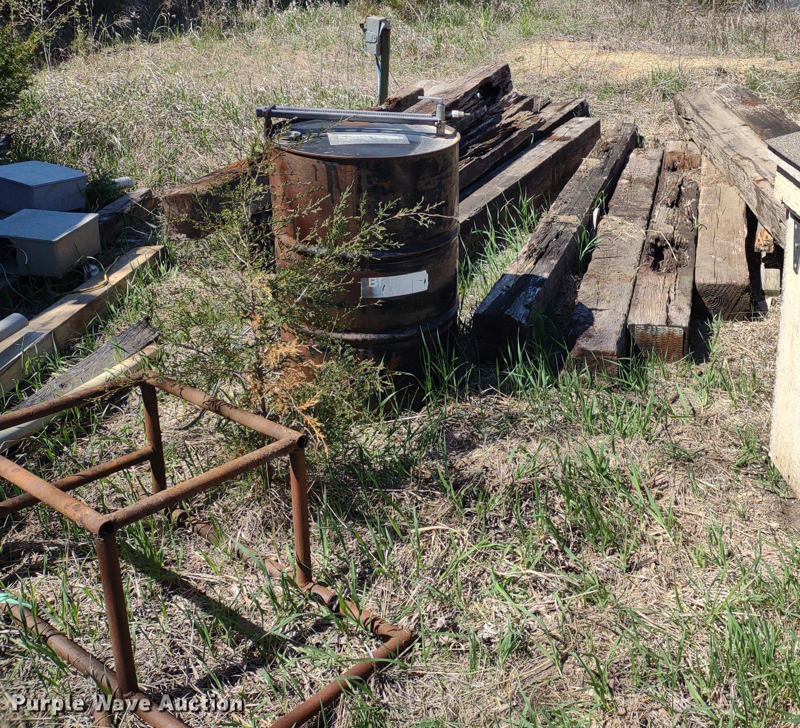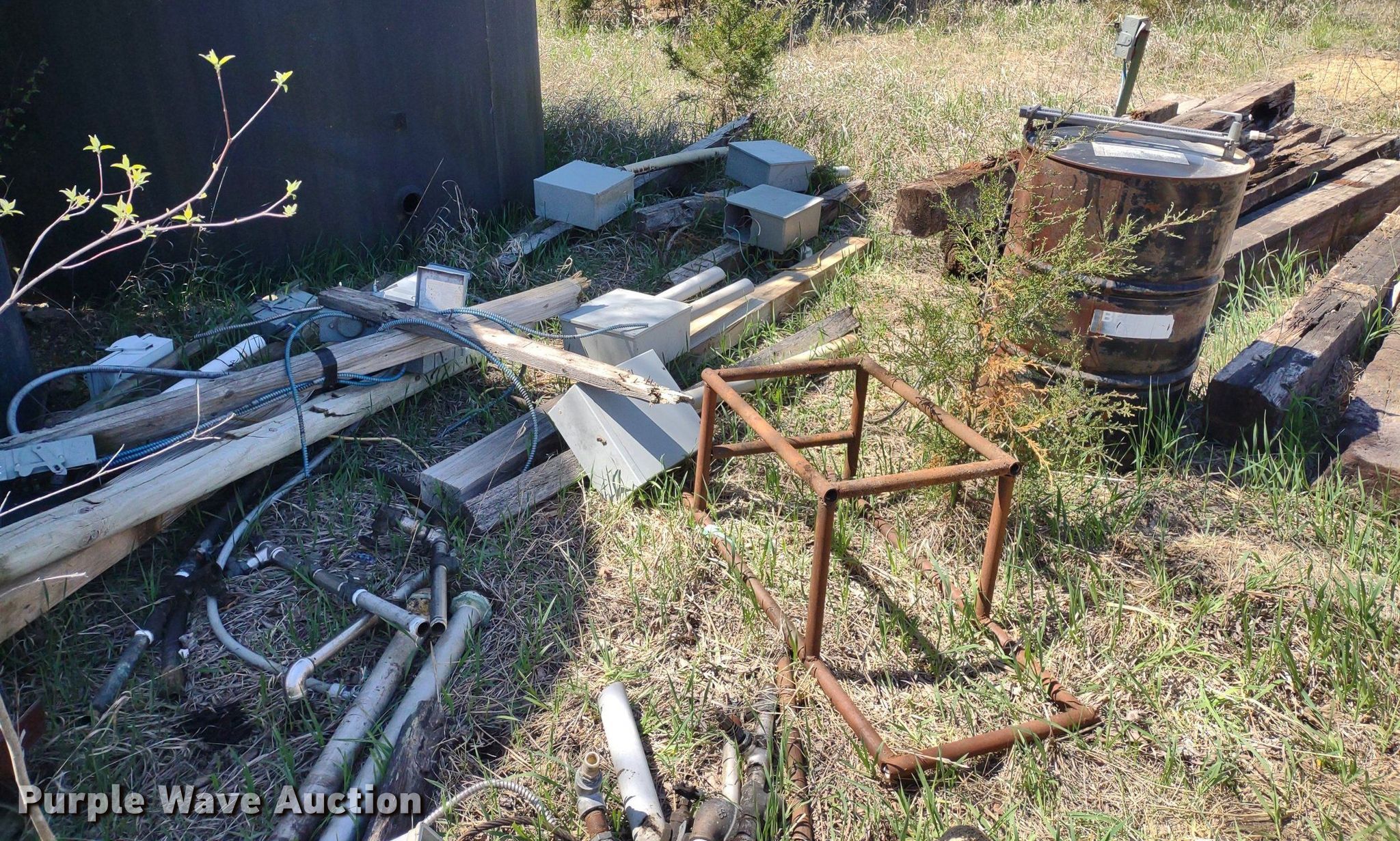 Purple Wave is selling a used Other Industrial or Business in Kansas. This item is a Oilfield equipment with the following: Control#: 2023FP3-03 - Thohoff, (2) Fiberglass tanks, Fiberglass gun barrel, Pump house, (3) pump hoses, Pipe fitting, (2) electrical boxes, Fiberglass tank, (17) pieces of pipe, 1" diameter, 2" diameter, (12) electric boxes, (19) railroad ties, Ladders, Catwalk