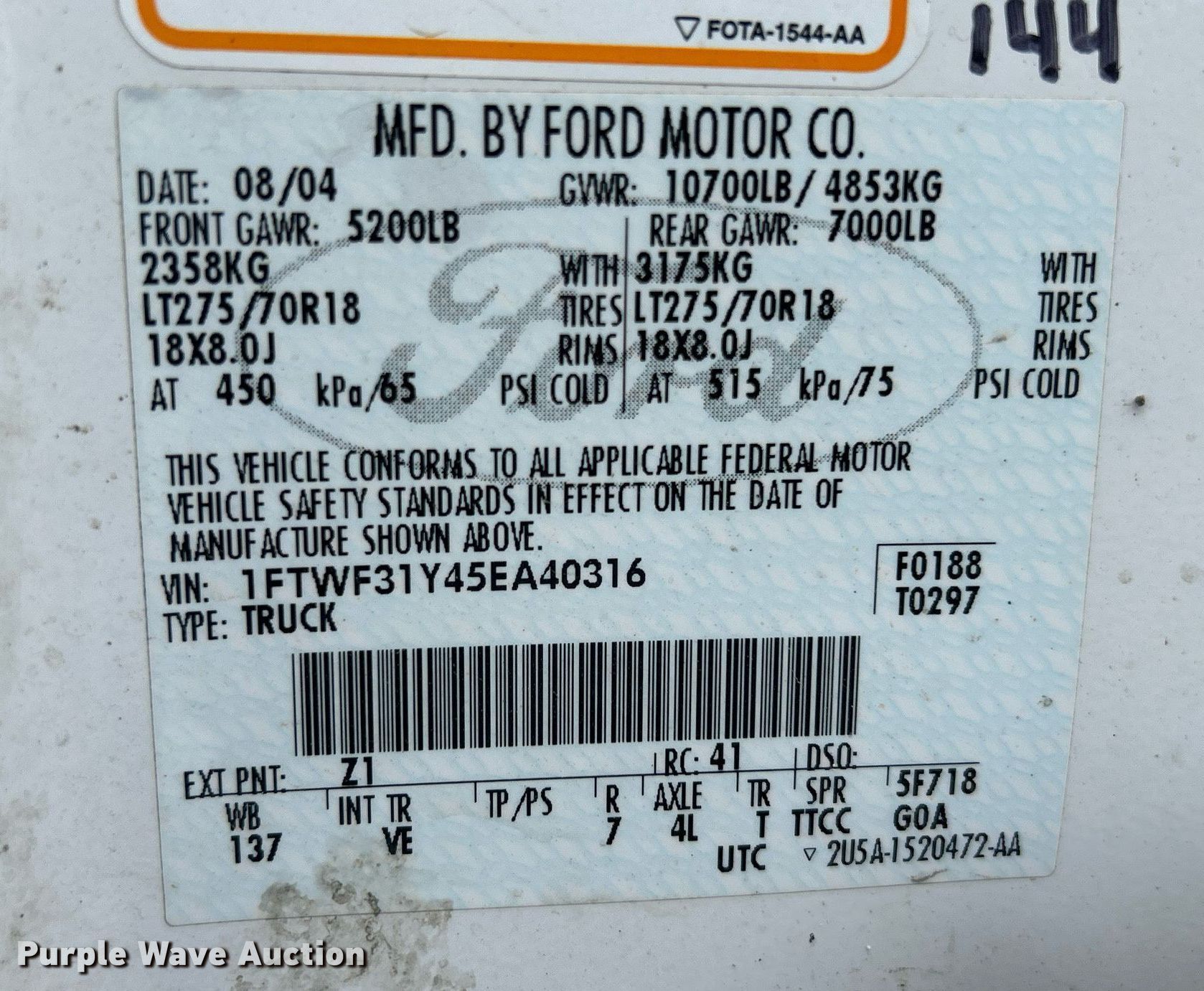Purple Wave is selling a used 3/4 or 1 Ton Pickup or Van in Iowa. This item is a 2005 Ford F350 Super Duty XL pickup truck with the following: Miles: 38,586 on odometer, VIN: 1FTWF31Y45EA40316