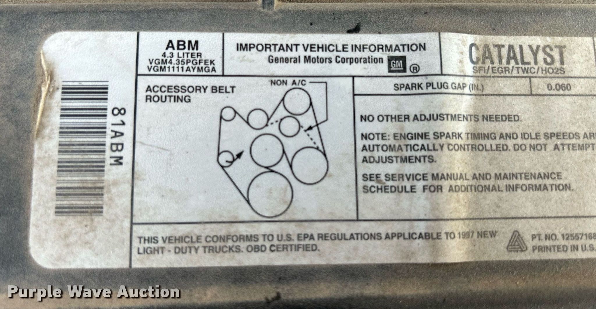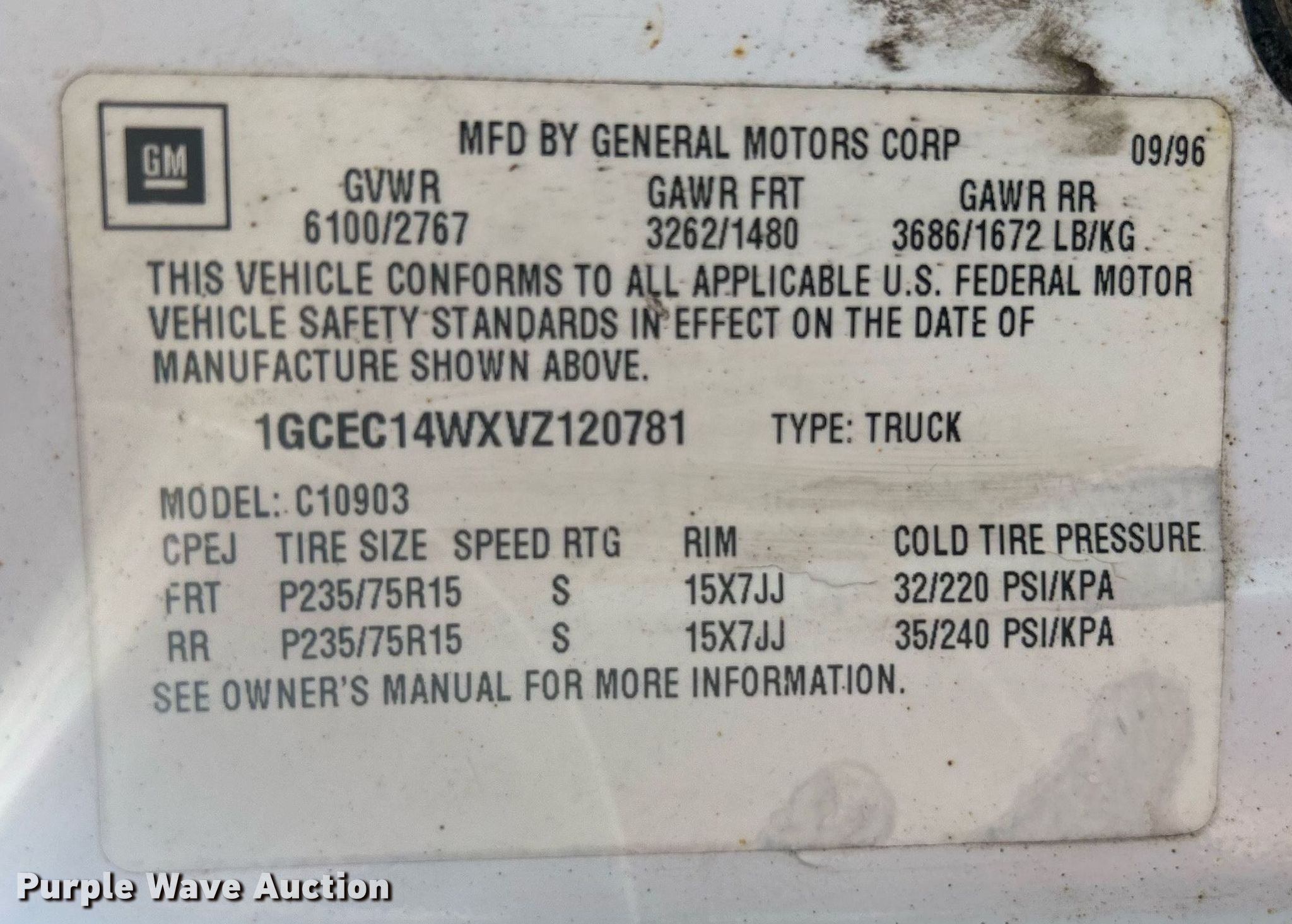 Purple Wave is selling a used 1/2 Ton Pickup or Van in Iowa. This item is a 1997 Chevrolet C1500 pickup truck with the following: Miles: 70,210 on odometer, VIN: 1GCEC14WXVZ120781