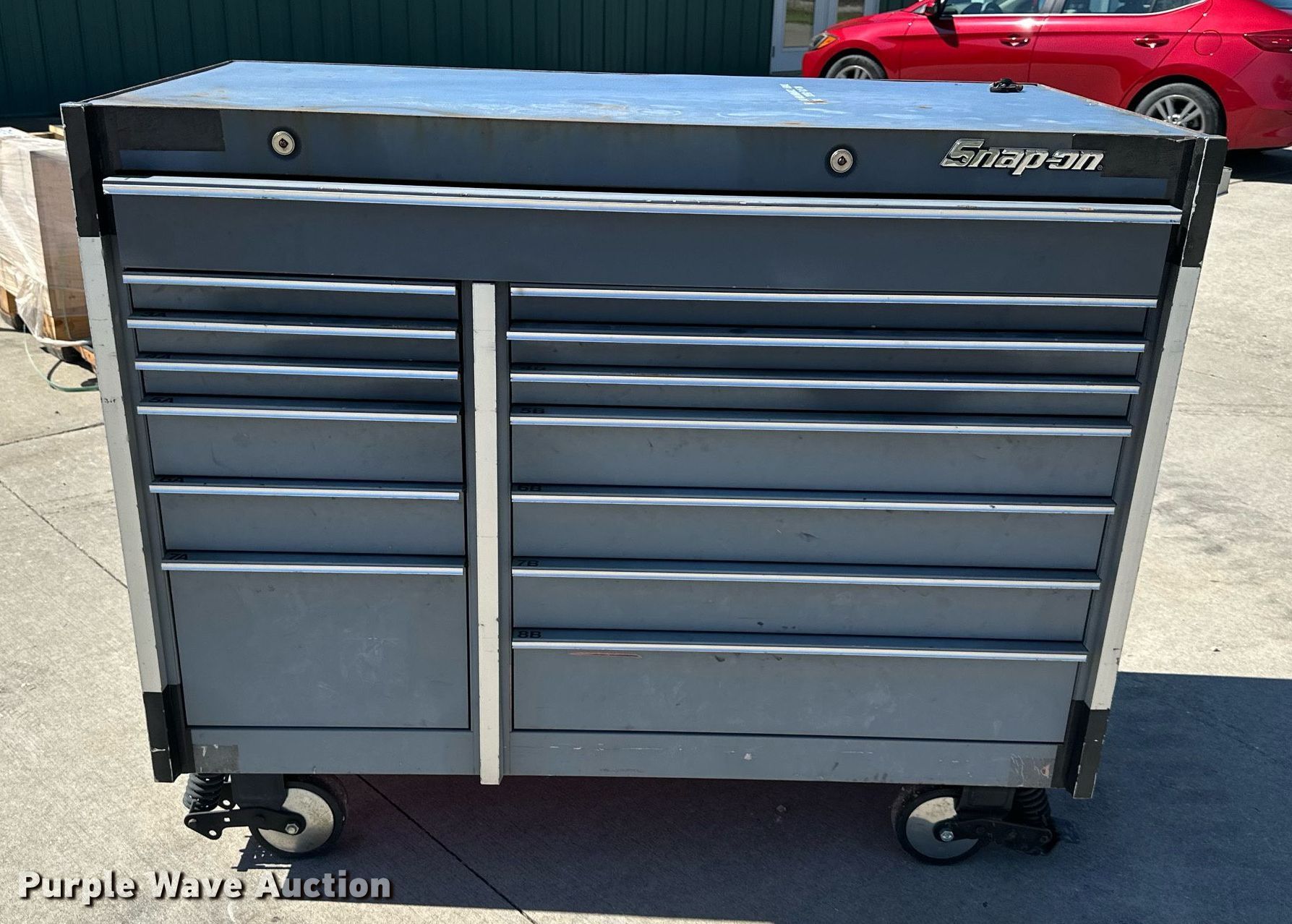 Purple Wave is selling a used Tools in Missouri. This item is a Snap On toolbox with the following: 56" L x 29" W x 46" H