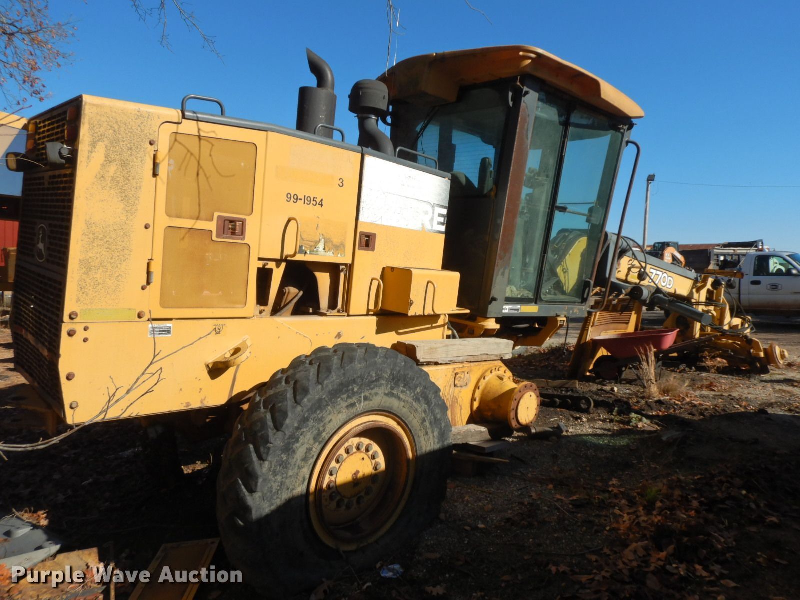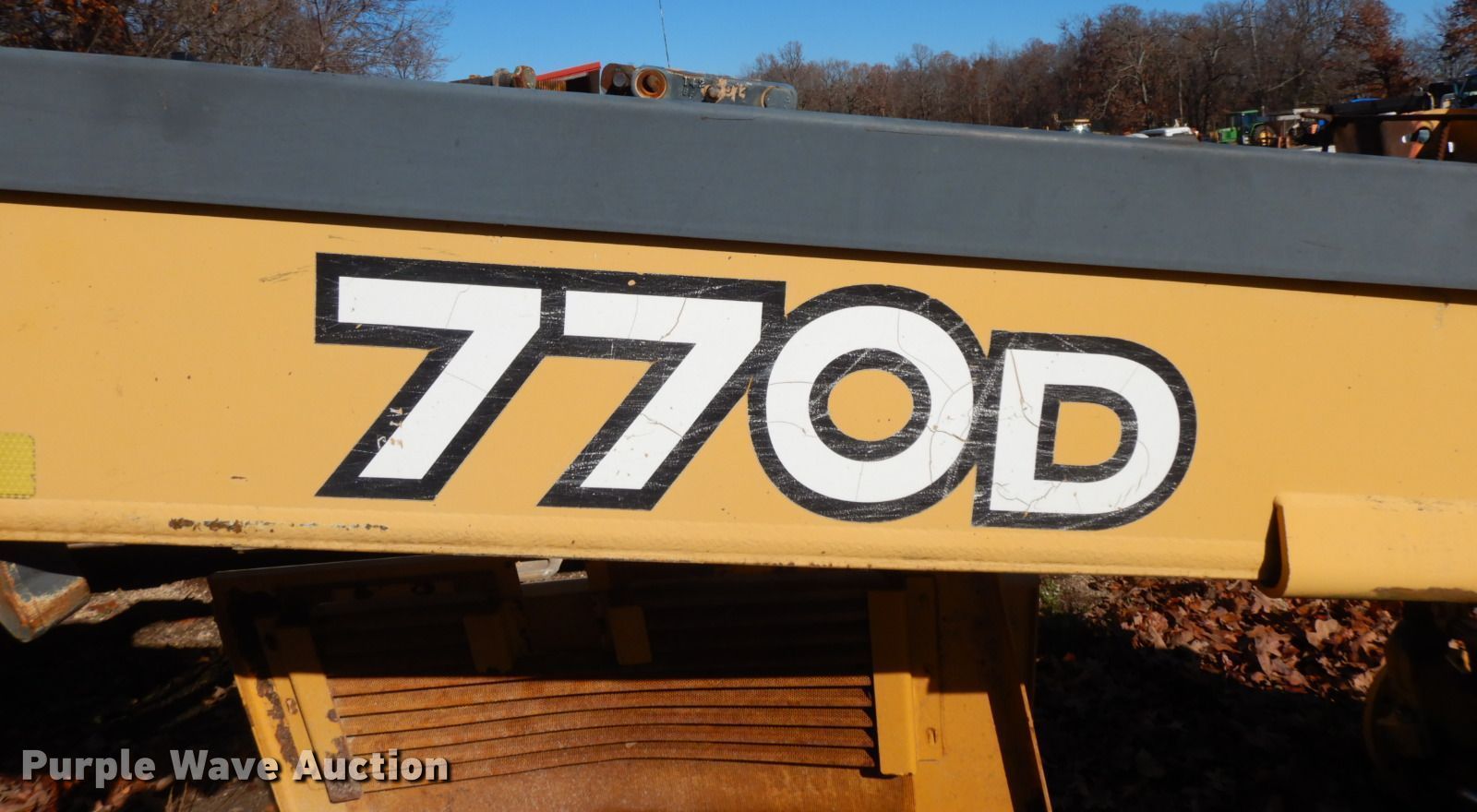 Purple Wave is selling a used Motor Grader in Oklahoma. This item is a 2005 John Deere 770D motor grader with the following: Hours: Unknown, Serial: DW770DX597332