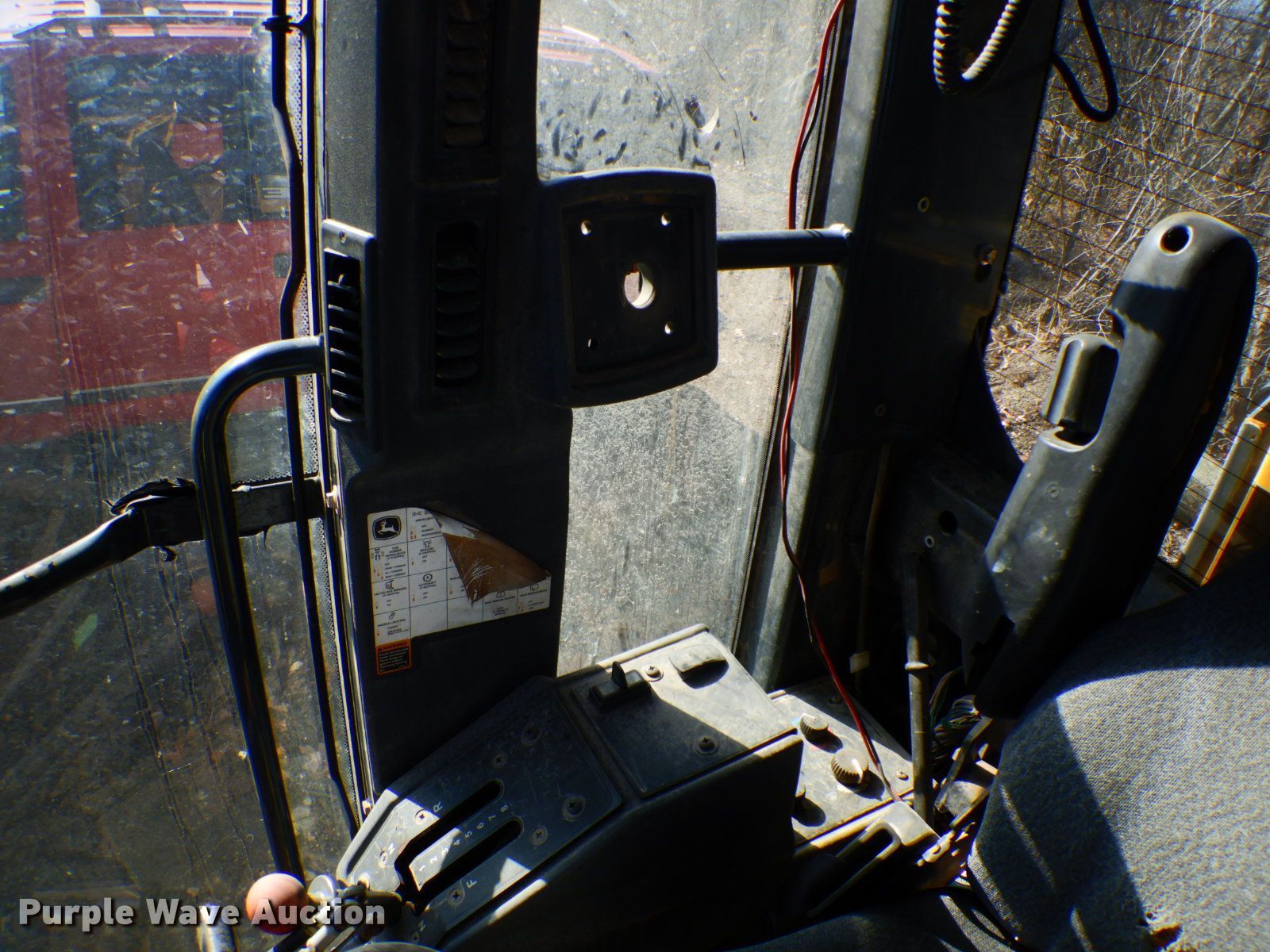2005 John Deere 770D motor grader. Hours: Unknown, Serial: DW770DX597332. Engine Cylinders: 6, Fuel type: Diesel. Transmission Powershift, 8F - 8R. Operators station Enclosed cab, Hydraulic control valves: 9. Tires Rear: 14.00R24. Notes Moldboard missing, Parts missing, Non-operational unit. Delaware County Dist. #3. 13112 East 530 Road. Kansas, OK 74347