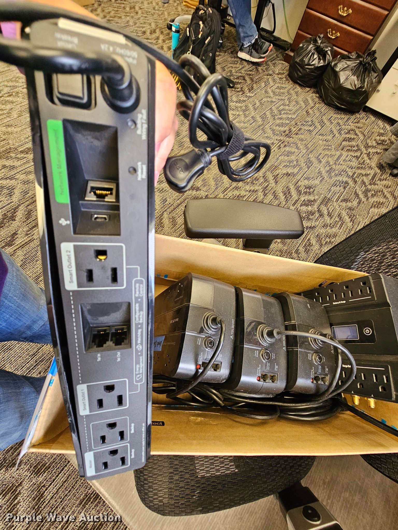 Purple Wave is selling a used Electronics in Kansas. This item is a (5) UPS units with the following: Power cables, Batteries need replaced, Unknown operating condition