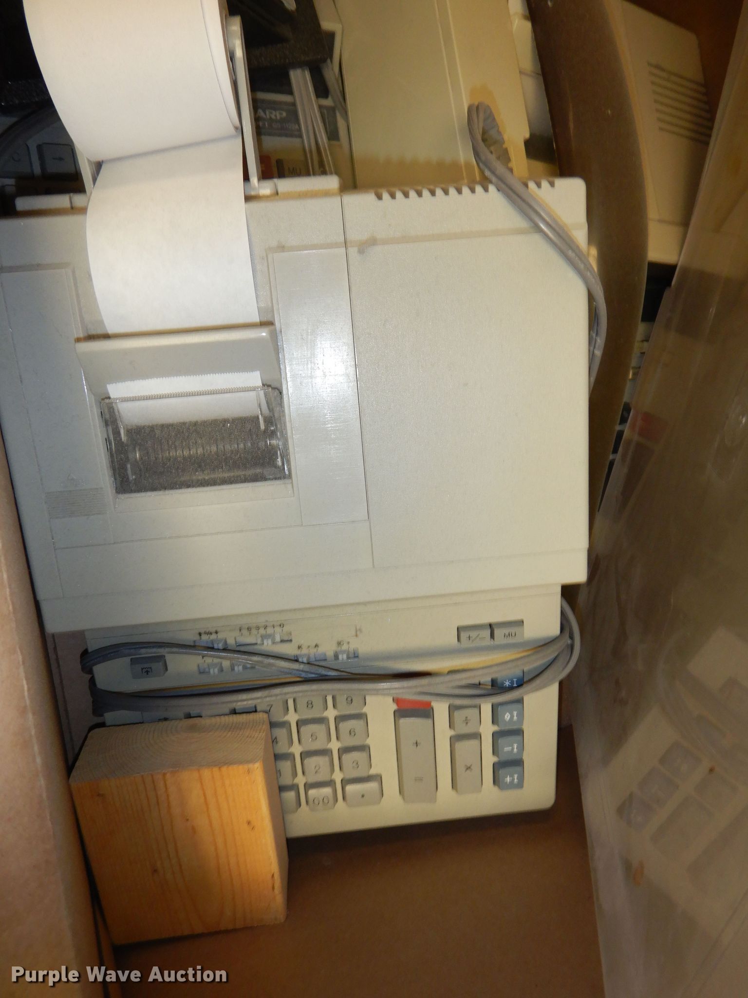 Purple Wave is selling a used Office Supplies and Equip. in Kansas. This item is a Office supplies and equipment with the following: (2) typewriters, Winix air purifier, Calculators, Monitor stands, Desks and more