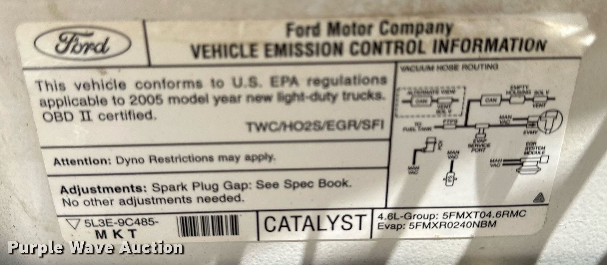 2005 Ford F150 pickup truck. Miles: 201,566 on odometer, VIN: 1FTRF12WX5NA17590. Engine Displacement: 4.6L V8 SOHC, Cylinders: 8, Fuel type: Gas. Transmission Automatic. Interior AC, Heat. Tires Size: 245/70R17. Kansas title. Title distribution may be delayed up to 14 days from verification of funds. Saline County. 3424 Airport Rd. Salina, KS 67401