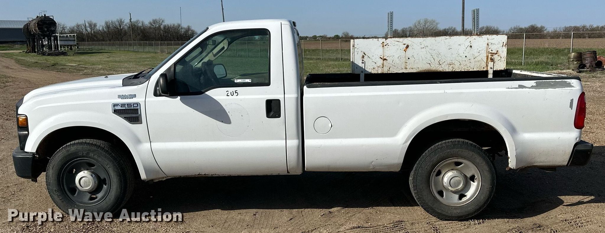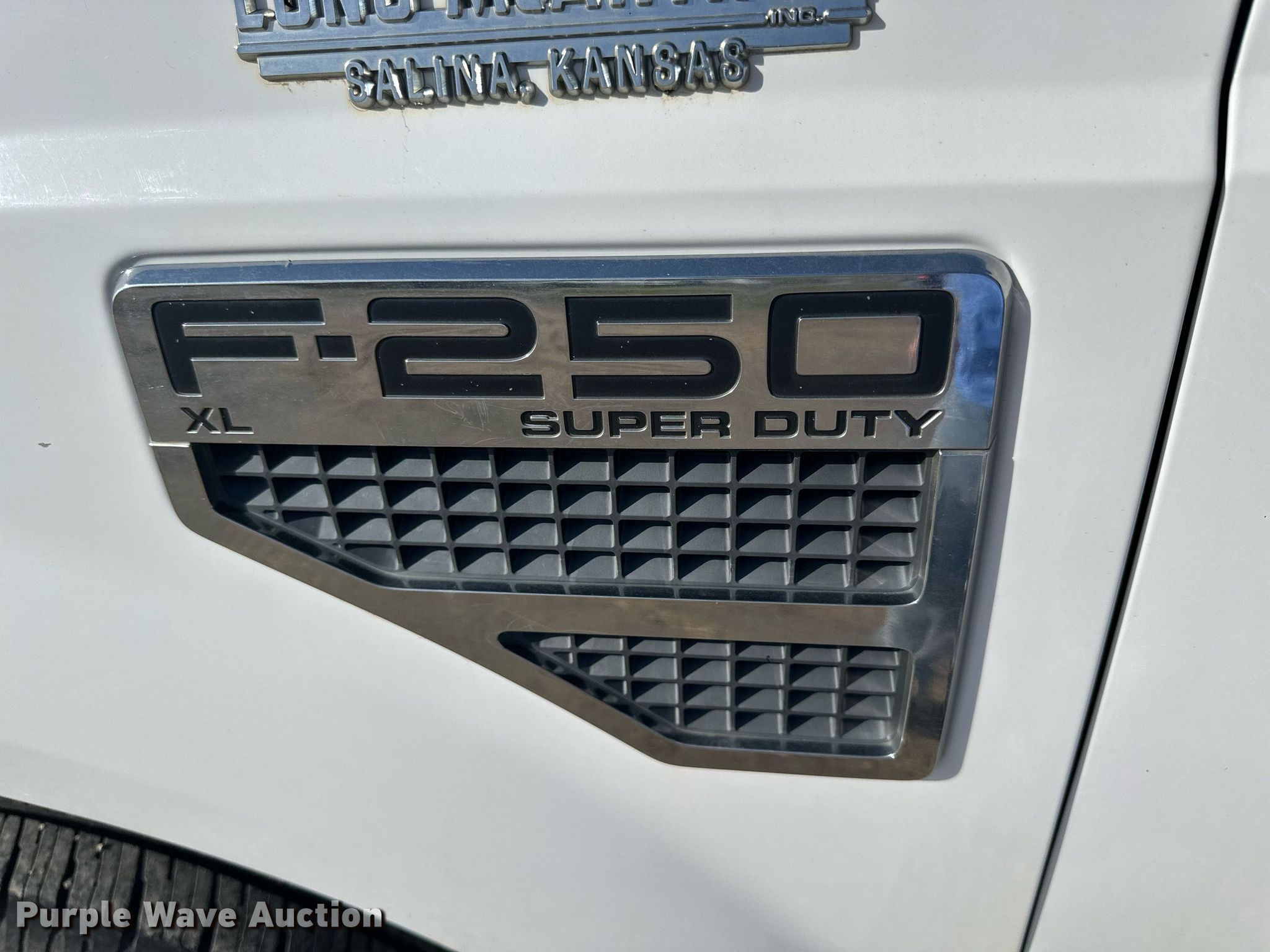 2008 Ford F250 Super Duty pickup truck. Miles: 101,160 on odometer, VIN: 1FTNF20518EC75189. Engine Displacement: 5.4L V8 SOHC, Cylinders: 8, Fuel type: Gas. Transmission Automatic. Interior AC, Heat. Tires Size: 245/75R17. Notes Dash warning indicator: TPMS, Windshield chipped or cracked. Kansas title. Title distribution may be delayed up to 14 days from verification of funds. Saline County. 3424 Airport Rd. Salina, KS 67401