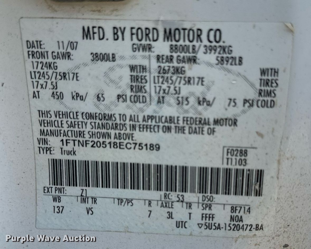 - VIN: 1FTNF20518EC75189