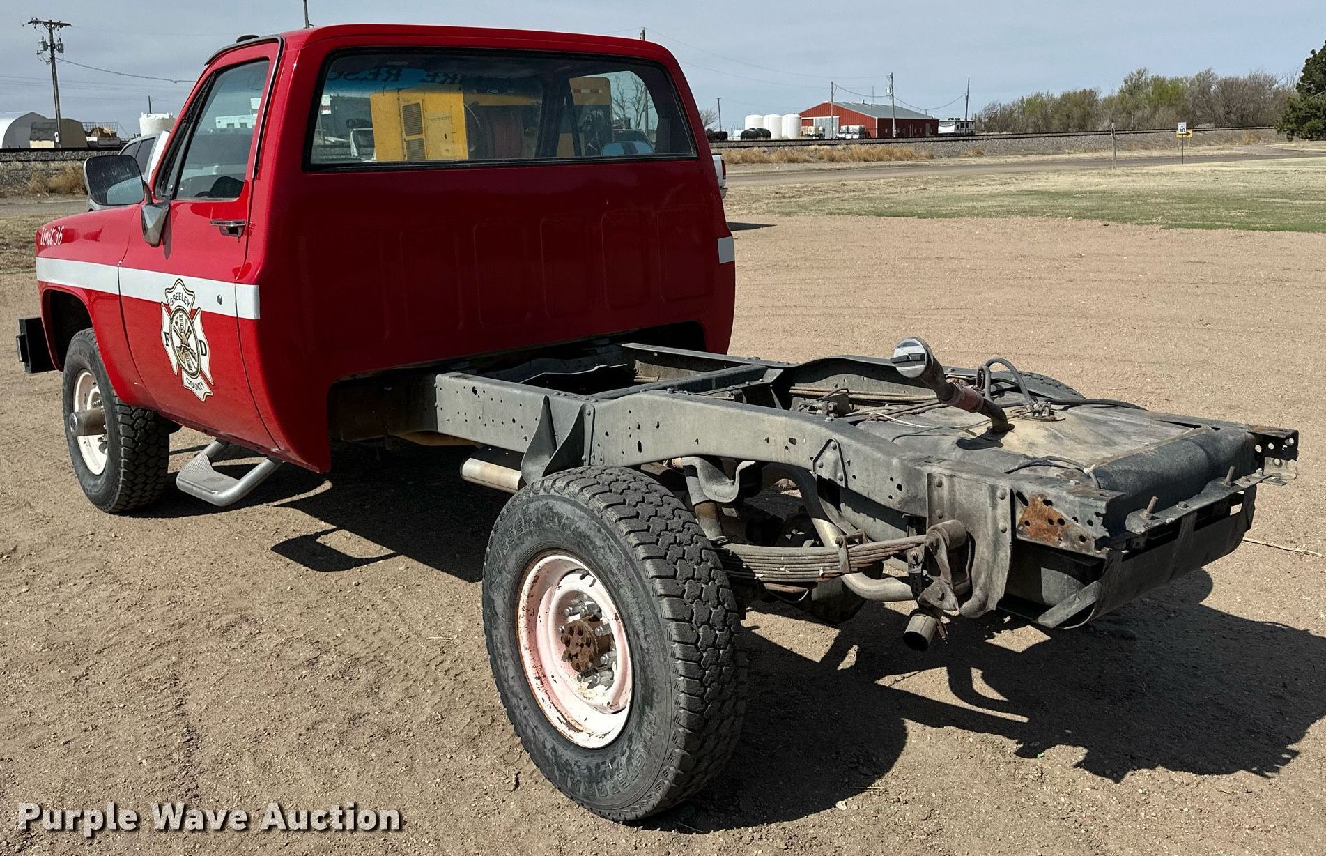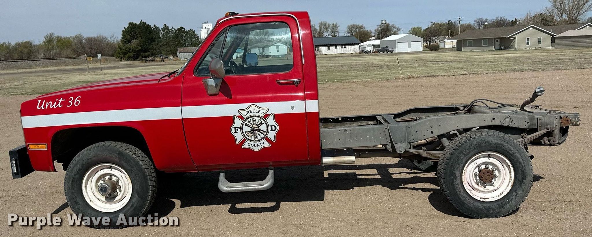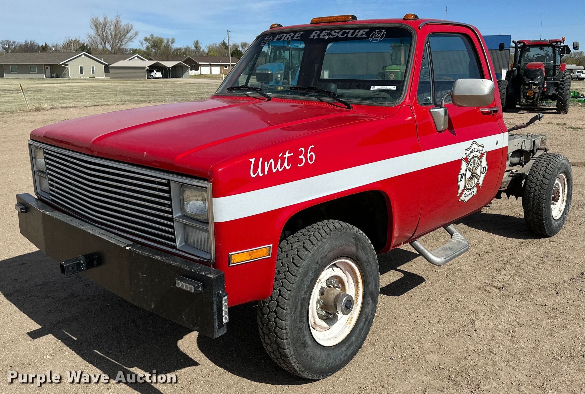 1984 Chevrolet K30 pickup truck cab and chassis. Miles: 27,550 on odometer Actual mileage unknown, VIN: 1GCHK34W0EJ147384. Engine Displacement: 454 C.I.D., Cylinders: 8, Fuel type: Gas. Transmission Automatic, Four wheel drive. Interior Heat. Tires Size: 235/85R16. Kansas title. Mileage has not been verified. Exempt will be written in the odometer disclosure on the title. Title distribution may be delayed up to 14 days from verification of funds. Unified Greeley County Road and Bridge. Tribune, KS 67879