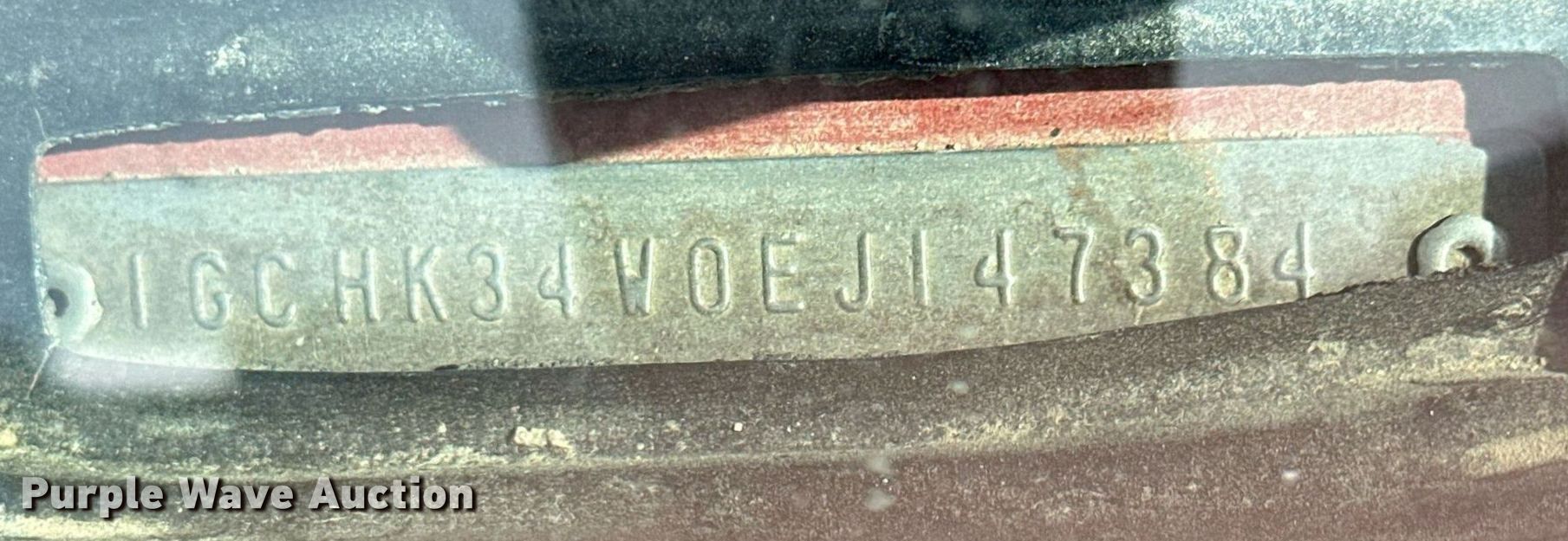 Purple Wave is selling a used 3/4 or 1 Ton Pickup or Van in Kansas. This item is a 1984 Chevrolet K30 pickup truck cab and chassis with the following: Miles: 27,550 on odometer, Actual mileage unknown, VIN: 1GCHK34W0EJ147384