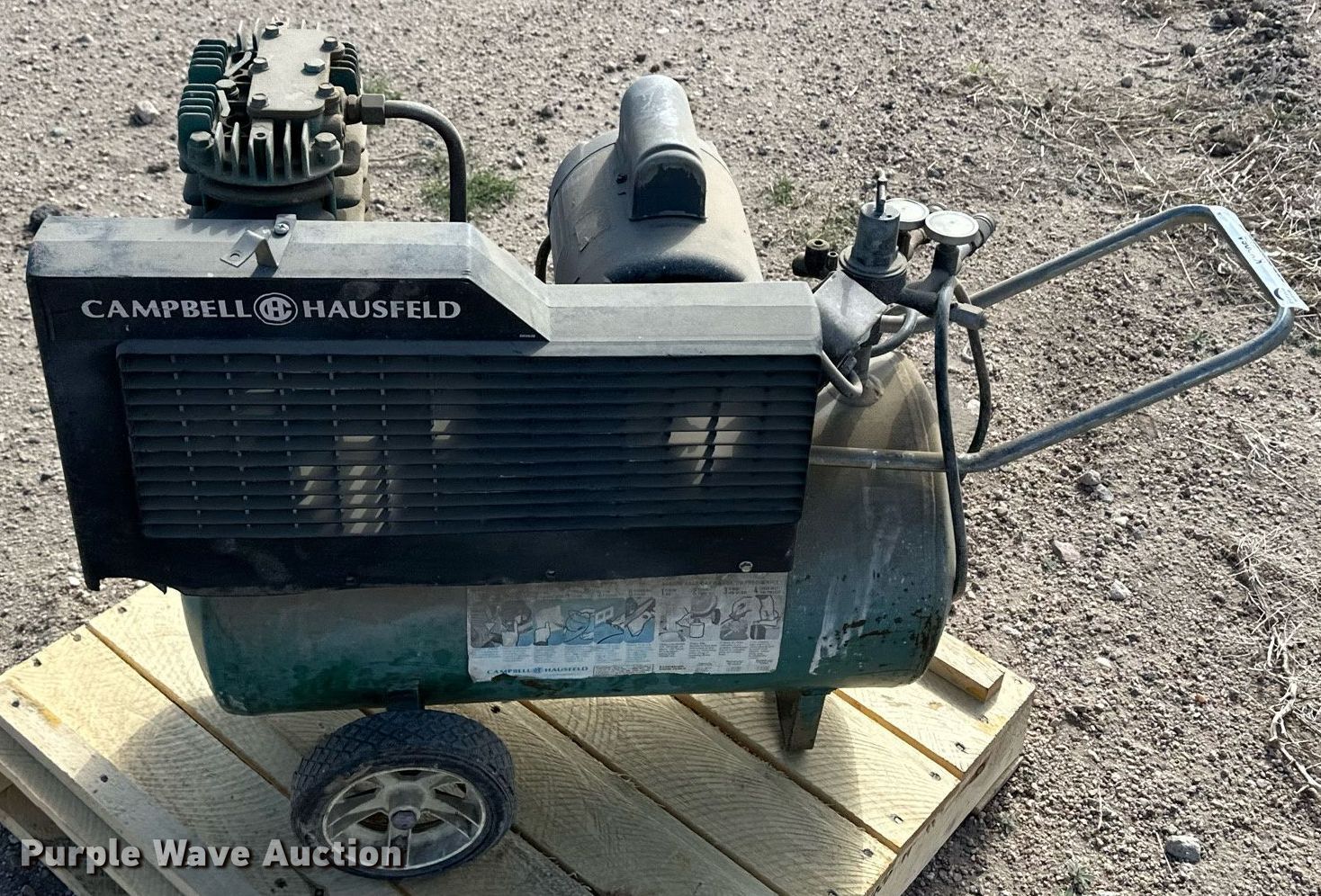 Purple Wave is selling a used Tools in Kansas. This item is a Campbell Hausfeld FL9504 air compressor with the following: Serial: 06282H-931934