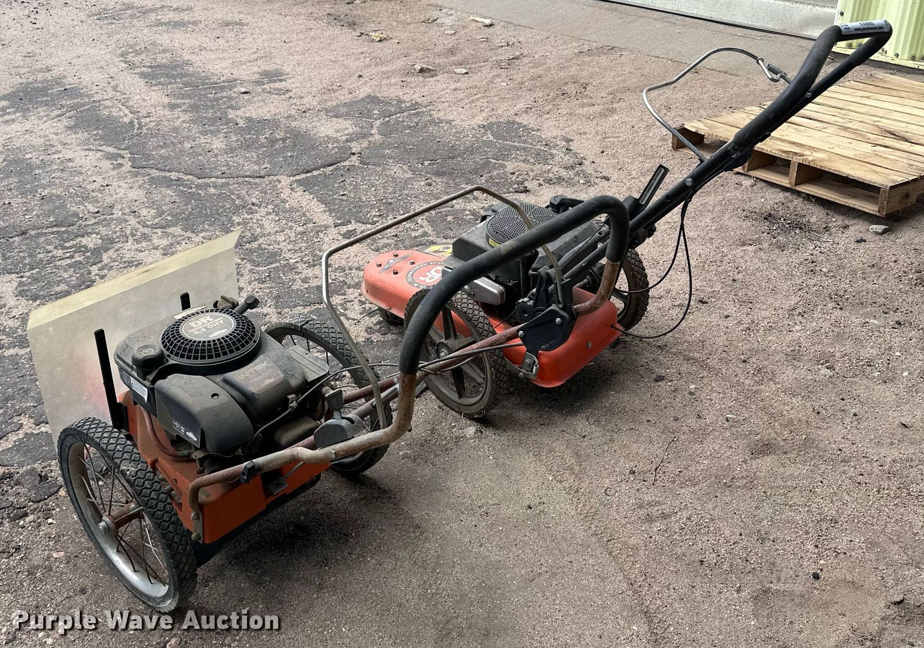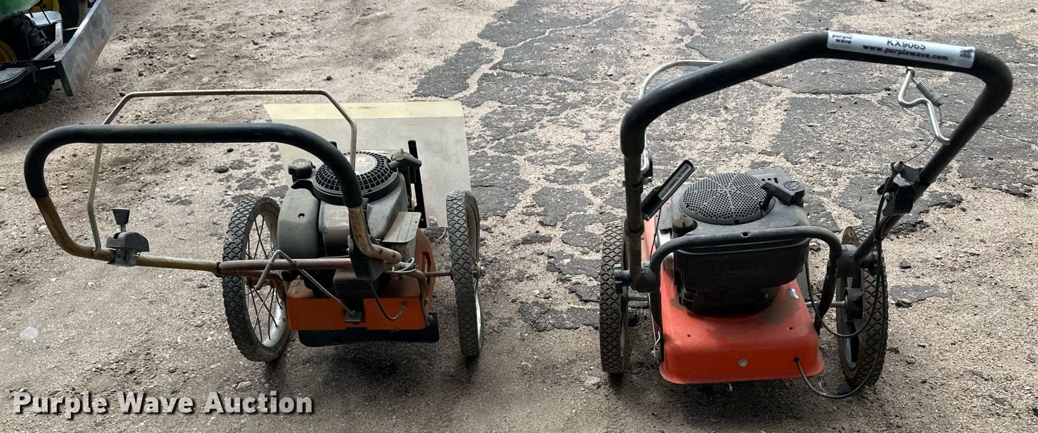 Purple Wave is selling a used Lawn and Garden in Kansas. This item is a (2) string trimmers with the following: Briggs & Stratton, Cylinders: 1, Fuel: Gas, Unknown operating condition
