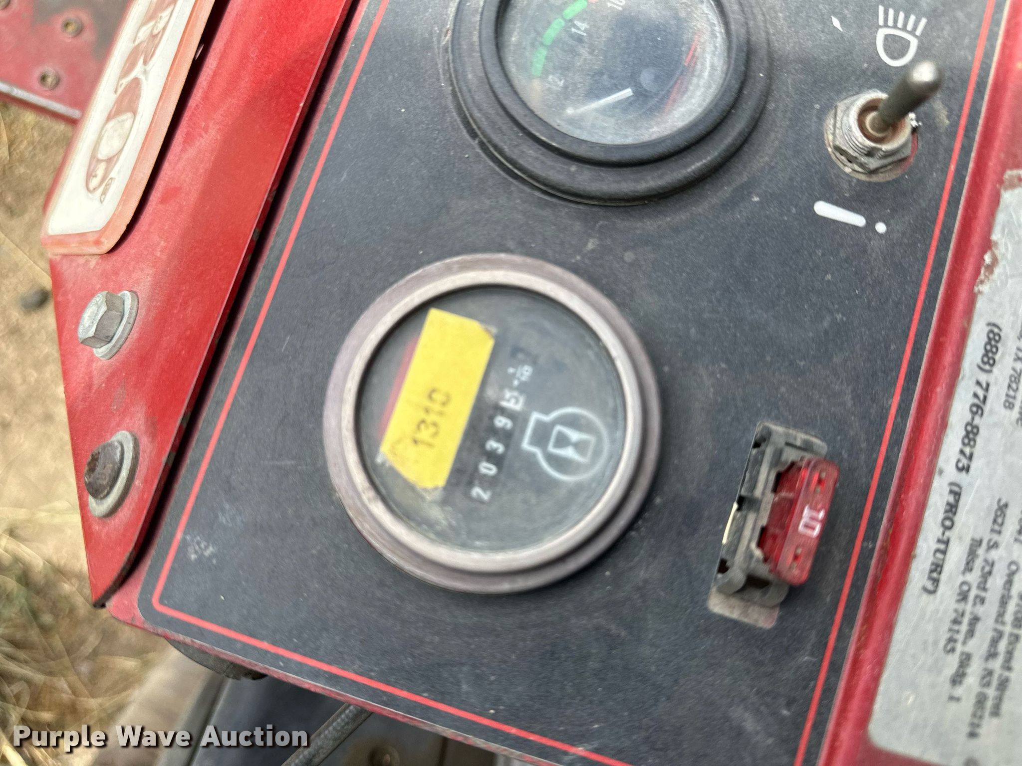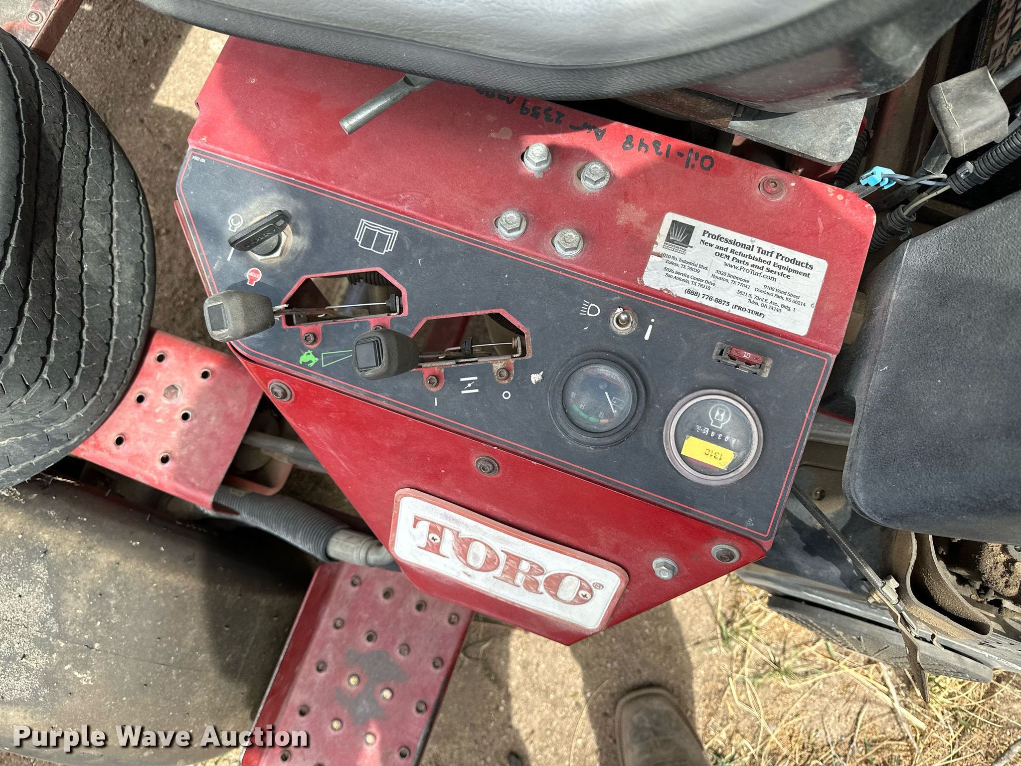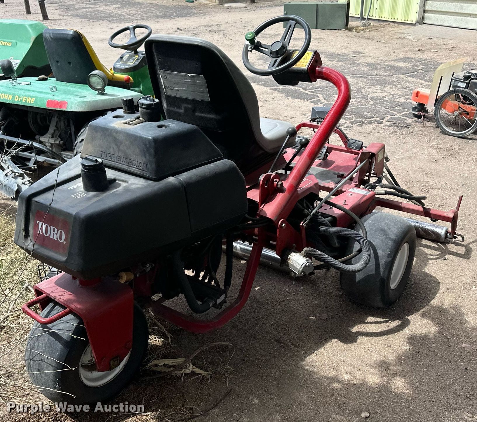 Toro greens mower. Hours: 2,040 on meter, Cutting width: 60". Engine Cylinders: 2, Fuel type: Gas. Transmission Hydrostatic. Tires Front: 18x9.50-8. Notes Front left tire will be replaced prior to auction, Unknown operating condition. Scott City Golf Course. Scott City, KS 67871