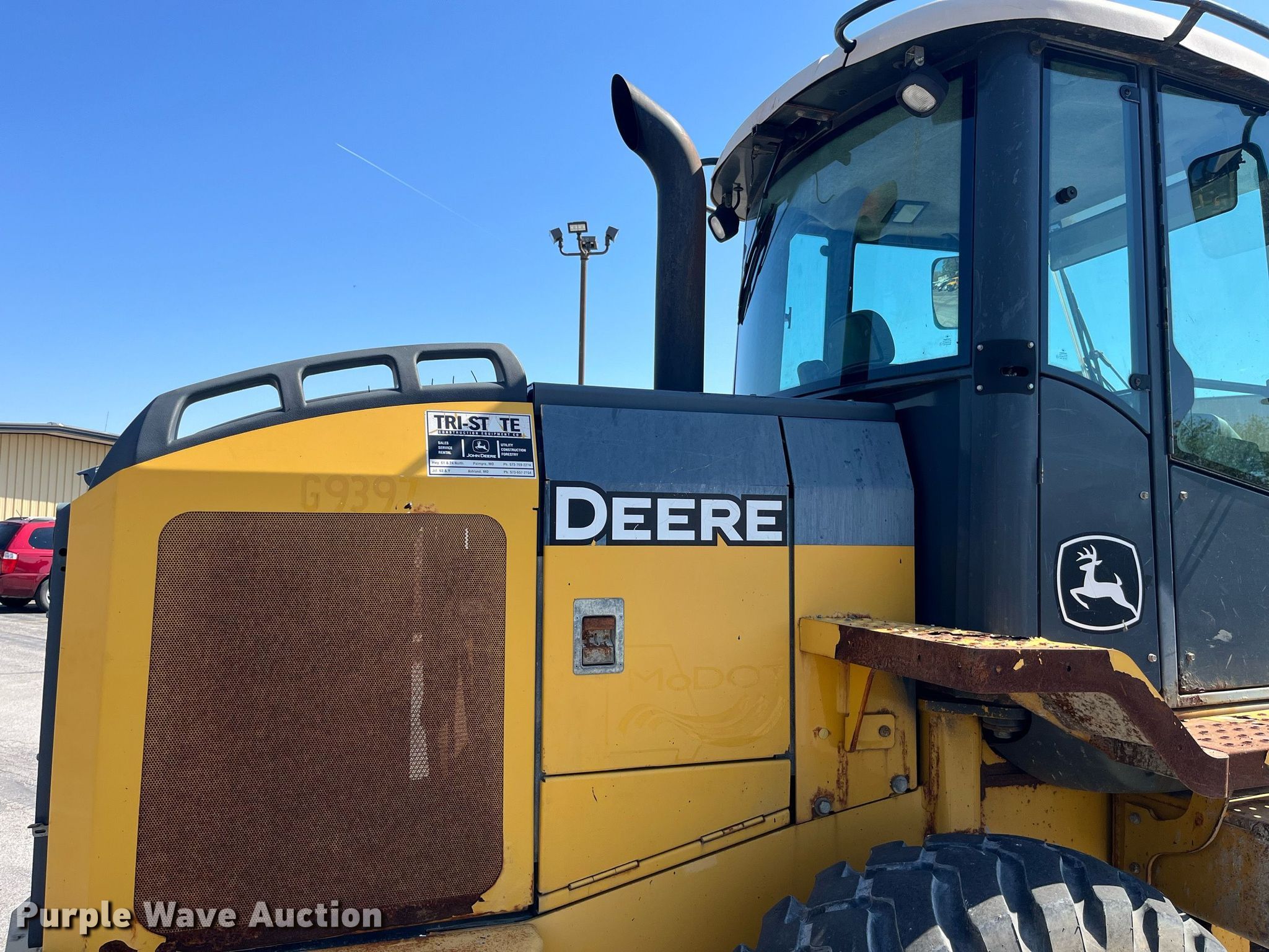 2008 John Deere 444J wheel loader. Hours: 5,037 on meter, Serial: DQ444JH618005, Unit #: G9397. Engine John Deere, Serial: PE4045L030433, Cylinders: 4, Fuel type: Diesel. Transmission Powershift, 4F - 4R. Chassis Differential lock. Operators station EROPS, Heat, Bucket controls: Joystick, Ride control. Features Quick coupler: Hydraulic, Bucket John Deere AT301998-444J, Width: 100", Self- leveling bucket, Cutting edge: Bolt-on. Tires Size: 17.5-25. Notes Additional tire included. Missouri Department of Transportation (MODOT). 1711 S US-61. Hannibal, MO 63401
