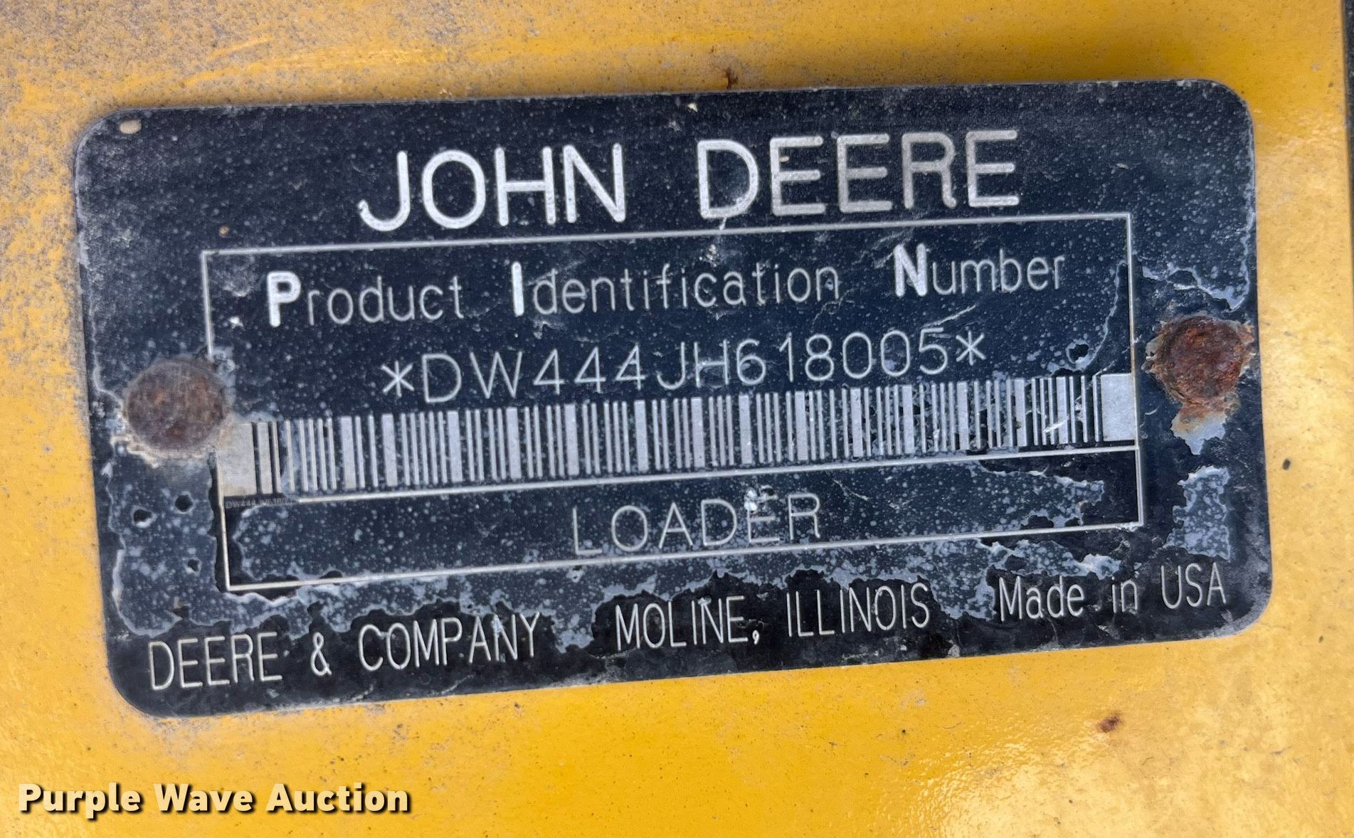 Purple Wave is selling a used Wheel Loader in Missouri. This item is a 2008 John Deere 444J wheel loader with the following: Hours: 5,037 on meter, Serial: DQ444JH618005, Unit #: G9397