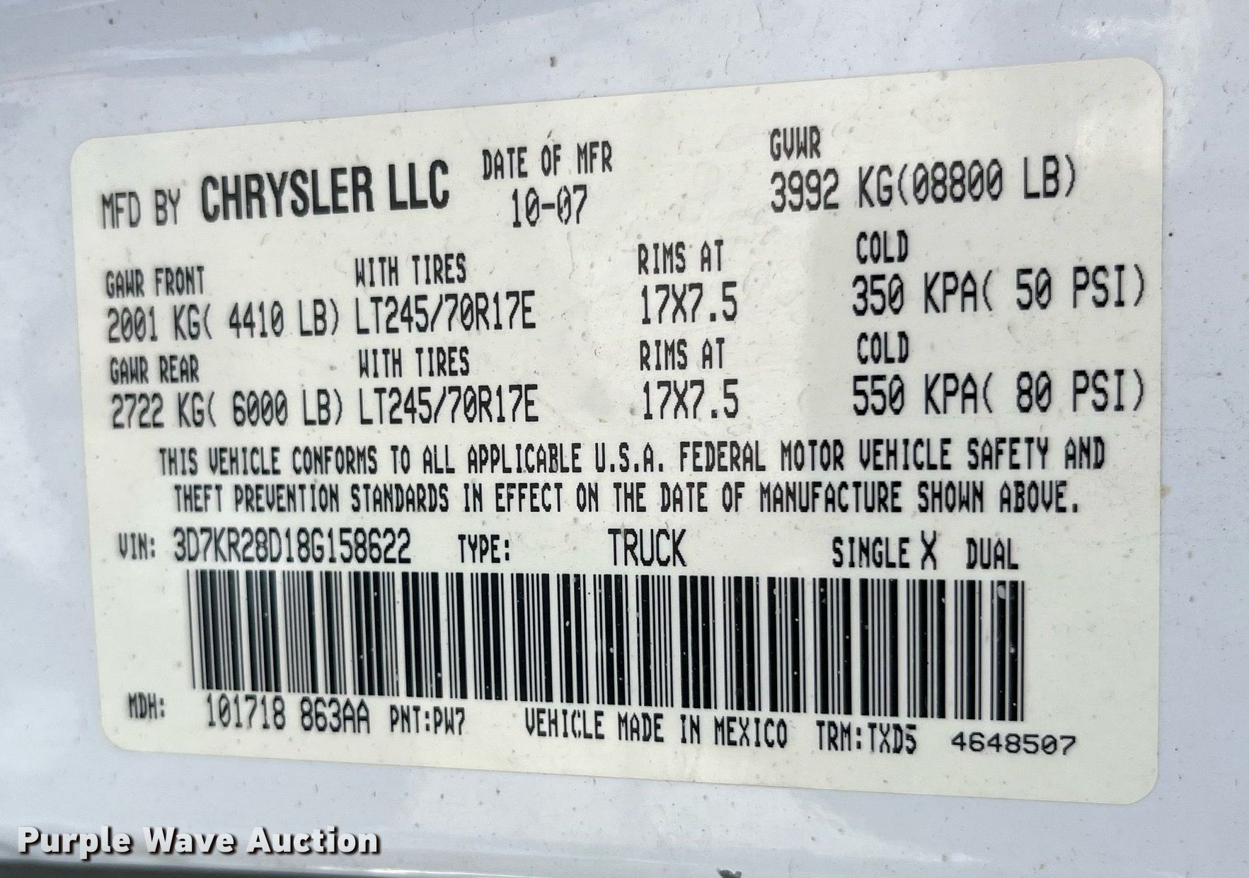 - VIN: 3D7KR28D18G158622