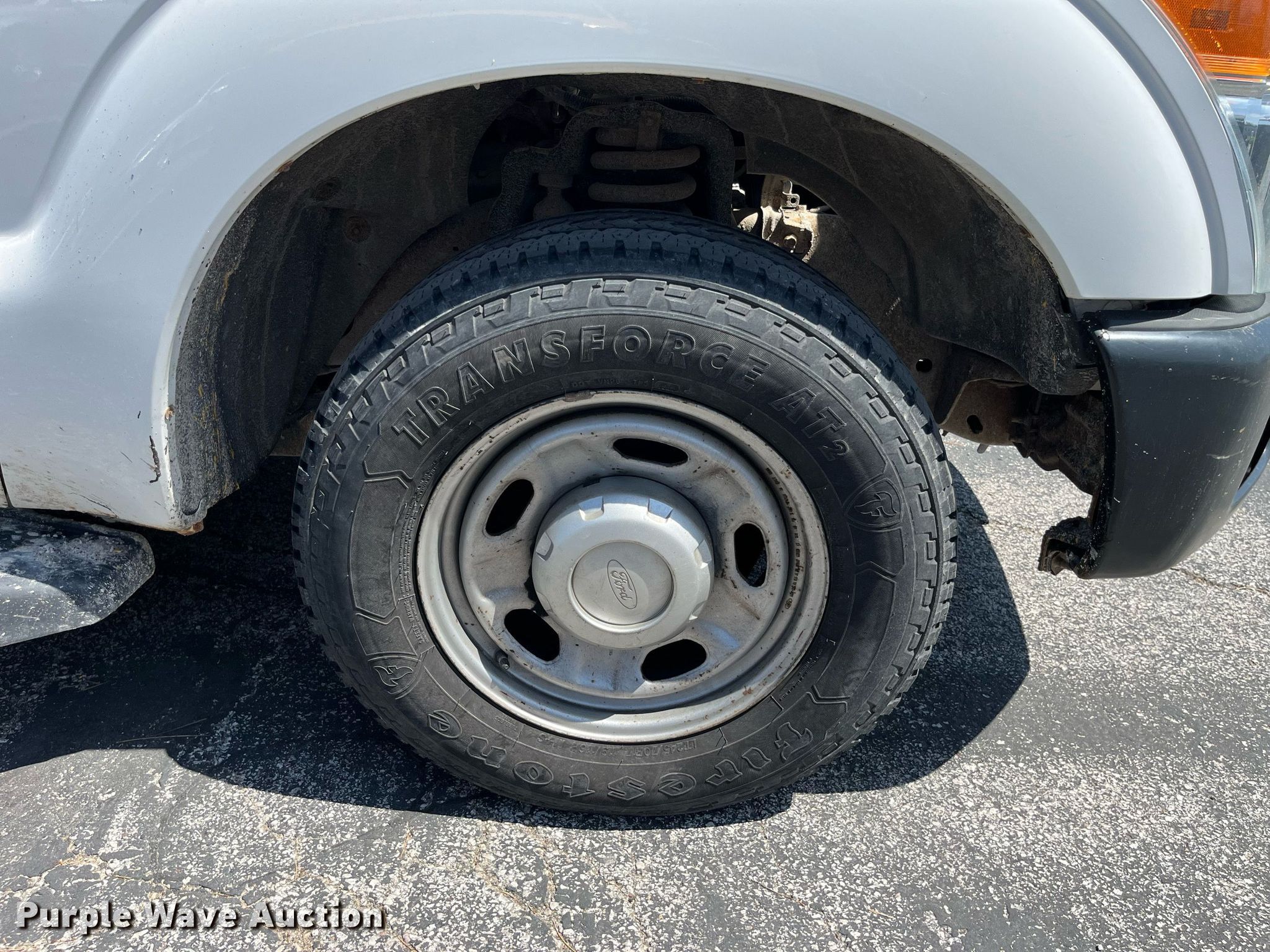 2011 Ford F250 Super Duty Crew Cab flatbed pickup truck. Miles: 263,888 on odometer, VIN: 1FD7W2A66BEC12236, Unit #: 8627. Engine Displacement: 6.2L V8 OHV, Cylinders: 8, Fuel type: Gas. Transmission Automatic. Interior AC, Heat, Cruise control. Features Utility bed Knapheide , 99" L x 78" W. Tires Size: 245/70R17. Notes Dash warning indicator: TPMS, Dead battery, Non-operational AC. Missouri title. Title distribution may be delayed up to 14 days from verification of funds. Missouri Department of Transportation (MODOT). 1711 S US-61. Hannibal, MO 63401