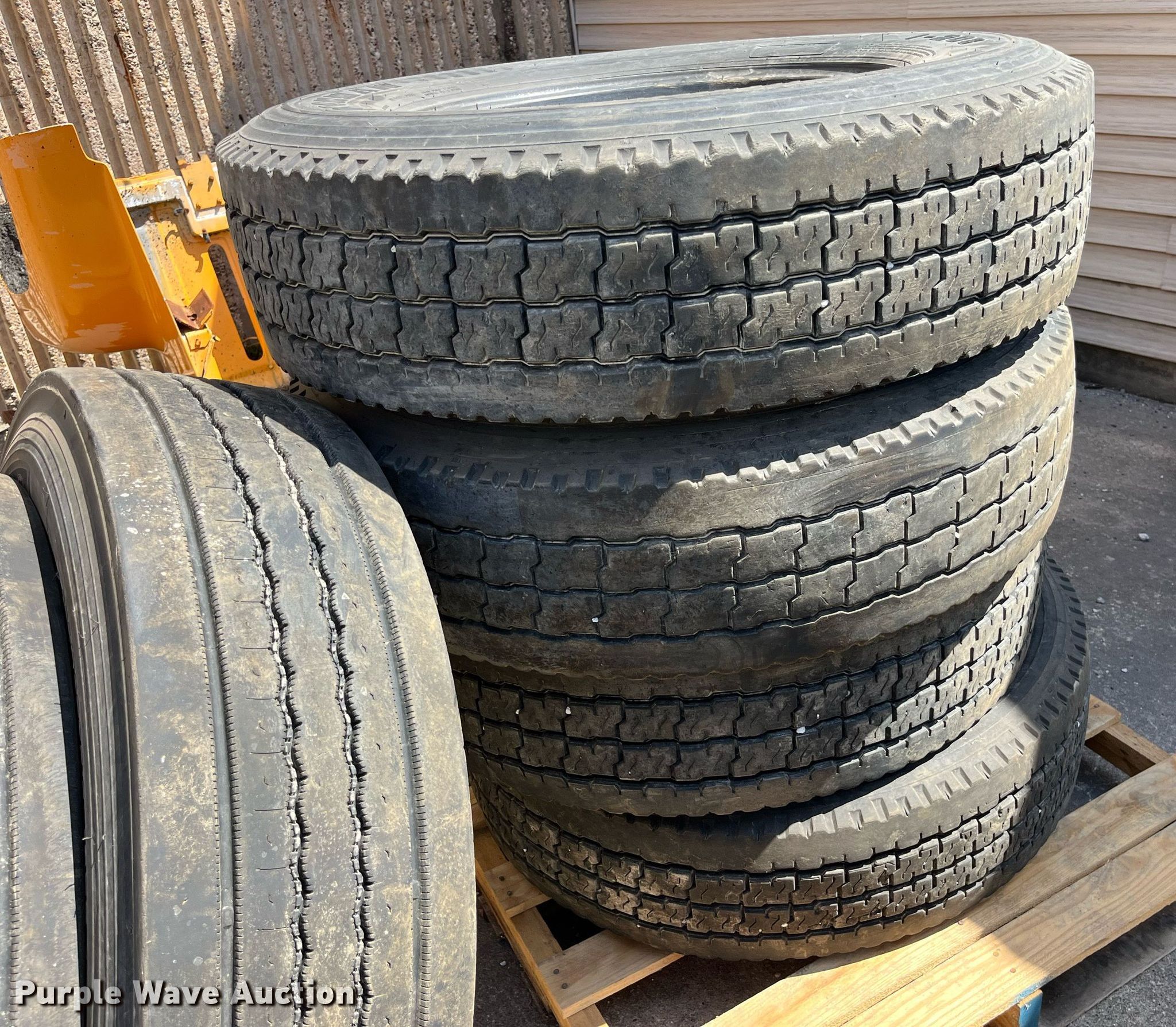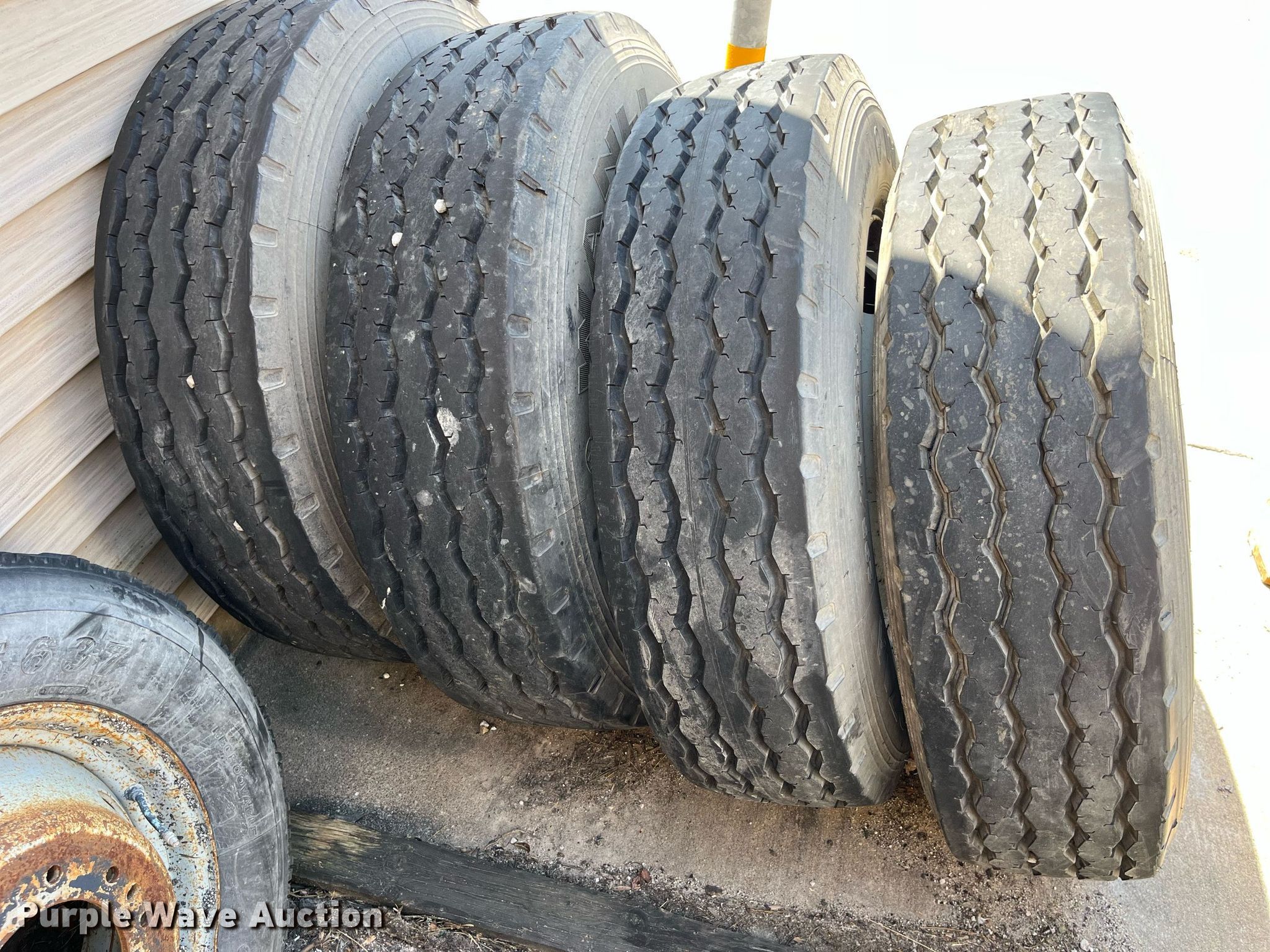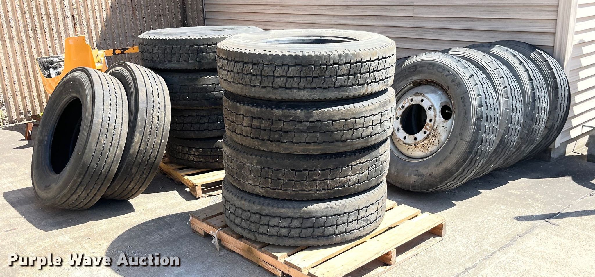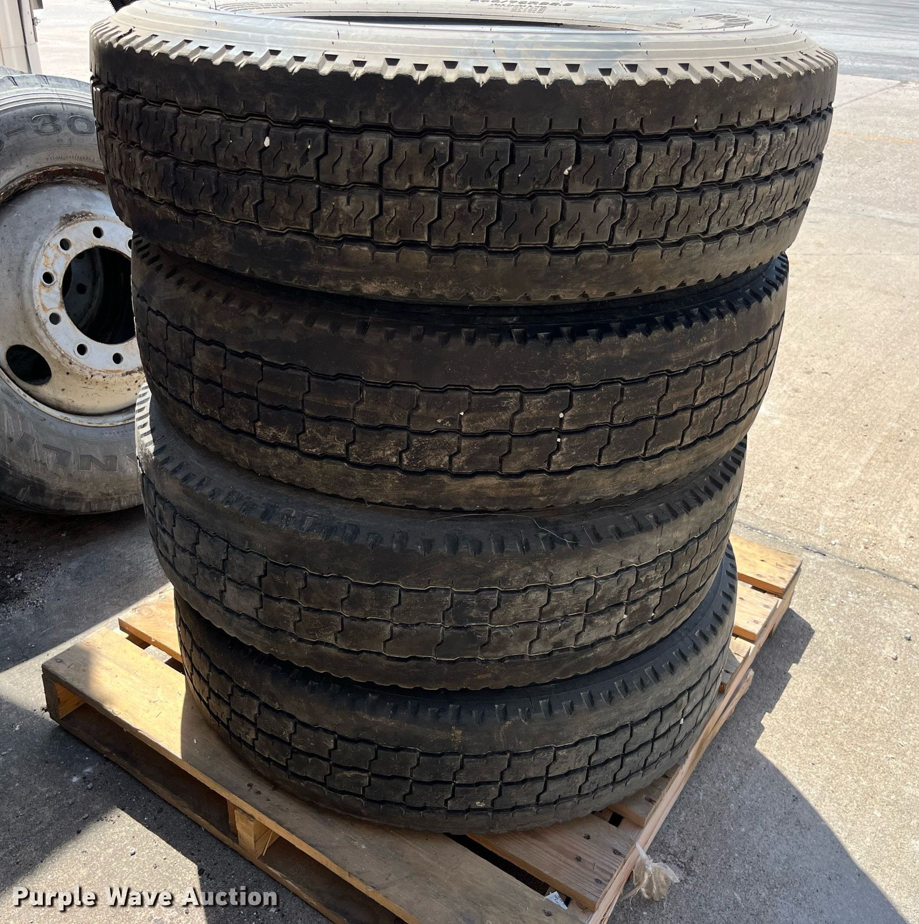 Purple Wave is selling a used Industrial Tires or Tracks in Missouri. This item is a Wheels and tires with the following: (2) Firestone FS561 295/75R22.5 tires, (8) Ironman I-208 295/75R22.5 tires, (4) Wanli S-3071A 295/75R22.5 tires, (4) wheels, Sailun S637 225/70R19.5 tire, Wheel