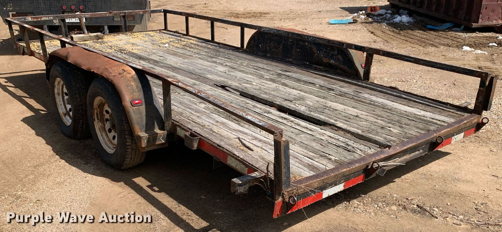 1990 Shop built utility trailer. VIN: TR194083. Dimensions Overall: 19' 7" L x 97" W, Deck: 16' 1" L x 83" W, Deck height: 1' 8". Features Deck type: Wood. Chassis Ball hitch: 2 5/16", Landing gear: Single, Suspension: Spring, Axles: Tandem. Tires Steel wheels, Size: 205/75R15. Notes Hole in deck. Texas title. Title distribution may be delayed up to 14 days from verification of funds. Delta County Precinct 1. 173 County Road 1180. Cooper, TX 75432