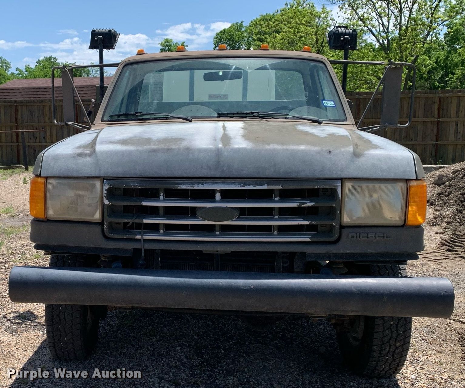 Purple Wave is selling a used 3/4 or 1 Ton Pickup or Van in Texas. This item is a 1989 Ford F350 utility bed pickup truck with the following: Miles: 30,616 on odometer, Actual miles unknown, VIN: 2FDKF38M4KCB54217