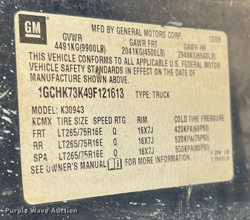 - VIN: 1GCHK73K49F121613