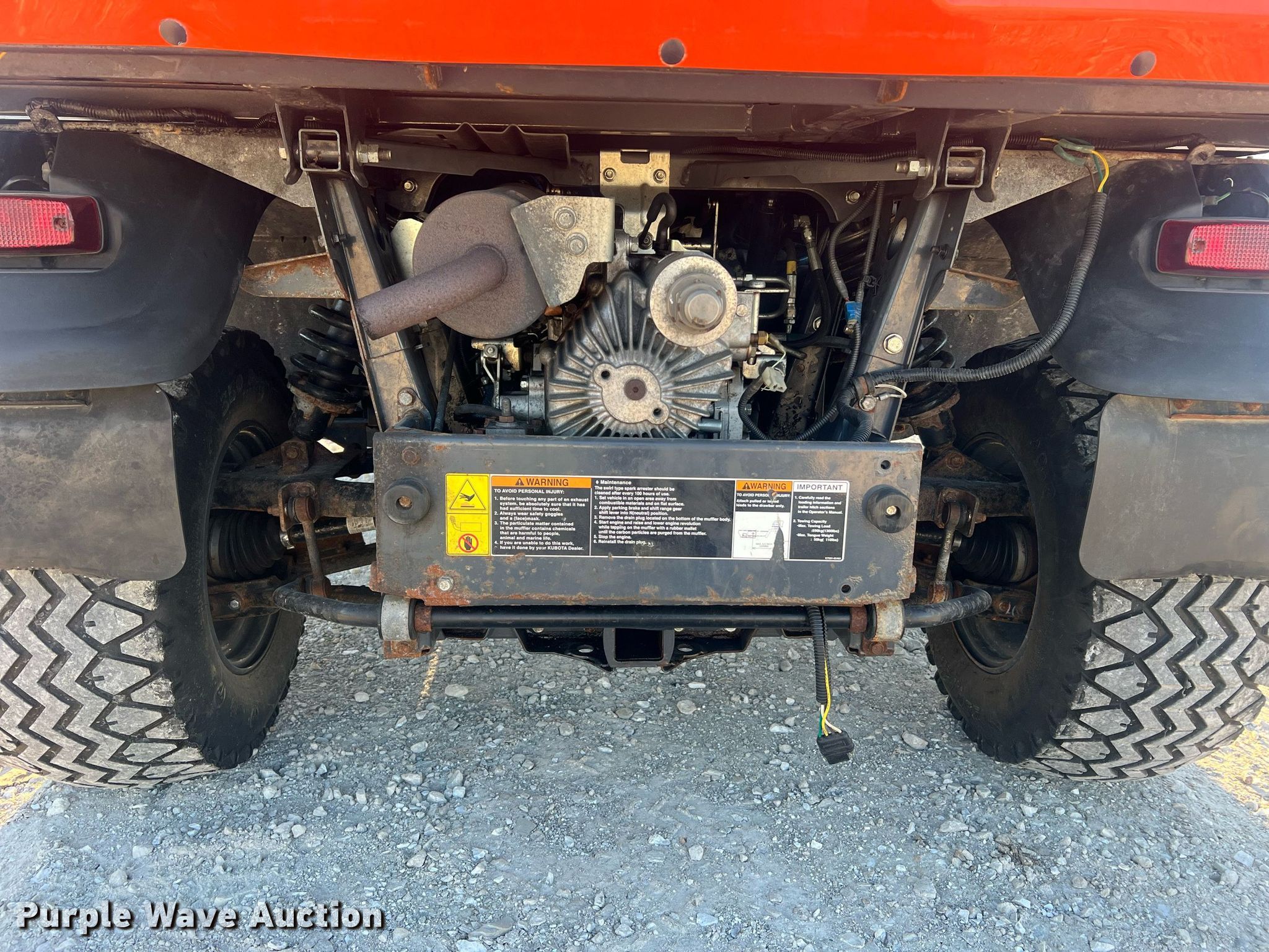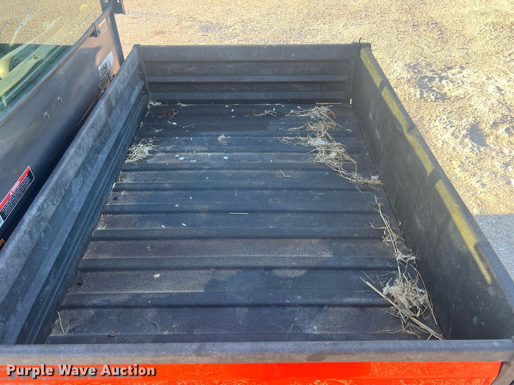 Kubota RTVX1100C utility vehicle. Miles: 3,326 on odometer, VIN: A5KC2GDBJGG032800, Serial: 32800. Engine Kubota D1105, Cylinders: 3, Fuel type: Diesel, Electric start. Transmission Hydrostatic. Chassis Four wheel drive. Operators station Enclosed cab, AC, Heat, Passengers: 2. Features Grill guard, Receiver hitch, Dump bed 41" L x 57" W, Dump bed type: Electric/ Hydraulic. Tires Size: 25X10.00-12. Transfer of ownership documentation will be a bill of sale which will be assigned and distributed by the seller. City of Moberly. 2300 North Morley Street. Moberly, MO 65270